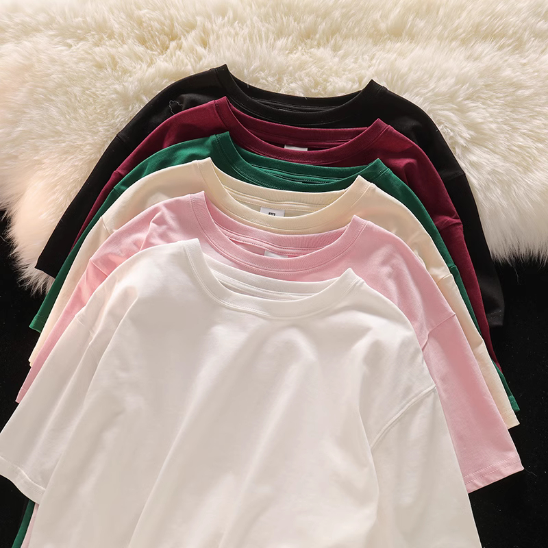 (Cotton 100%)เสื้อยืดแขนสั้น ผ้านิ่ม เด้ง ใส่สบาย สไตล์เกาหลี เนื้อผ้าพรีเมี่ยม Cotton 100 % ค1096
