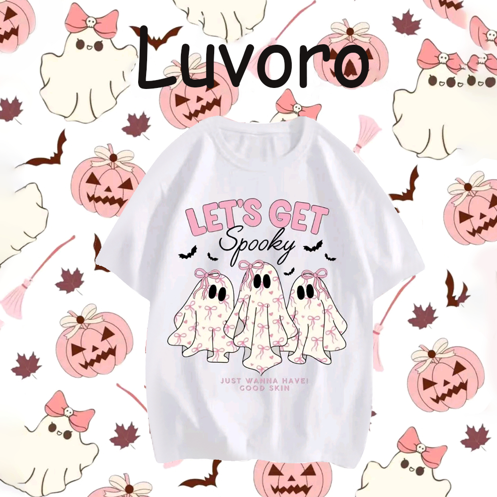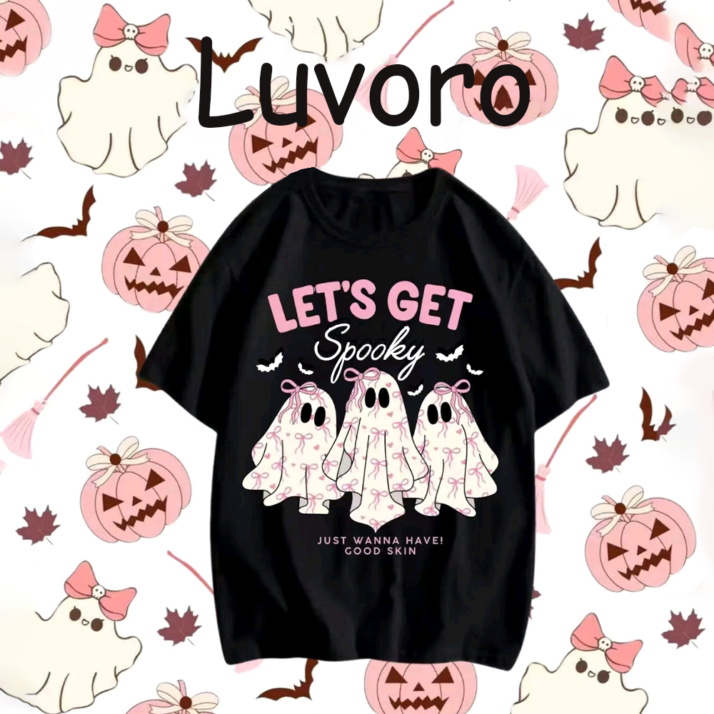 (cotton 100%) Luvoro 2025 เสื้อยืดสีดำและขาวย้อนยุค รอบคอด้านหน้า สำหรับทั้งผู้ชายและผู้หญิง ทำจากผ้าฝ้ายแท้ 100% COD ลาย เนื้อผ้านุ่มระบายอากาศดี แขนสั้น C1669