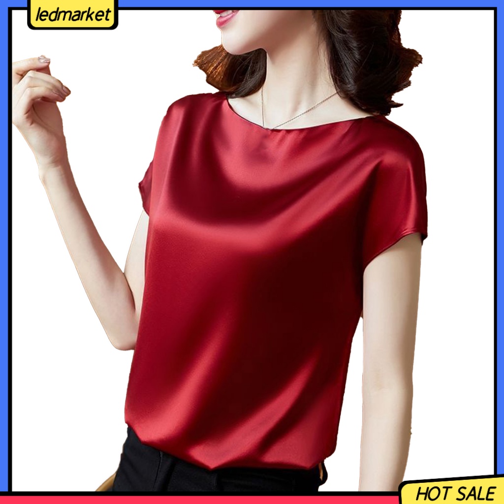 (Ledmarket) เสื้อยืดคอกลม โพลีเอสเตอร์ เรียบเนียน สําหรับผู้หญิง ใส่ไปทํางาน