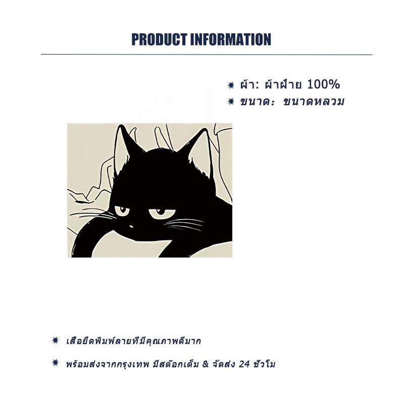 (COD/24ชั่วโมง)TIHIK เสื้อลายแมว cotton100 โอเวอร์ไซส์ เนื้อผ้านิ่มม ใส่สบาย T0791-4