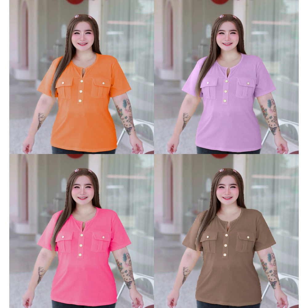 (12.12.โปรเดือน12)B1 โปร เสื้อสาวอวบ-อ้วน (เสื้อคอกลมร่องอก+กระดุม) งานสวย ตรงปก เสื้อแฟชั่น หรูๆแบบคุณหนู ผ้าร่อง CVC