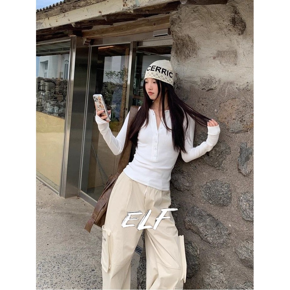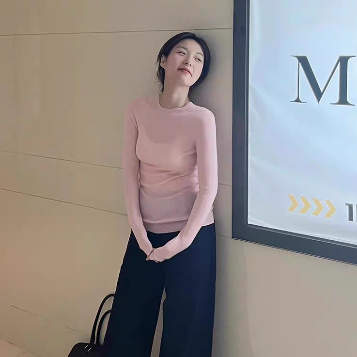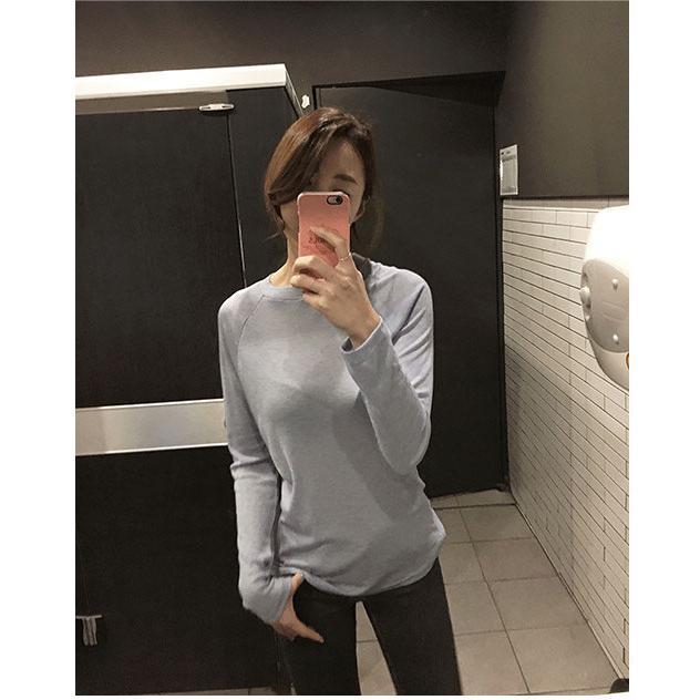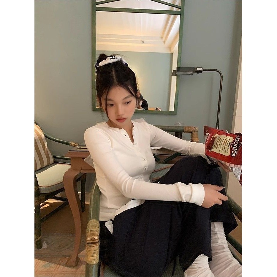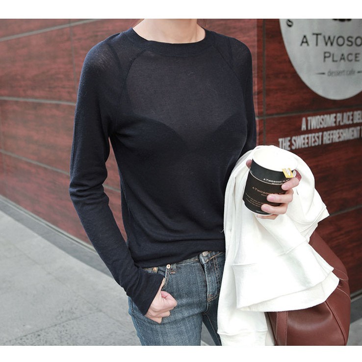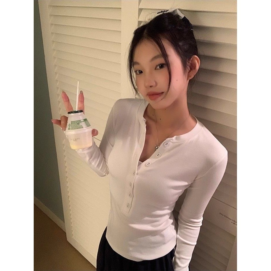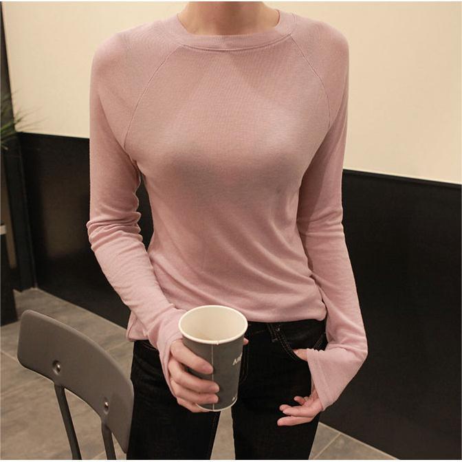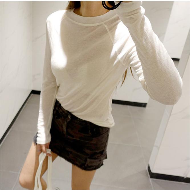 2024 แฟชั่นเกาหลีใหม่พื้นฐานแขนยาวเสื้อยืดหลวมบางเซ็กซี่ผู้หญิงสีทึบผ้าฝ้าย ที