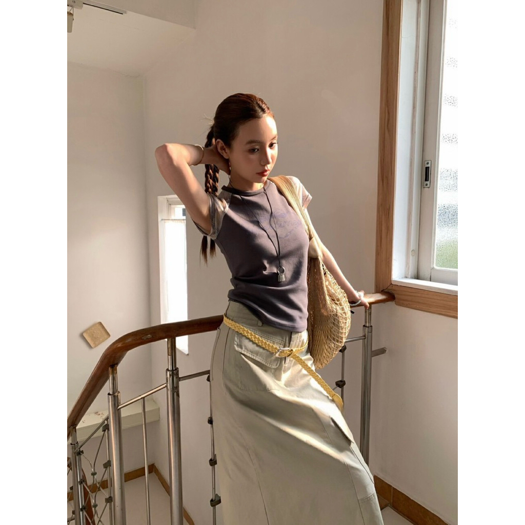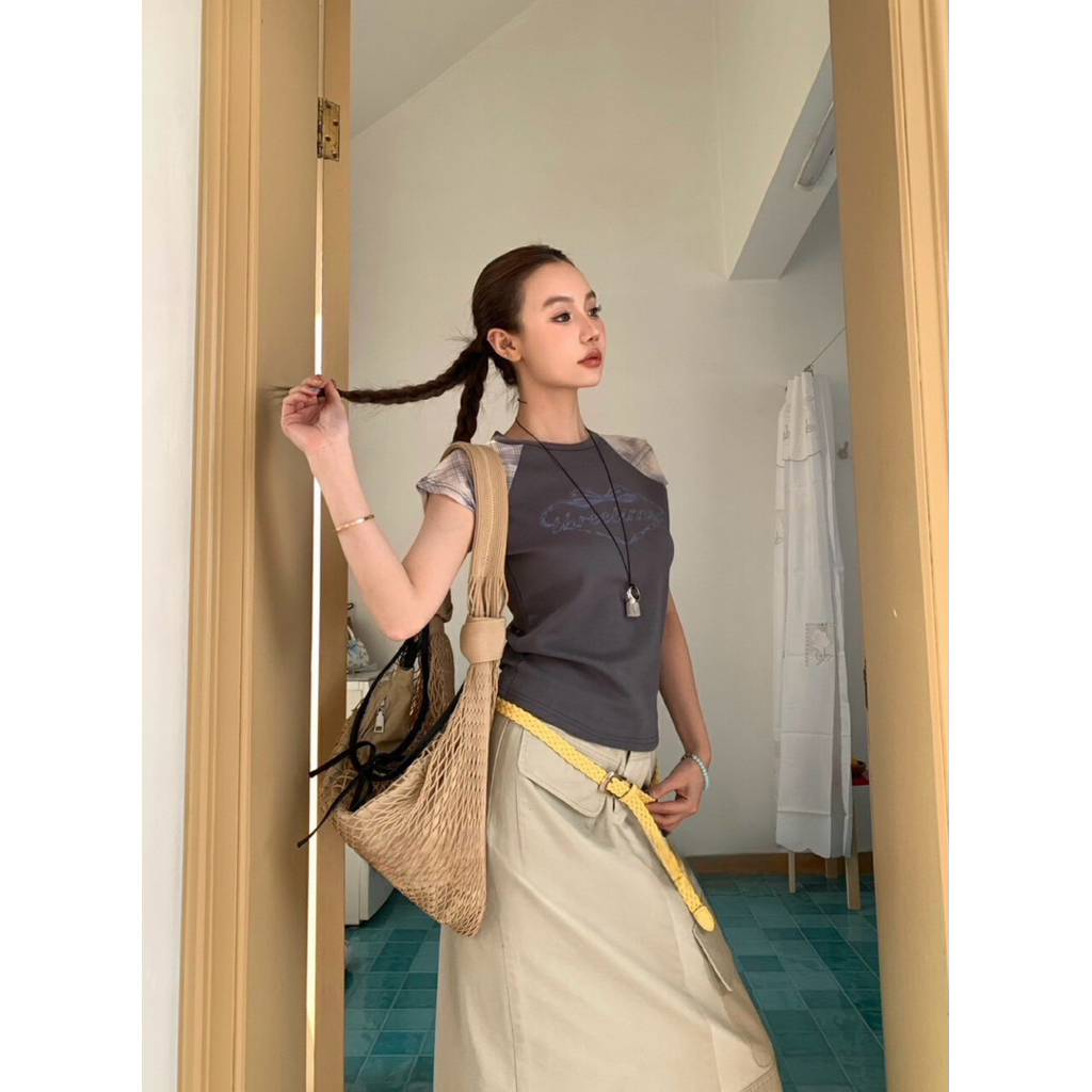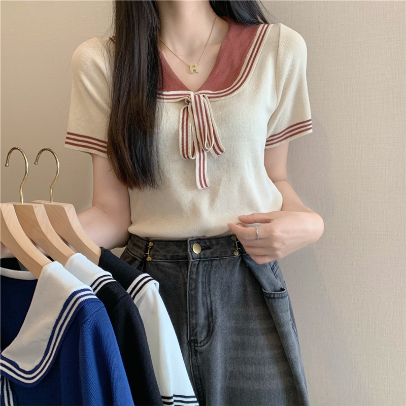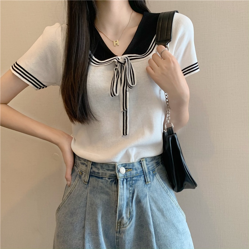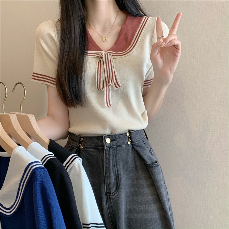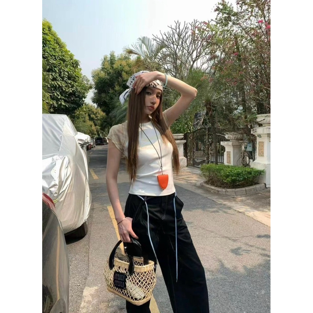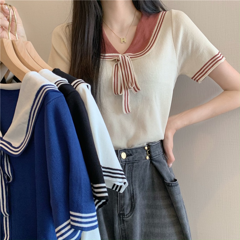 2112#เสื้อยืดแขนสั้น ผ้าถัก ทรงหลวม เข้ากับทุกการแต่งกาย แฟชั่นฤดูร้อน สําหรับผู้หญิง