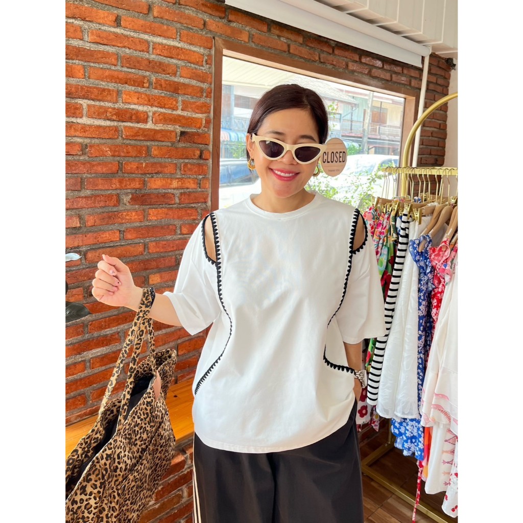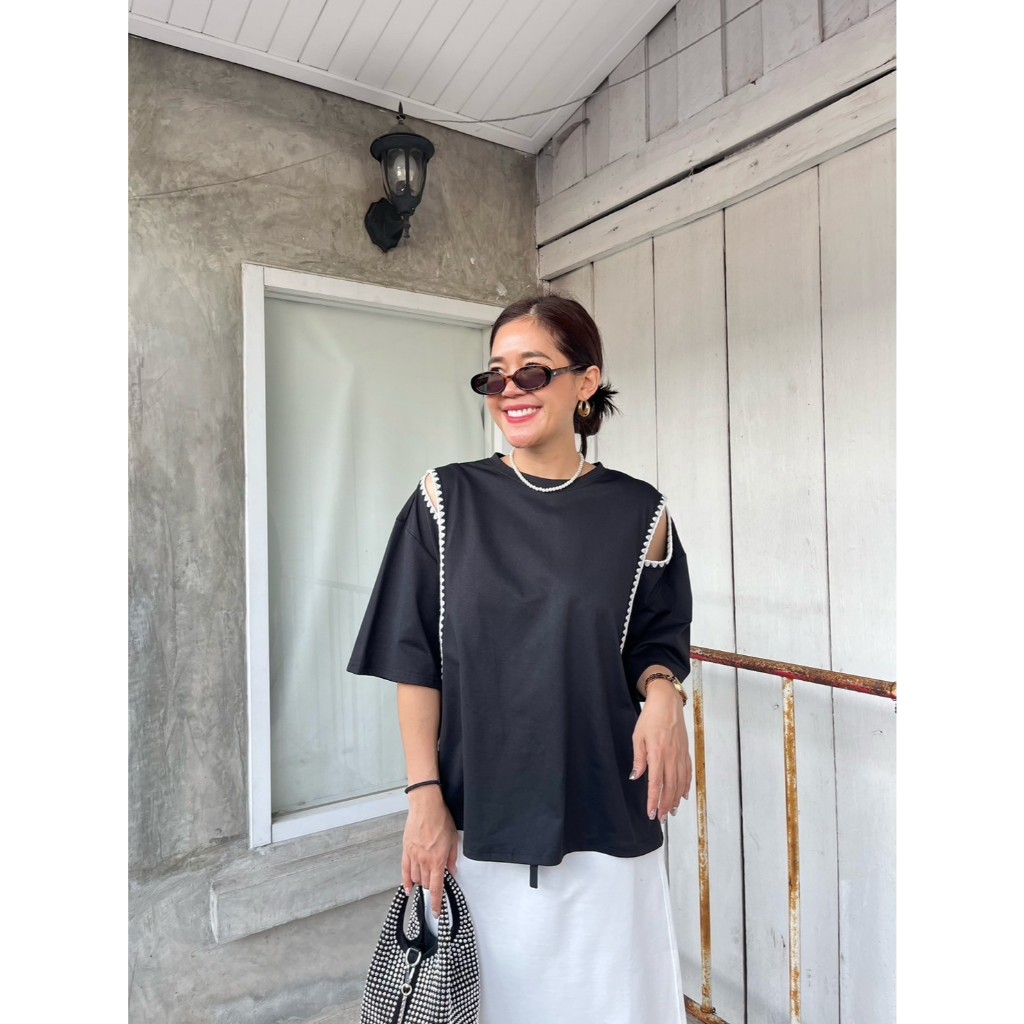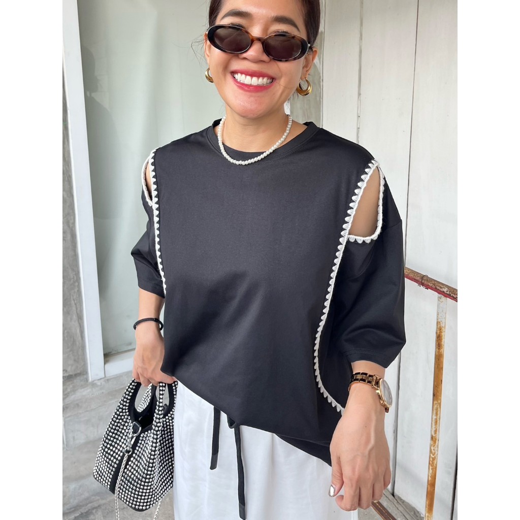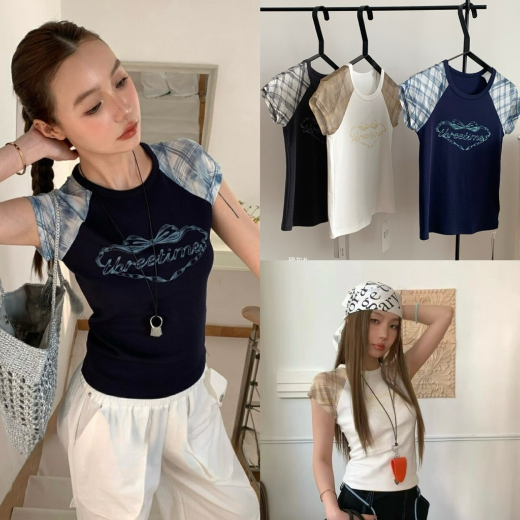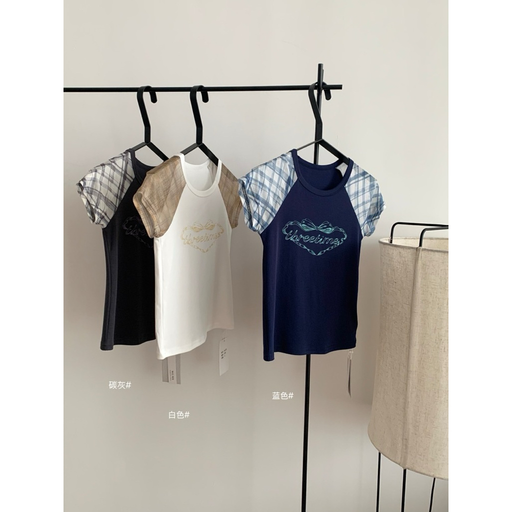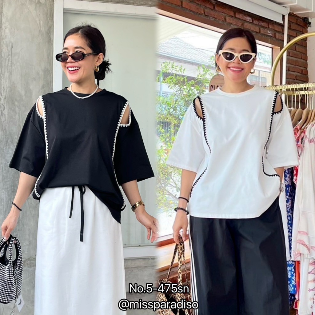 45-100kgสีตัดกัน เสื้อเกาะอกสีตัดกัน ปิดปีกซ้าย-ขวาได้มิด สะดวกสบาย เสื้อยืด ผู้หญิง เสื้อผ้าสาว อวบไซซ์ใหญ่