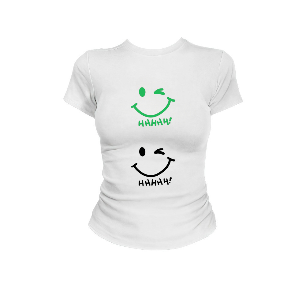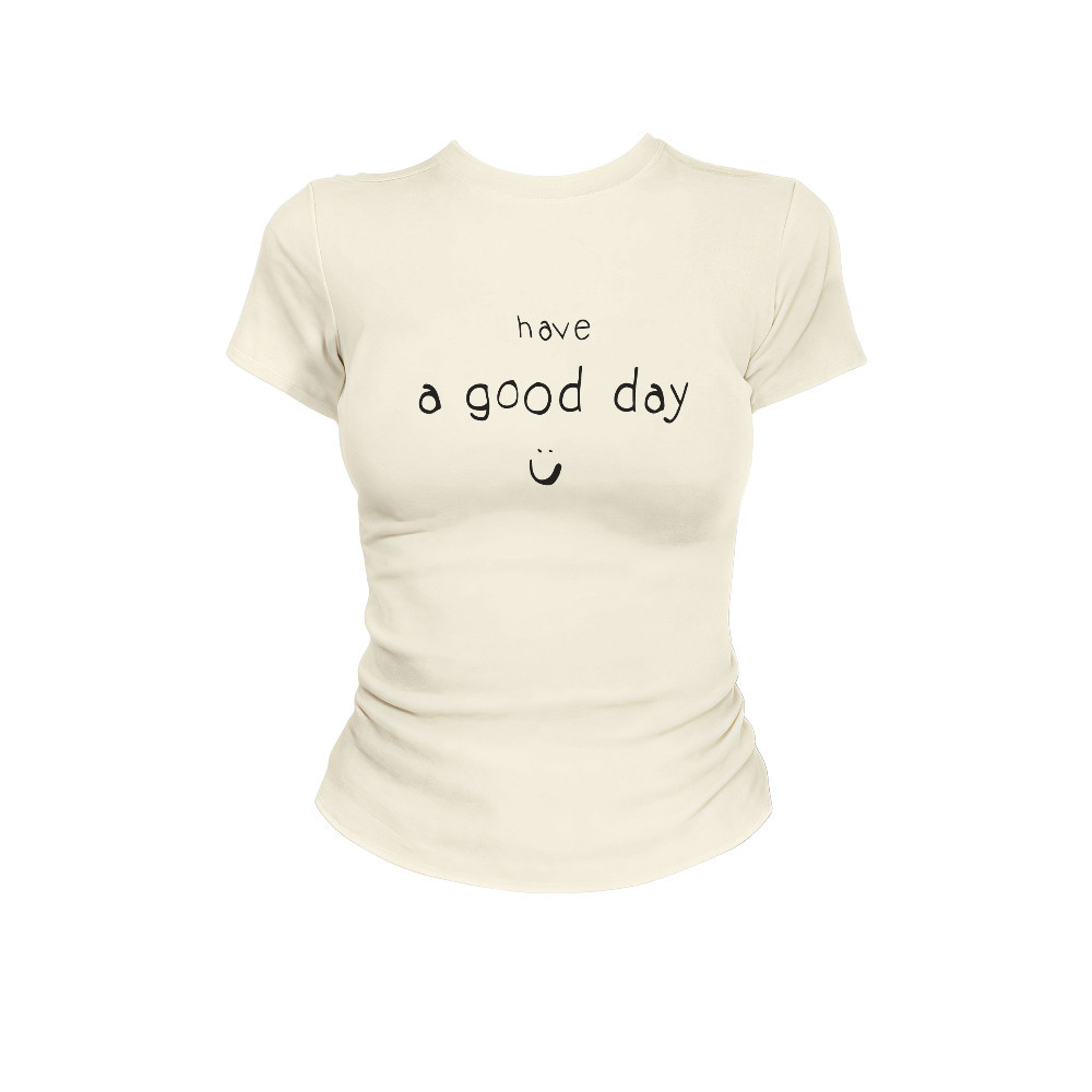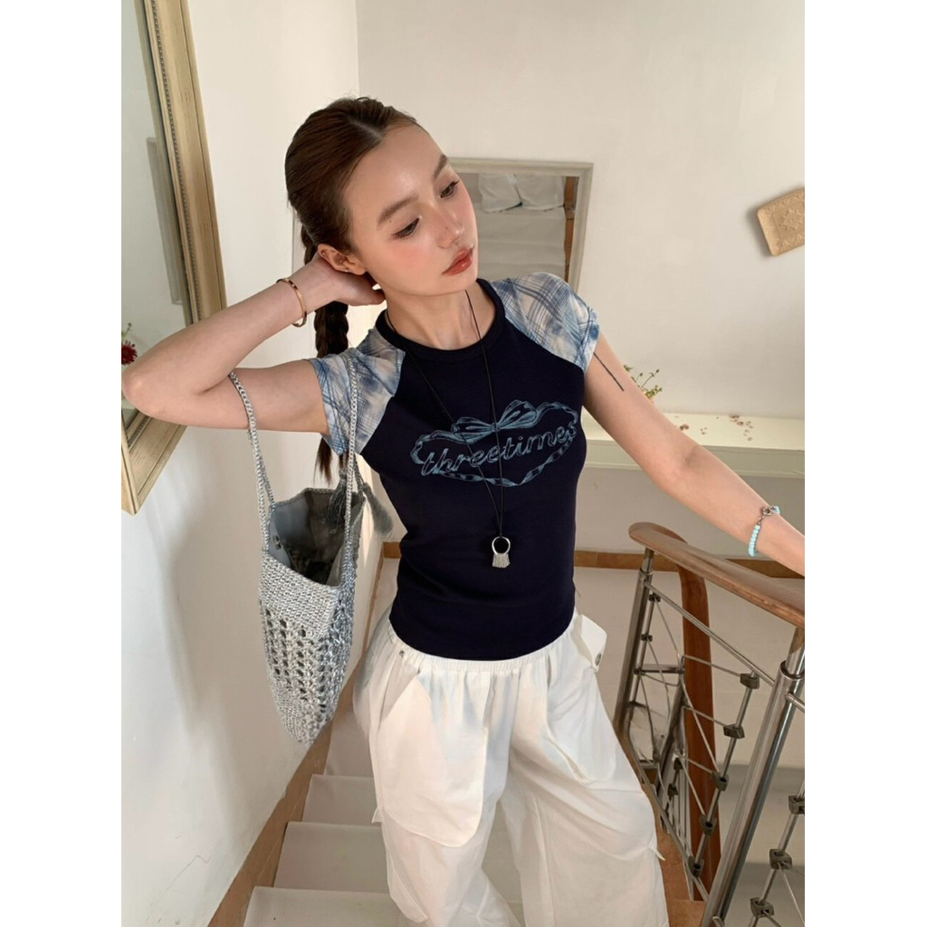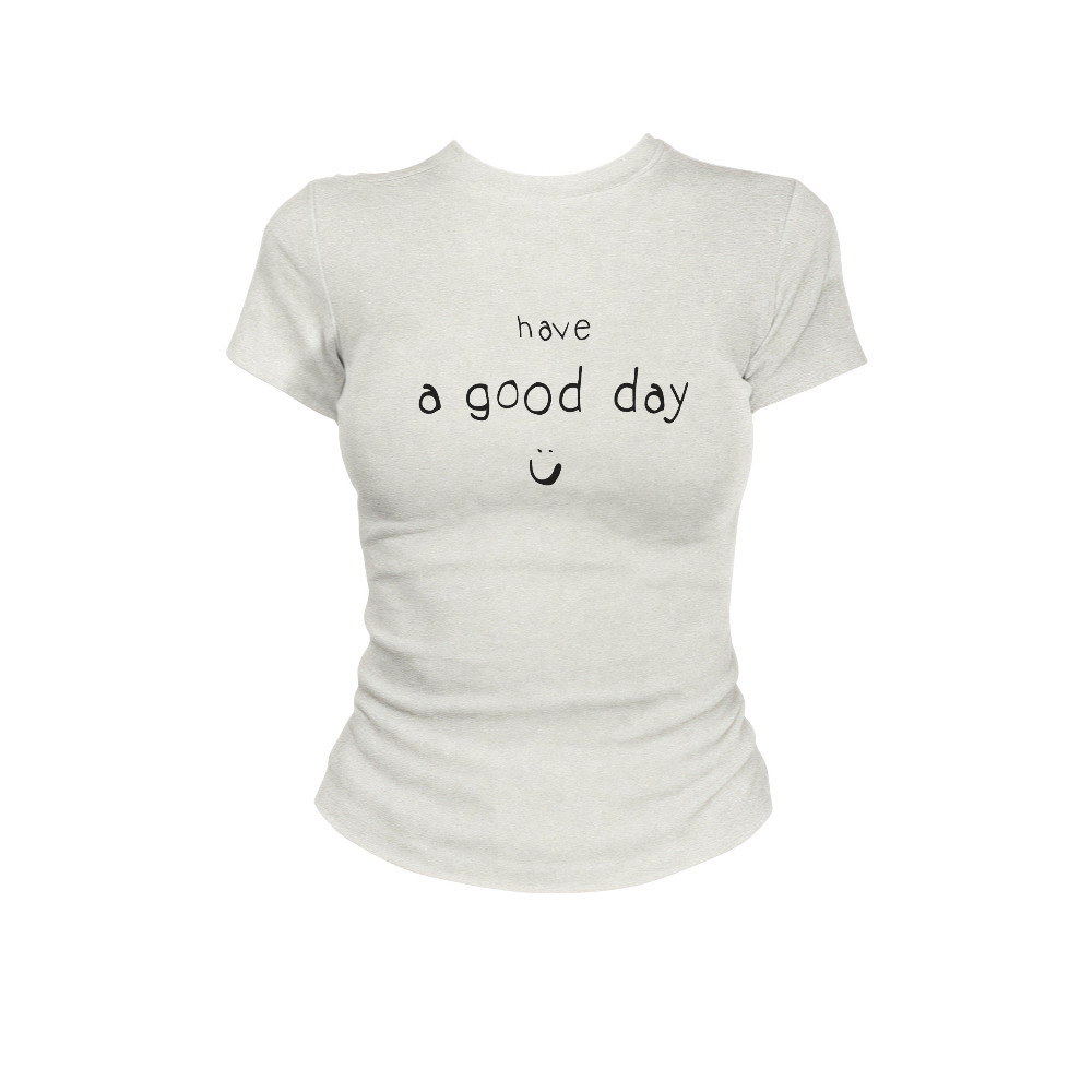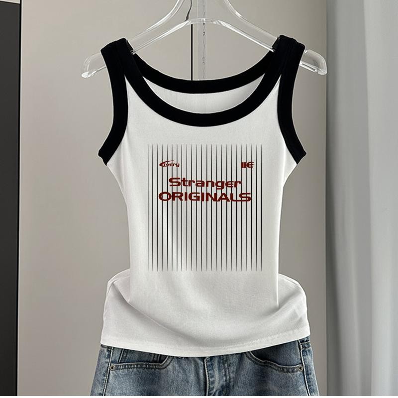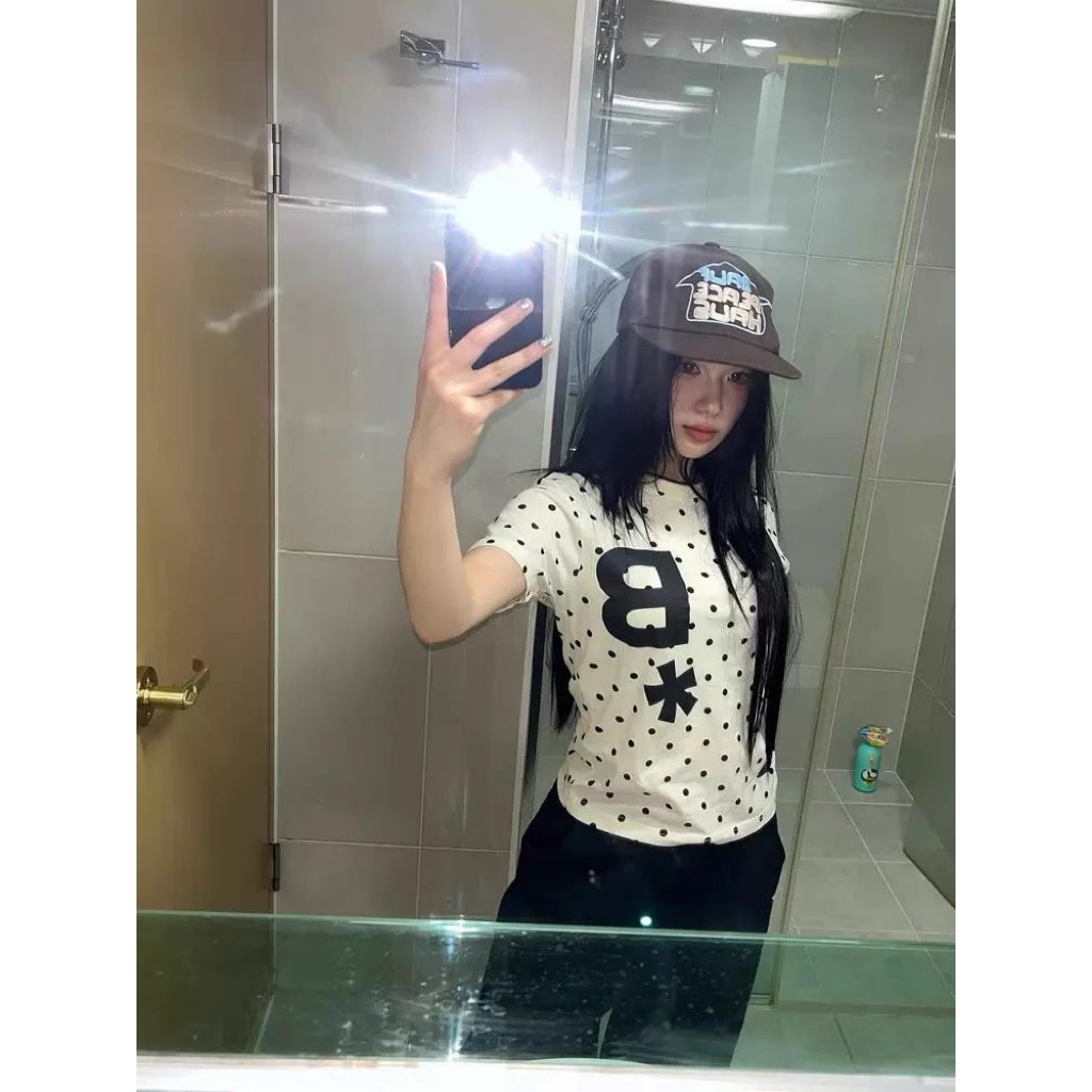 100% ผ้าฝ้าย สลิมฟิต แขนสั้น TLDX0724 การพิมพ์ เซ็กซี่ ความยืดหยุ่น ไหล่ตรง การออกแบบสไตล์อเมริกัน
