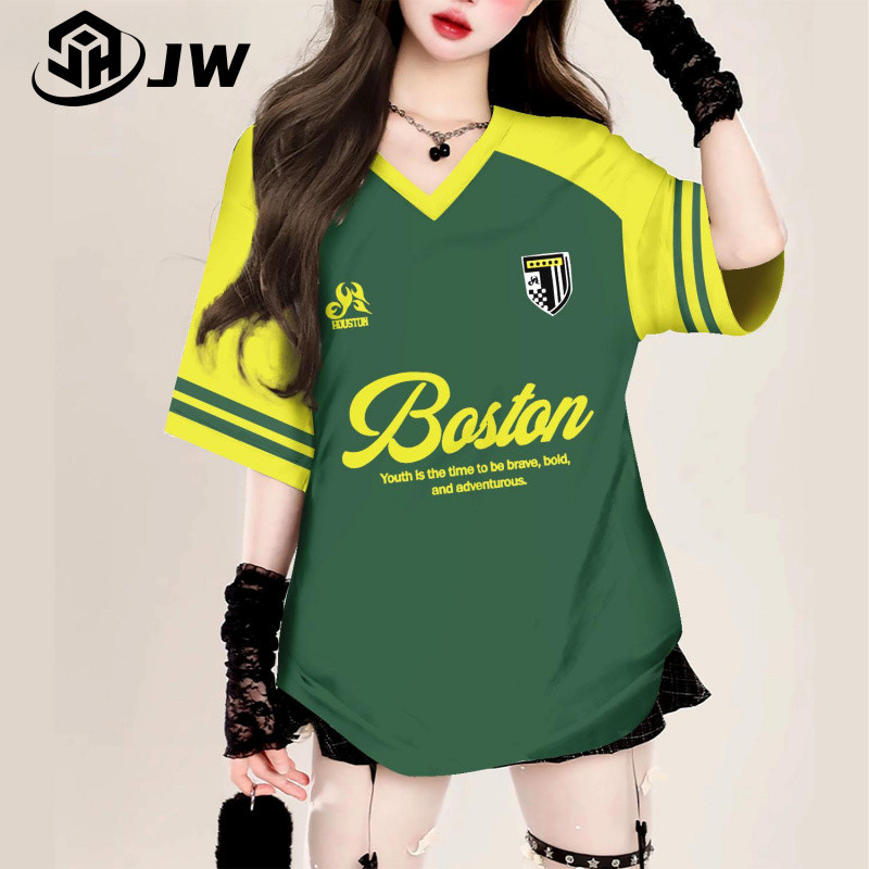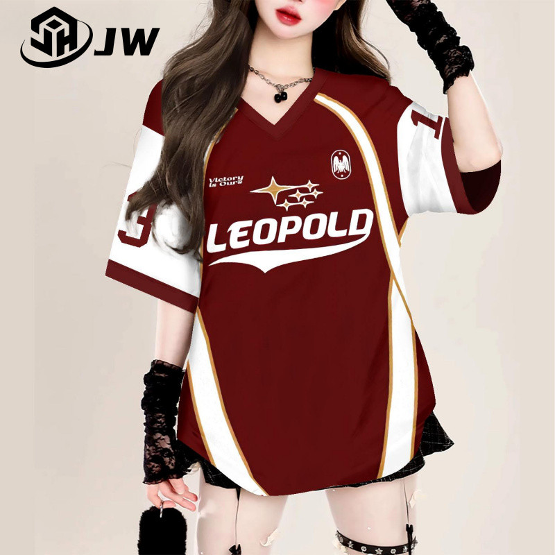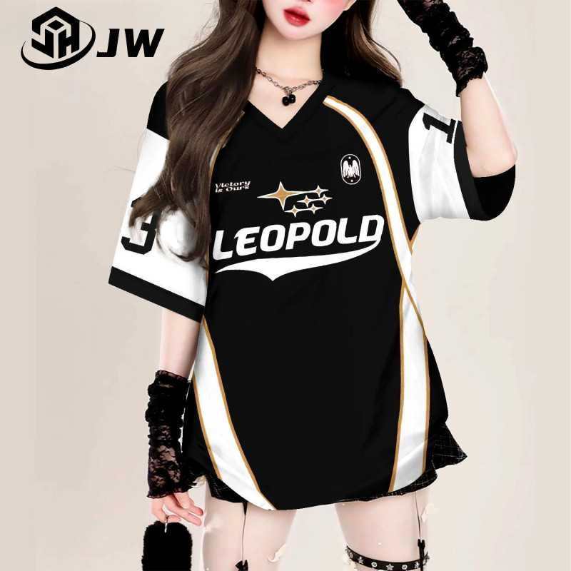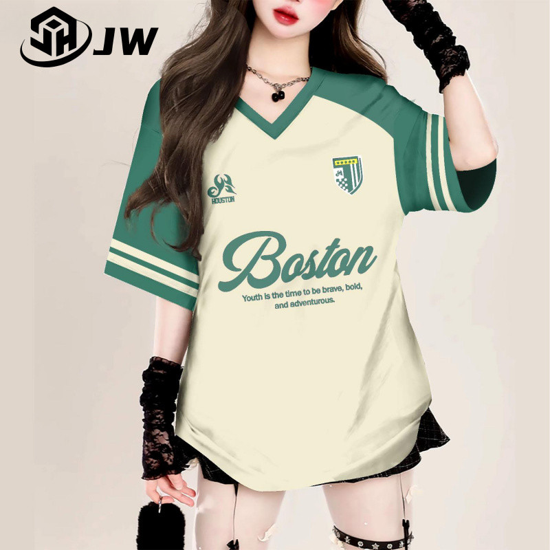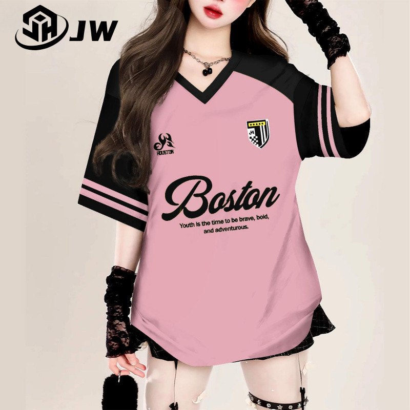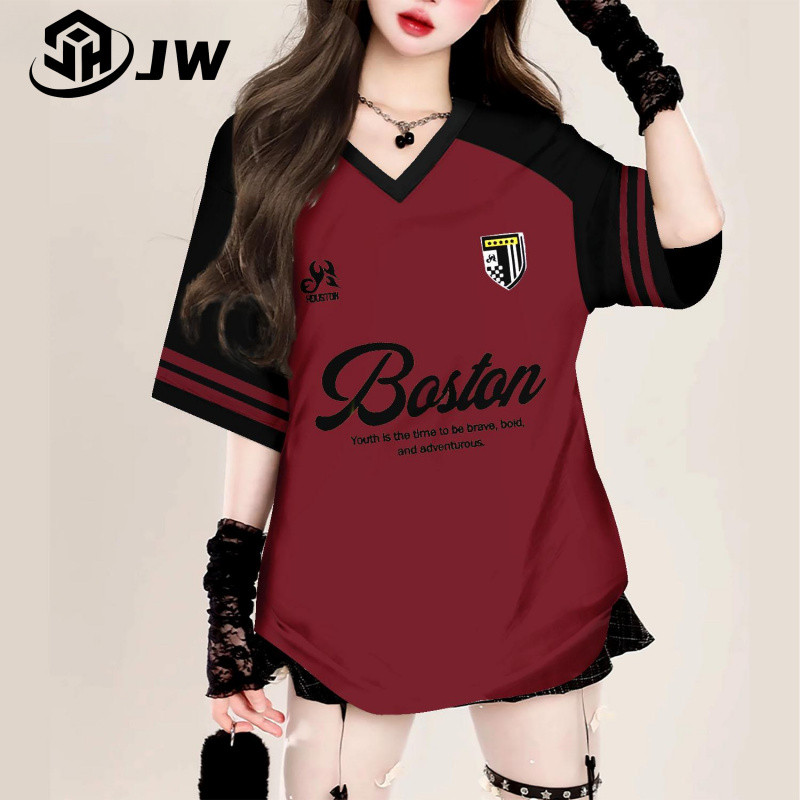 2025 เสื้อยืดแขนสั้นคอวีหลวมสำหรับผู้หญิง สไตล์เกาหลี แฟชั่นแห้งเร็ว น้ำหนักเบา สบาย สไตล์หวาน