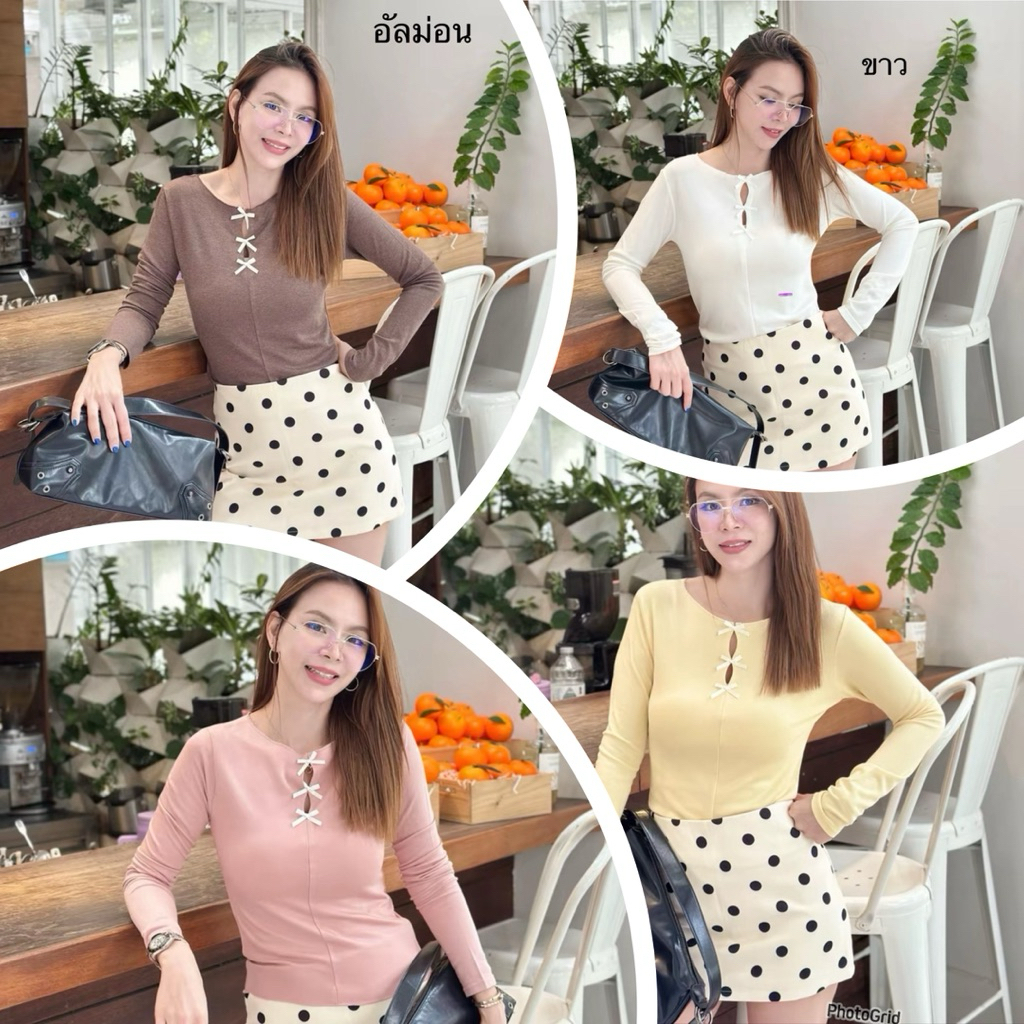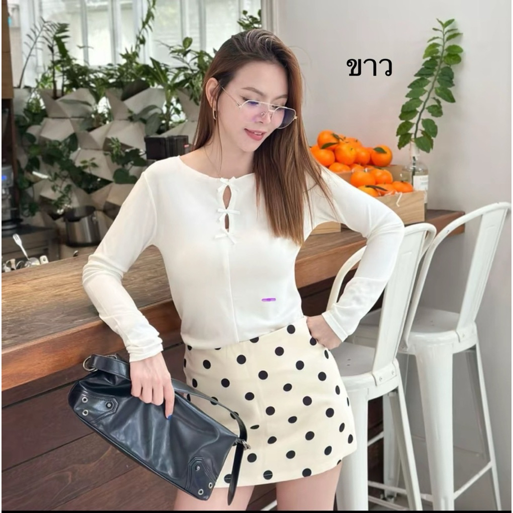 127 เสื้อยืดแขนยาวแต่งโบว์ อก 36-42 อกหน้าผ้า 36 ผ้าสแควร์ ผ้านิ่ม ยับยาก ไม่ต้องรีด