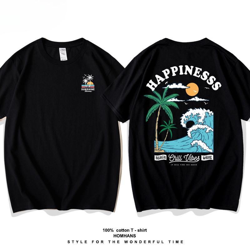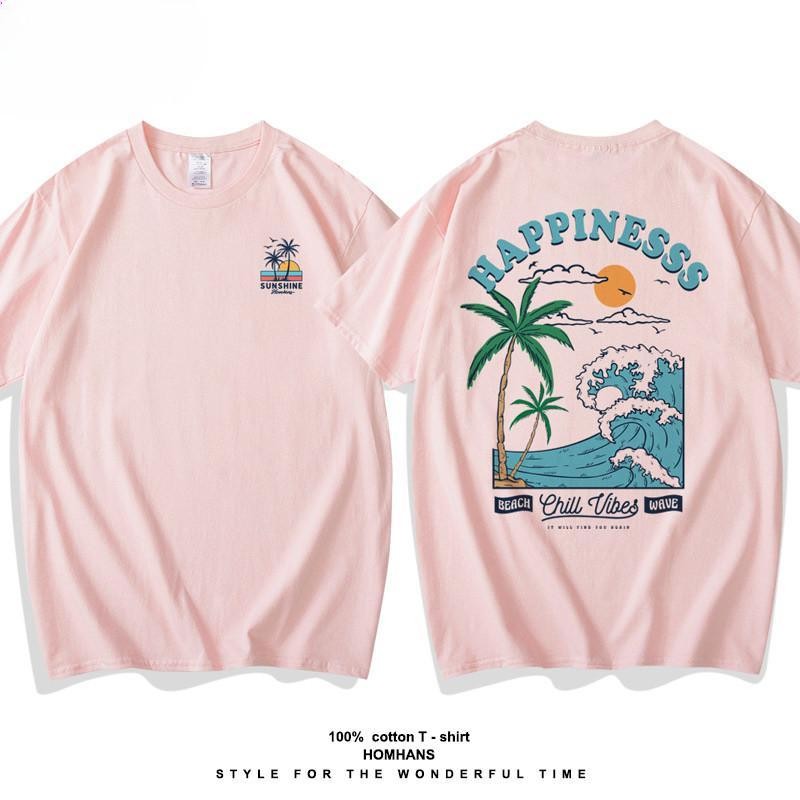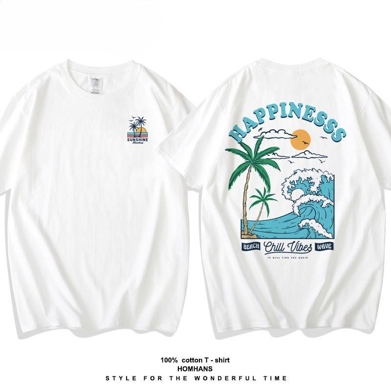 (จัดส่งตลอด 24 ชั่วโมง)เสื้อยืด Oversize เสื้อยืดซัมเมอร์ ลายต้นมะพร้าวคลื่นทะเล สไตล์ Chill Chill ผ้าคอตตอน 100%