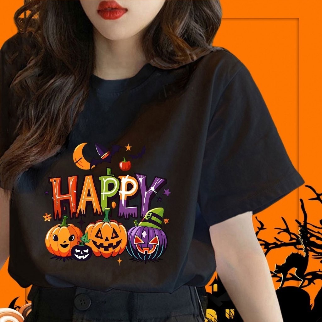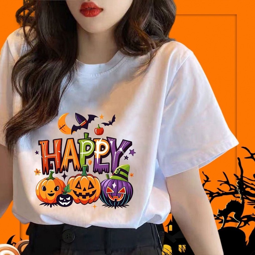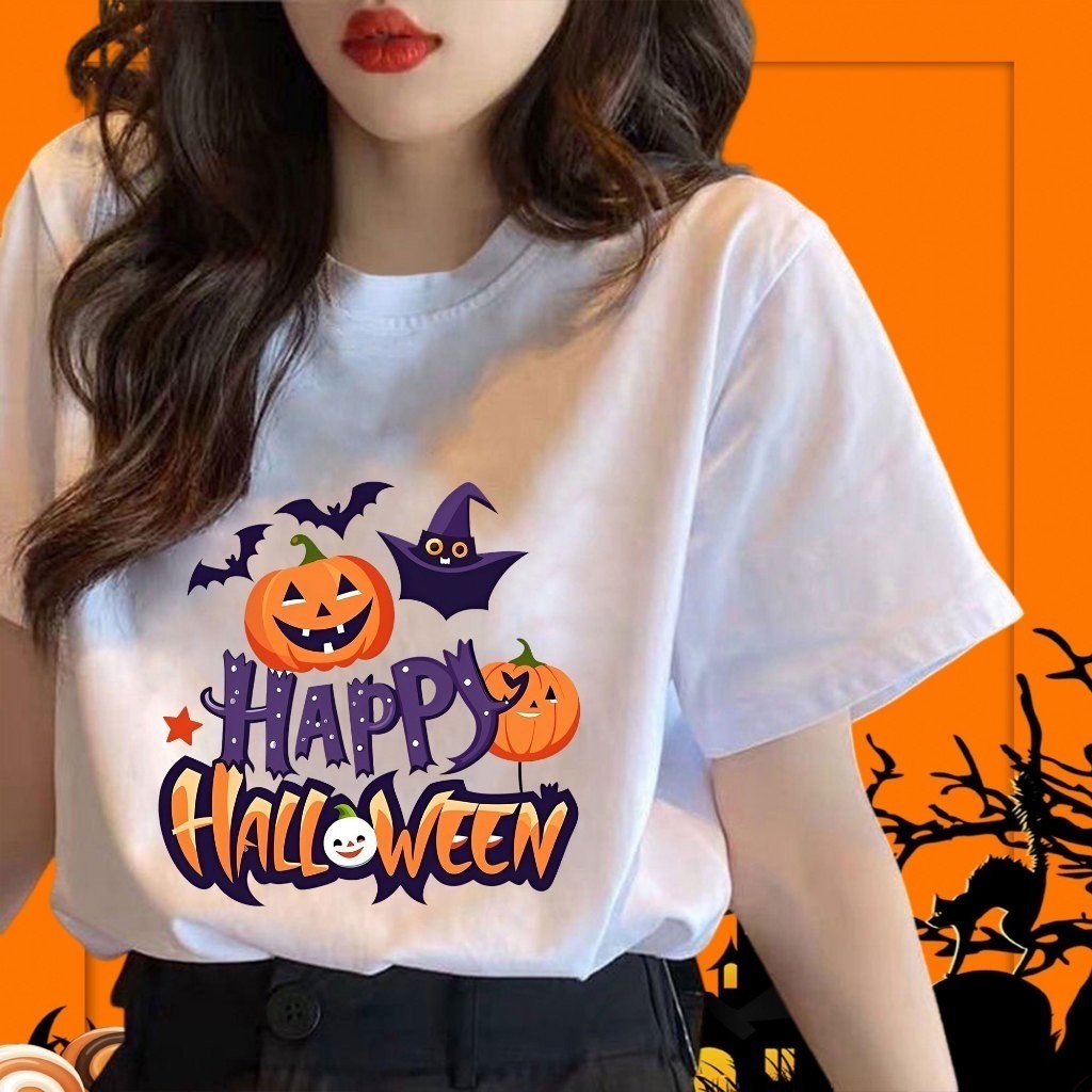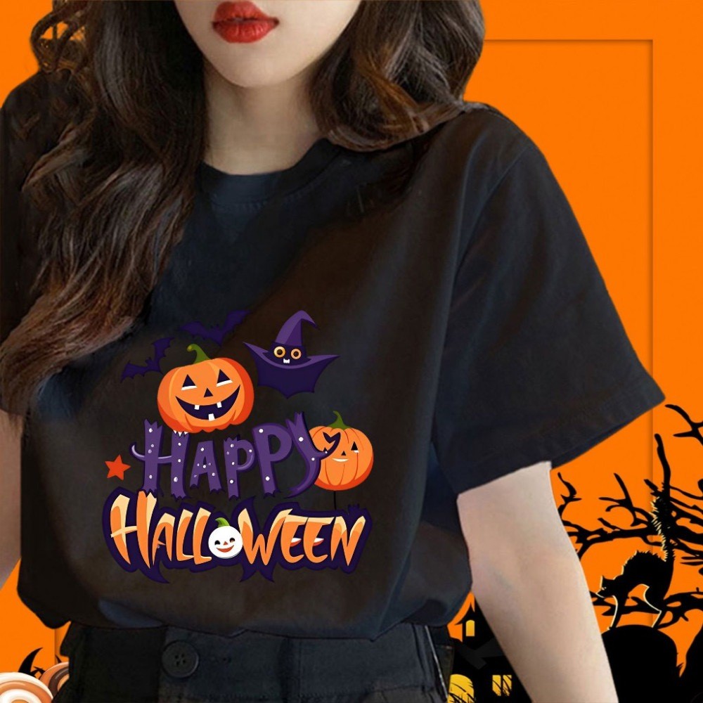 (จัดส่งตลอด 24 ชั่วโมง)Angle Official เสื้อฮาโลวีน Happy Halloween T-Shirt พิมพ์ด้วย ชุดฮาโลวีน ผ้าCotton 100%