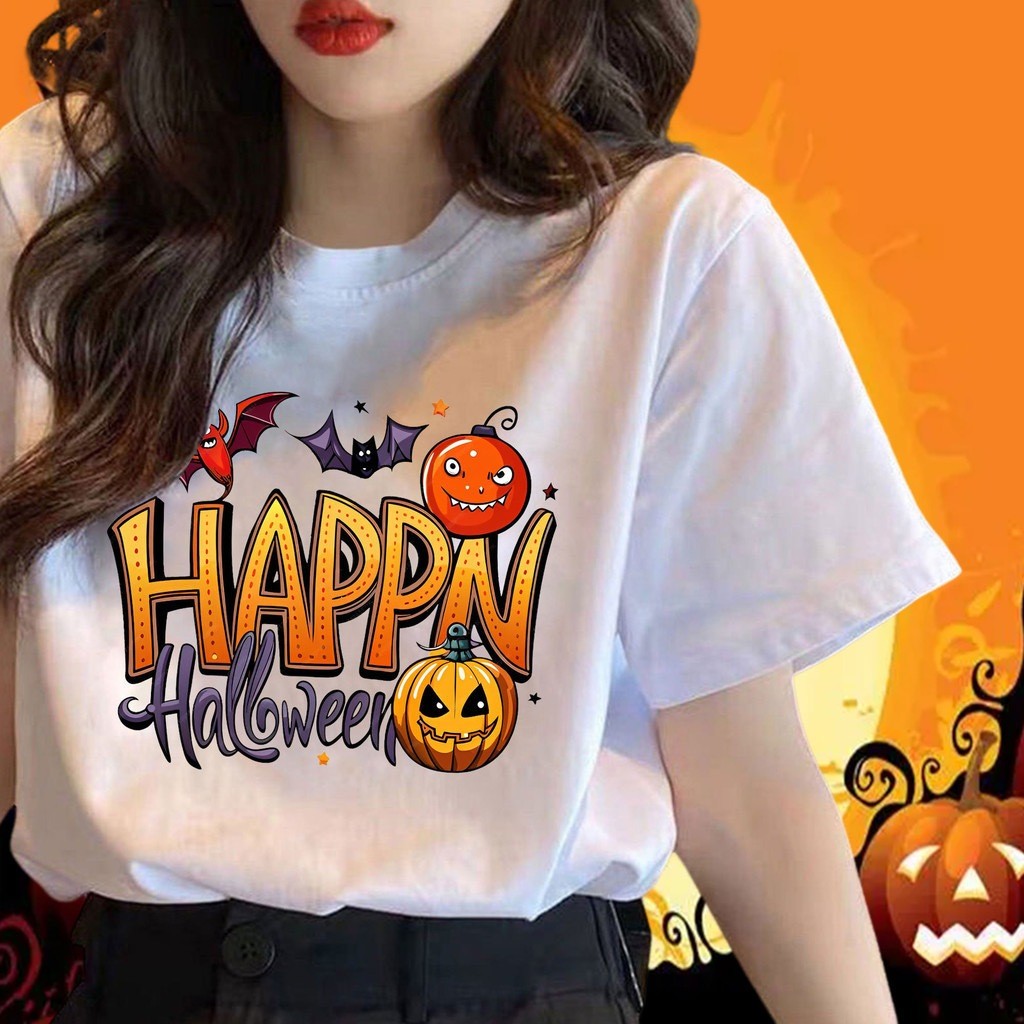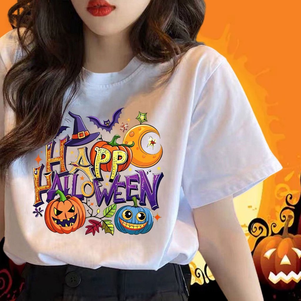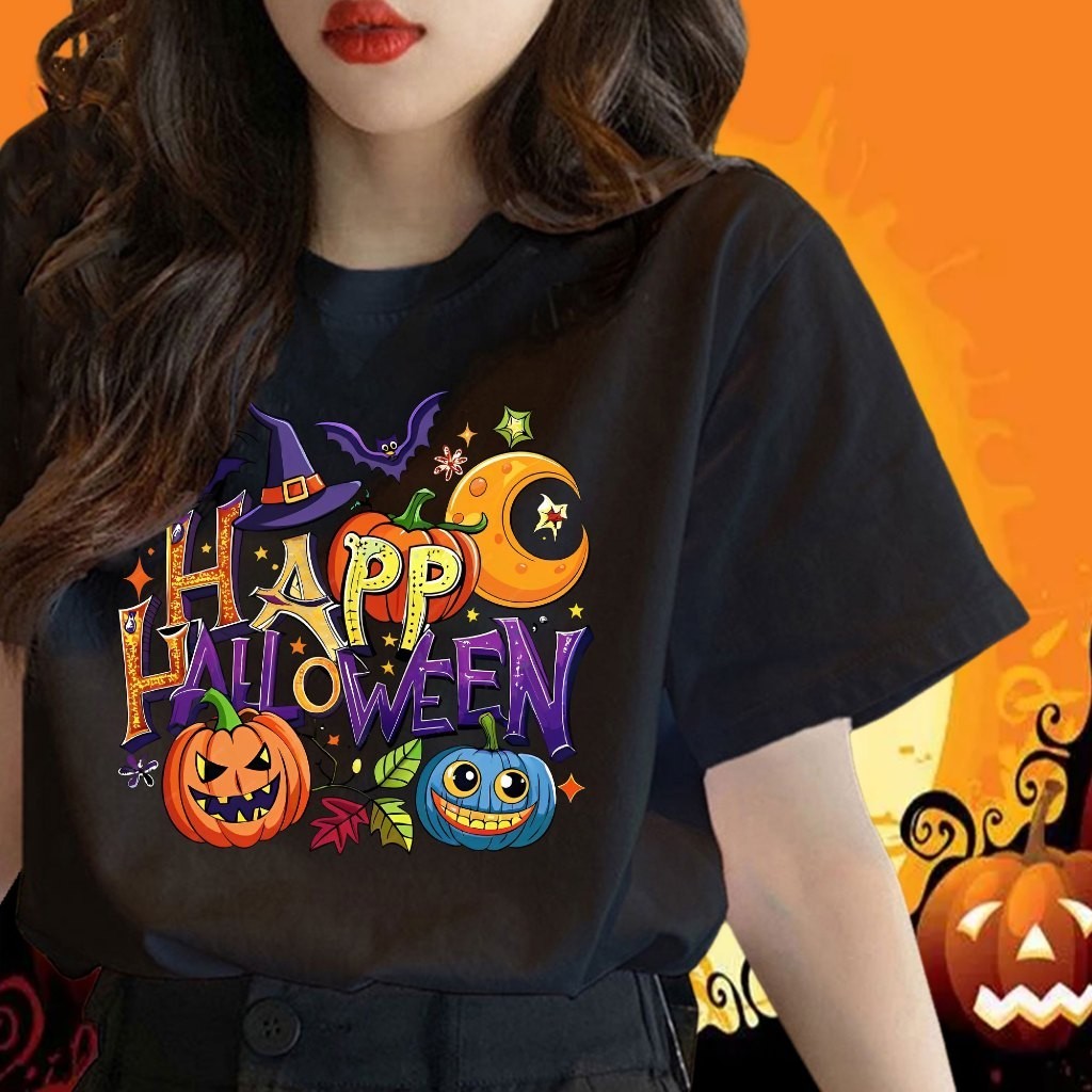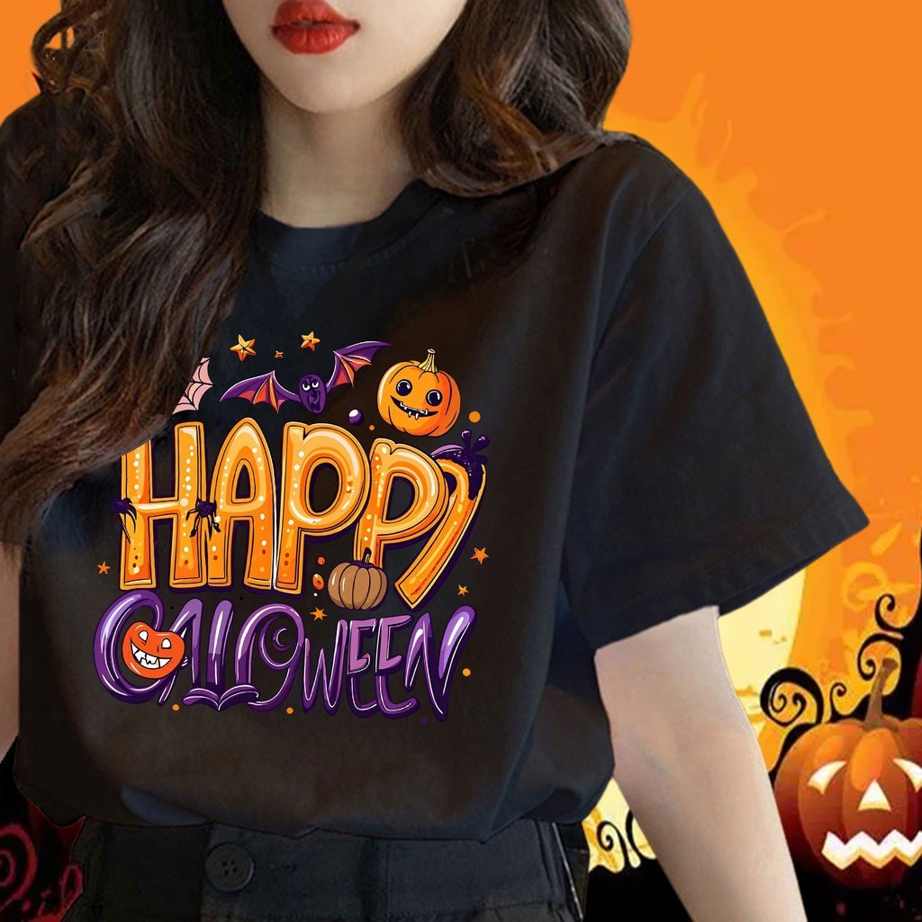 (จัดส่งตลอด 24 ชั่วโมง)Angle Official เสื้อฮาโลวีน Happy Halloween T-Shirt พิมพ์ด้วย ชุดฮาโลวีน ผ้าCotton 100%
