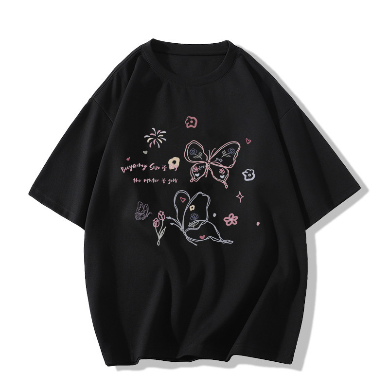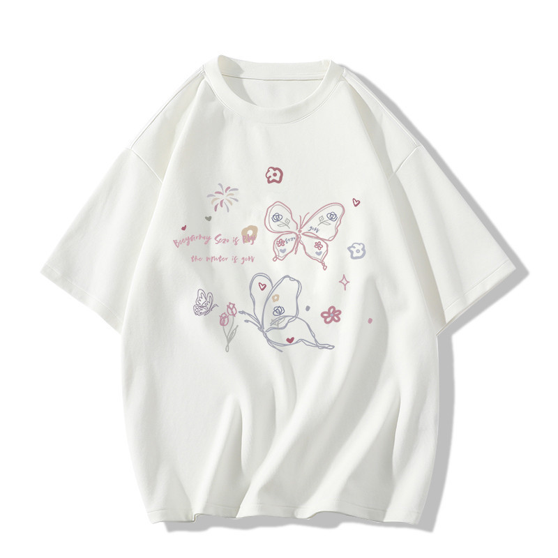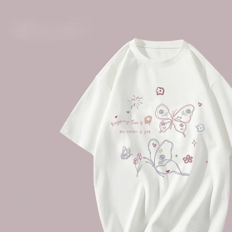 (จัดส่งในกรุงเทพฯ) เสื้อยืดลายผีเสื้อ Butterfly ผ้าฝ้ายฤดูร้อนสบาย ๆ เสื้อยืดผ้า Cotton oversize เสื้อยืดคอกลมแฟชั่น