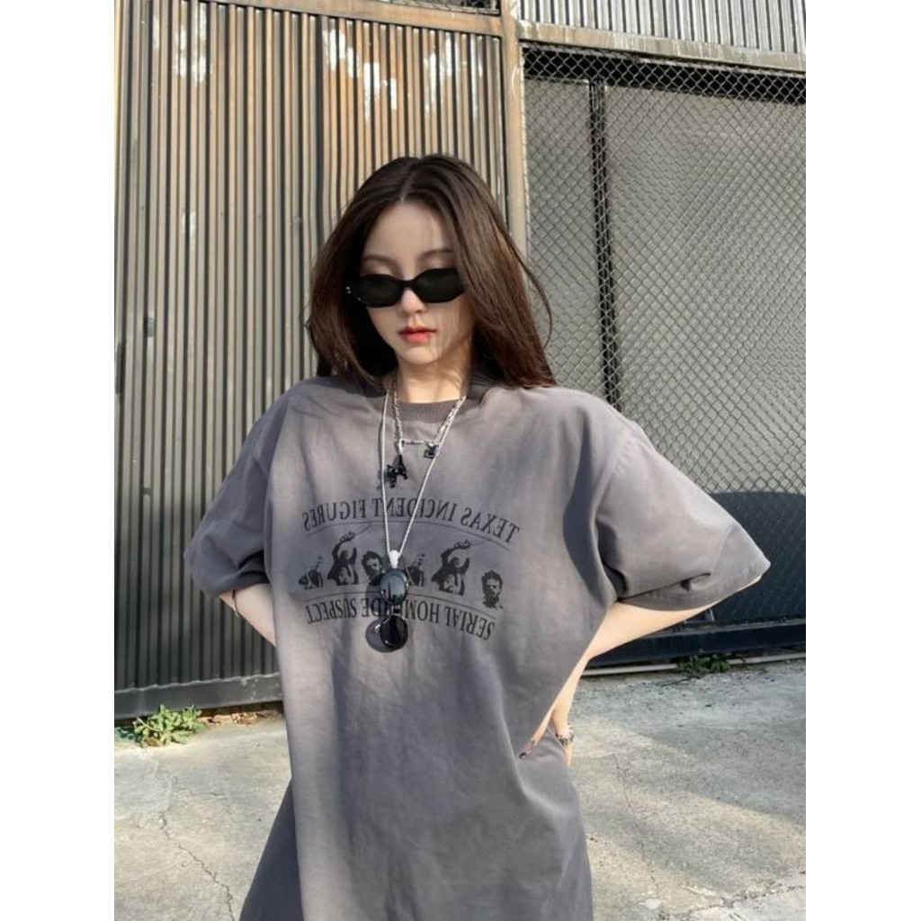 (จัดส่งตลอด 24 ชั่วโมง)OOOK Official เสื้อยืดแขนสั้นลายวินเทจ เสื้อโอเวอร์ไซส์ผู้หญิง เสื้อผ้าสาวอวบ