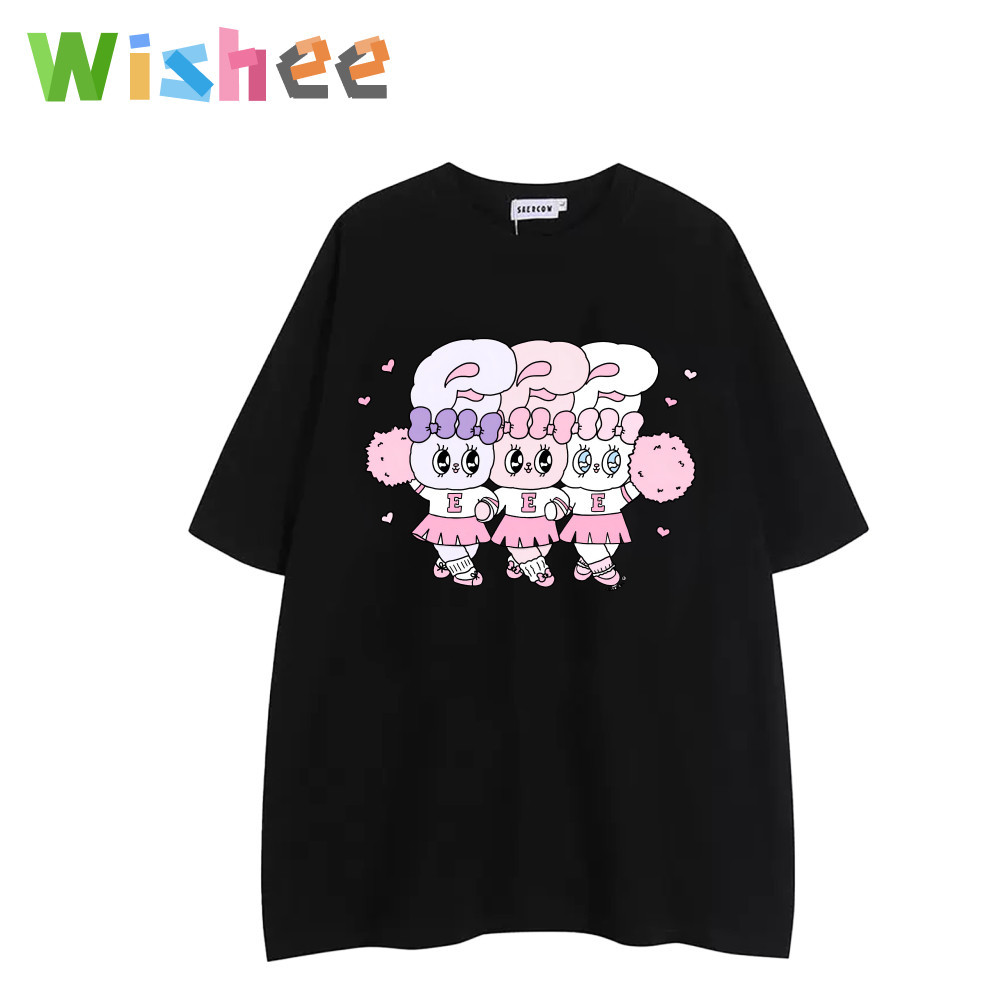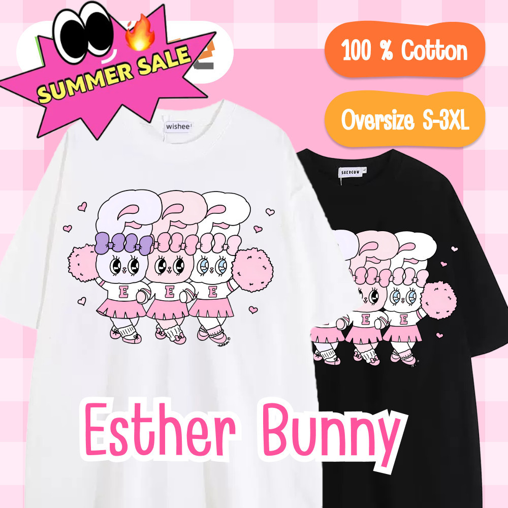 (จัดส่งทันที) เสไตล์ลำลอง คอกลม เสื้อยืดโอเวอร์ไซส์ 🐰 Esther Bunny#05☀️100% cotton 🌈