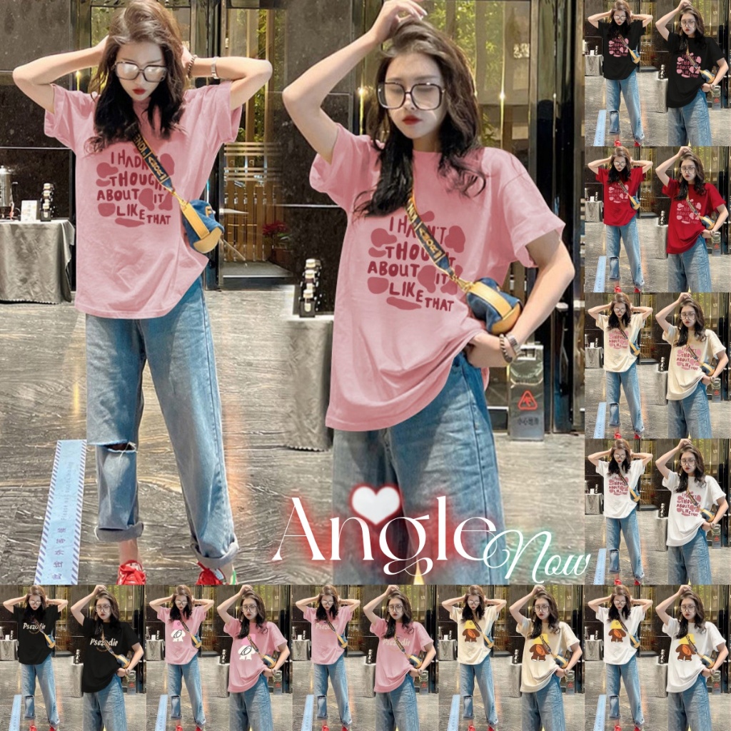 (จัดส่งตลอด 24 ชั่วโมง)Angle Official เสื้อยืดแขนสั้นลําลองทรงหลวมสไตล์เกาหลีเสื้อผ้าแฟชั่นวัยรุ่น เสื้อโอเวอร์ไซส์ลายตั