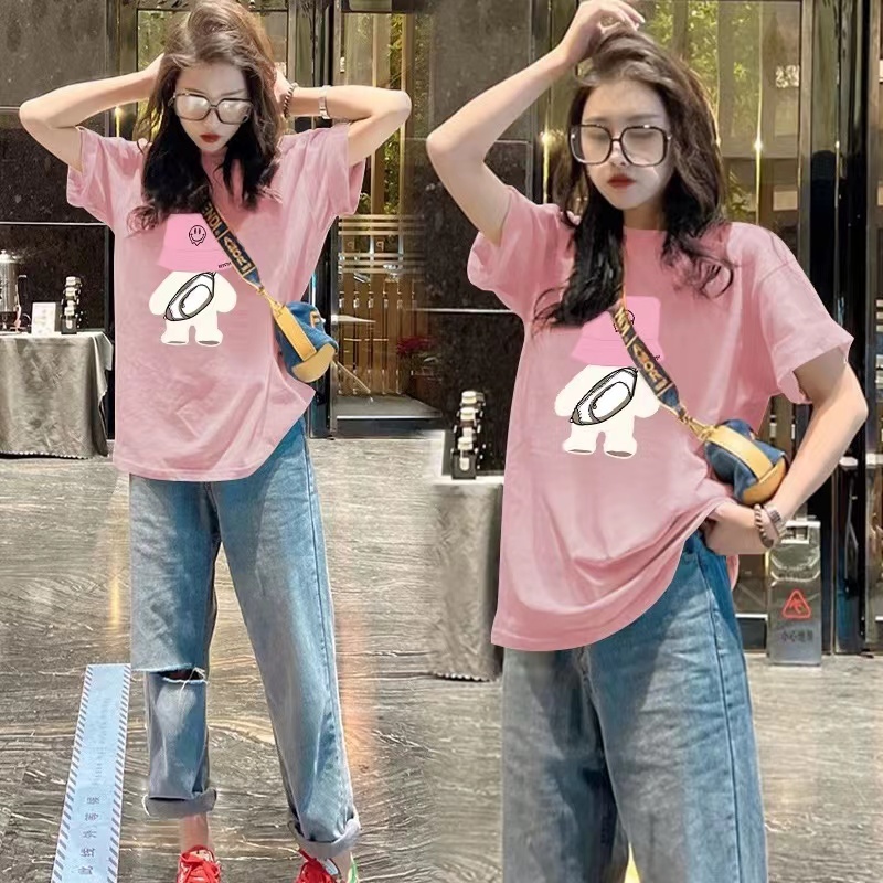 (จัดส่งตลอด 24 ชั่วโมง)BOOM SHOP น่ารักการ์ตูนสาวแฟชั่นเสื้อยืดขนาดใหญ่พิเศษรุ่นเกาหลีหลวมยาวแฟชั่นเสื้อผ้า #2487
