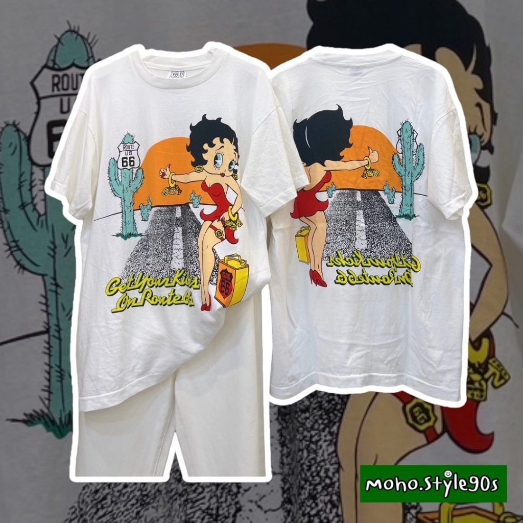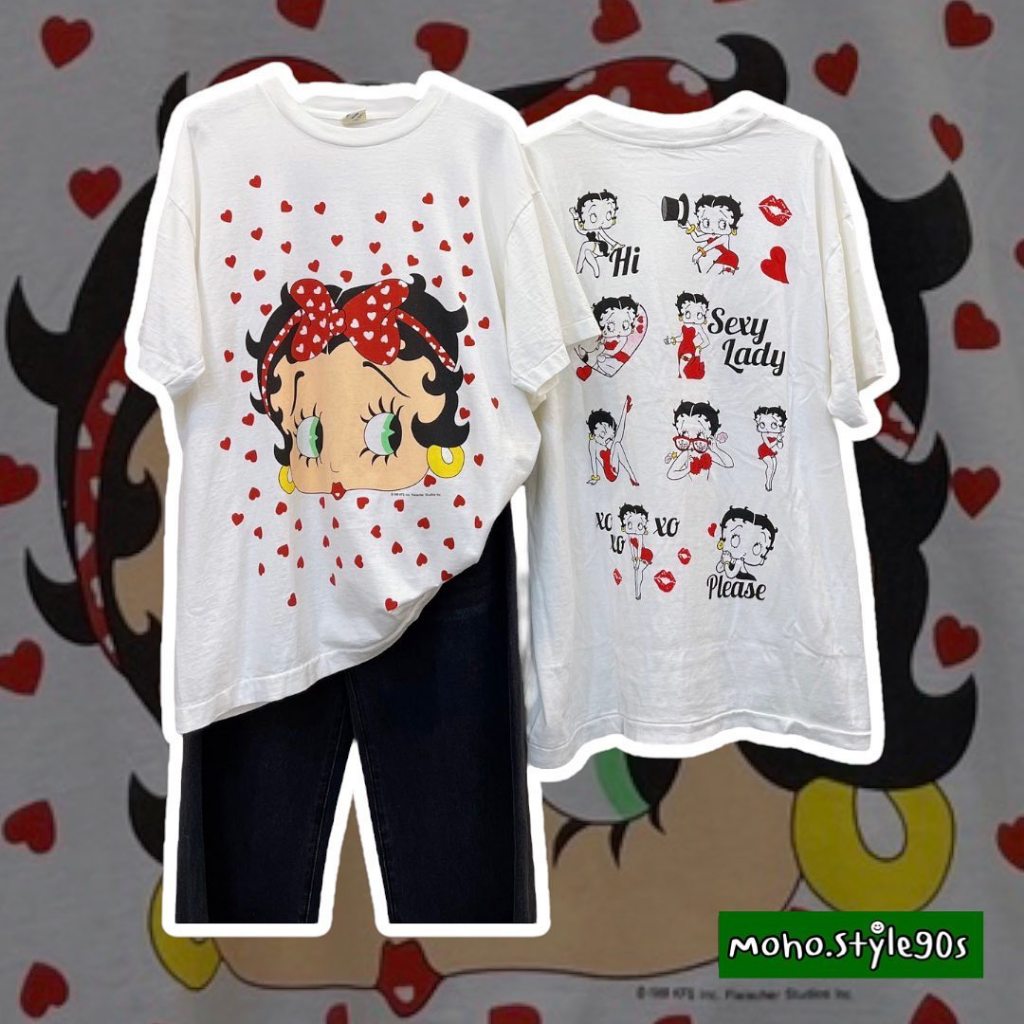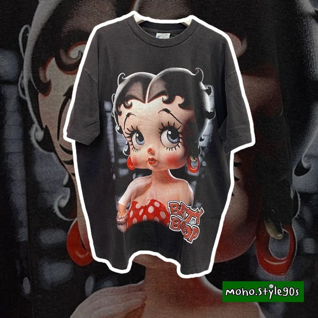 (จัดส่งตลอด 24 ชั่วโมง)betty boop cotton100% เสื้อยืดคอกลม แขนสั้น พิมพ์ลายการ์ตูน สไตล์ฮ่องกง ย้อนยุค เรียบง่าย ทรงหลวม