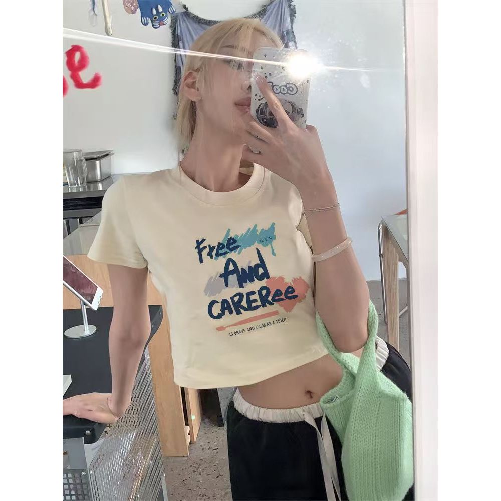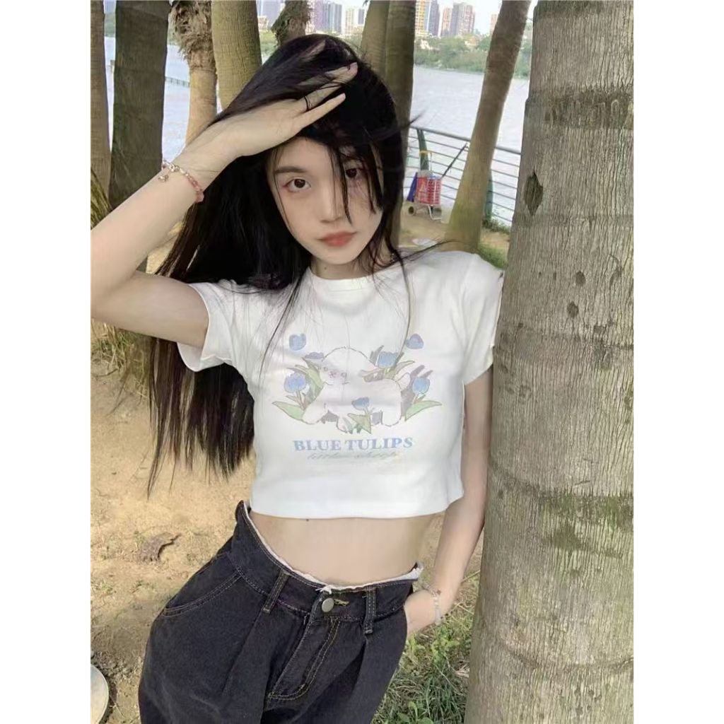 (จัดส่งตลอด 24 ชั่วโมง)Angle Official เสื้อยืดสวยๆผู้หญิง แขนสั้น ทรงเข้ารูป เซ็กซี่ สไตล์อเมริกันย้อนยุคเรียบง่าย