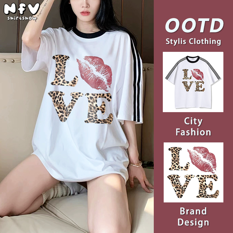 (ส่งด่วนกทม) NFV เสื้อยืดวินเทจ ลายตัวอักษร LOVE 💕 ลายปากเสือ สไตล์อเมริกัน สตรีท ผ้าฝ้าย ทรง Oversize YG826