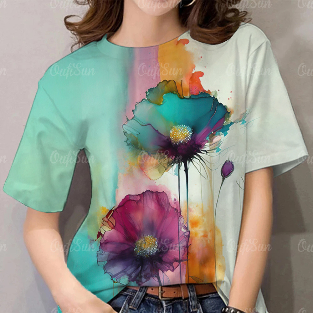 (พร้อมส่ง) เสื้อยืดสตรีทรงหลวมพิมพ์ลายดอกไม้ สไตล์ฮาวาย สําหรับผู้หญิง เสื้อสงกรานต์2568