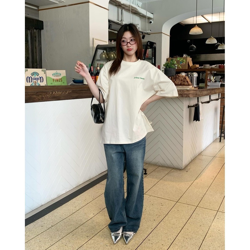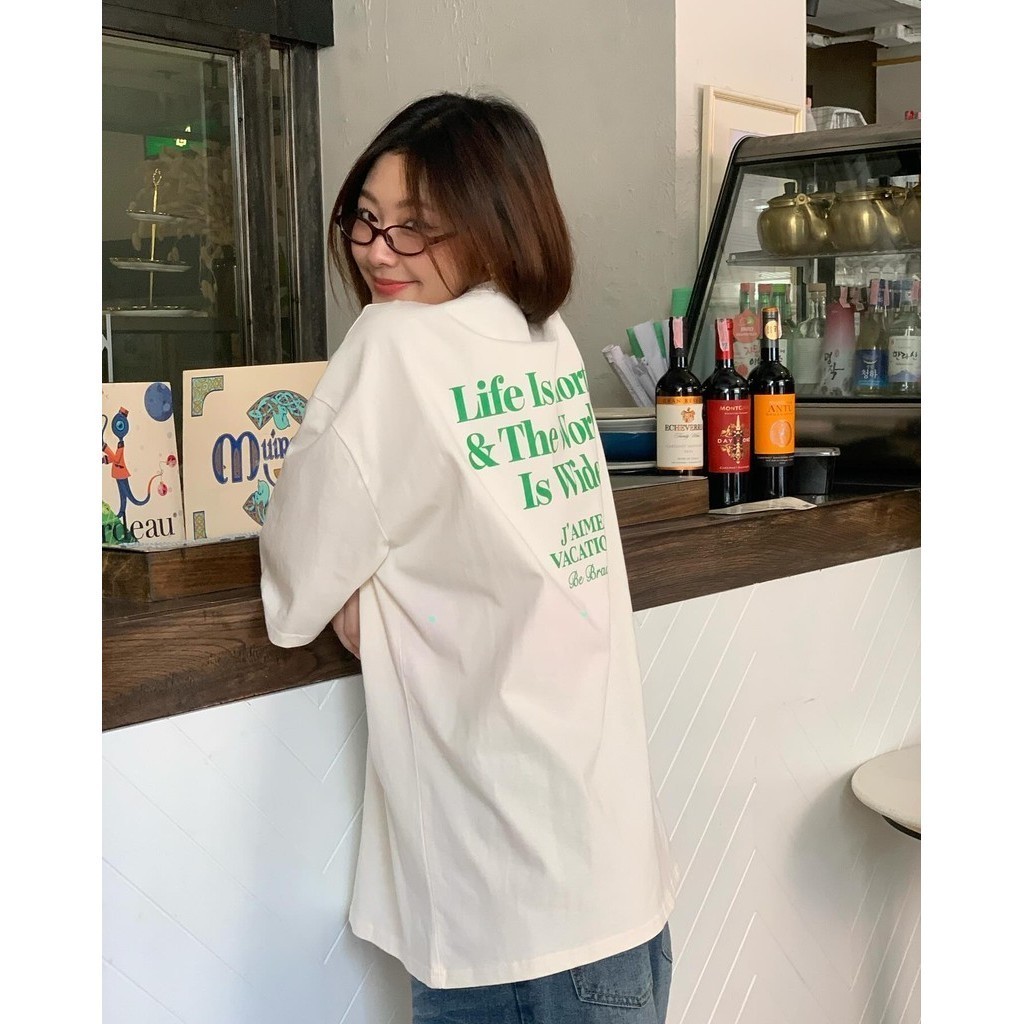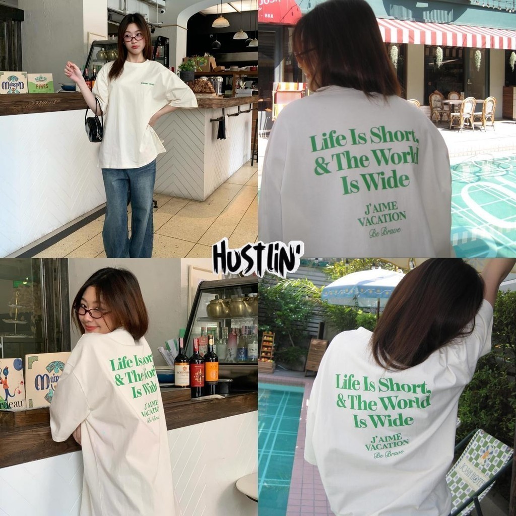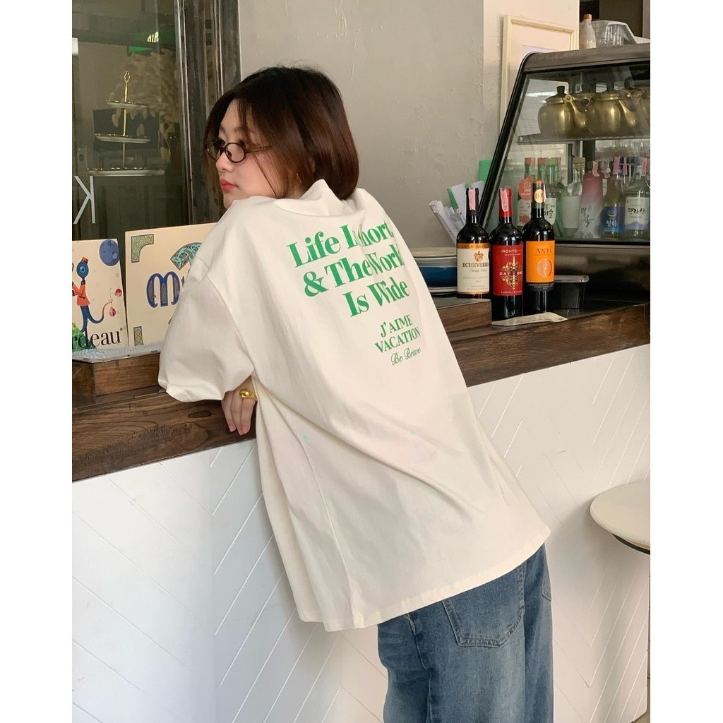 (พร้อมส่ง ) oversize เสื้อยืด เสื้อแขนสั้นคอกลม สื้อยืด lifecreqm สไตล์เกาหลี สไตล์เกาหลี เสื้อยืดทรงหลวม ผ้าCOTTON100%