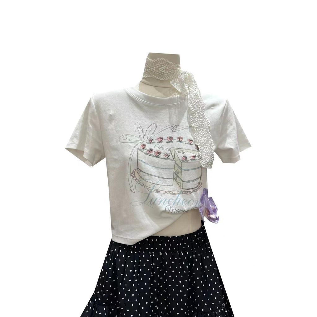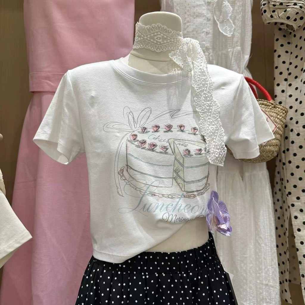 (พร้อมส่งจากกทม มาถึงใน 2วัน)100%Cotton T-shirtโบว์ เสื้อครอปแขนสั้น ผ้าคัตคอน นิ่มใส่สบาย #แขนสั้น baby tee ลายเชอร์รี่