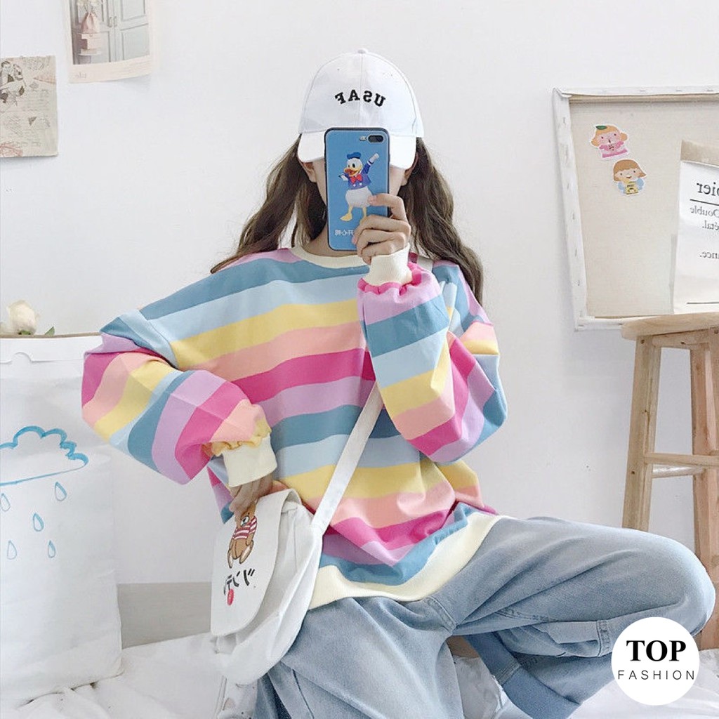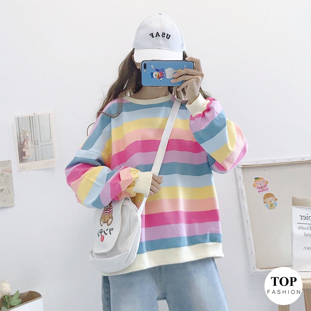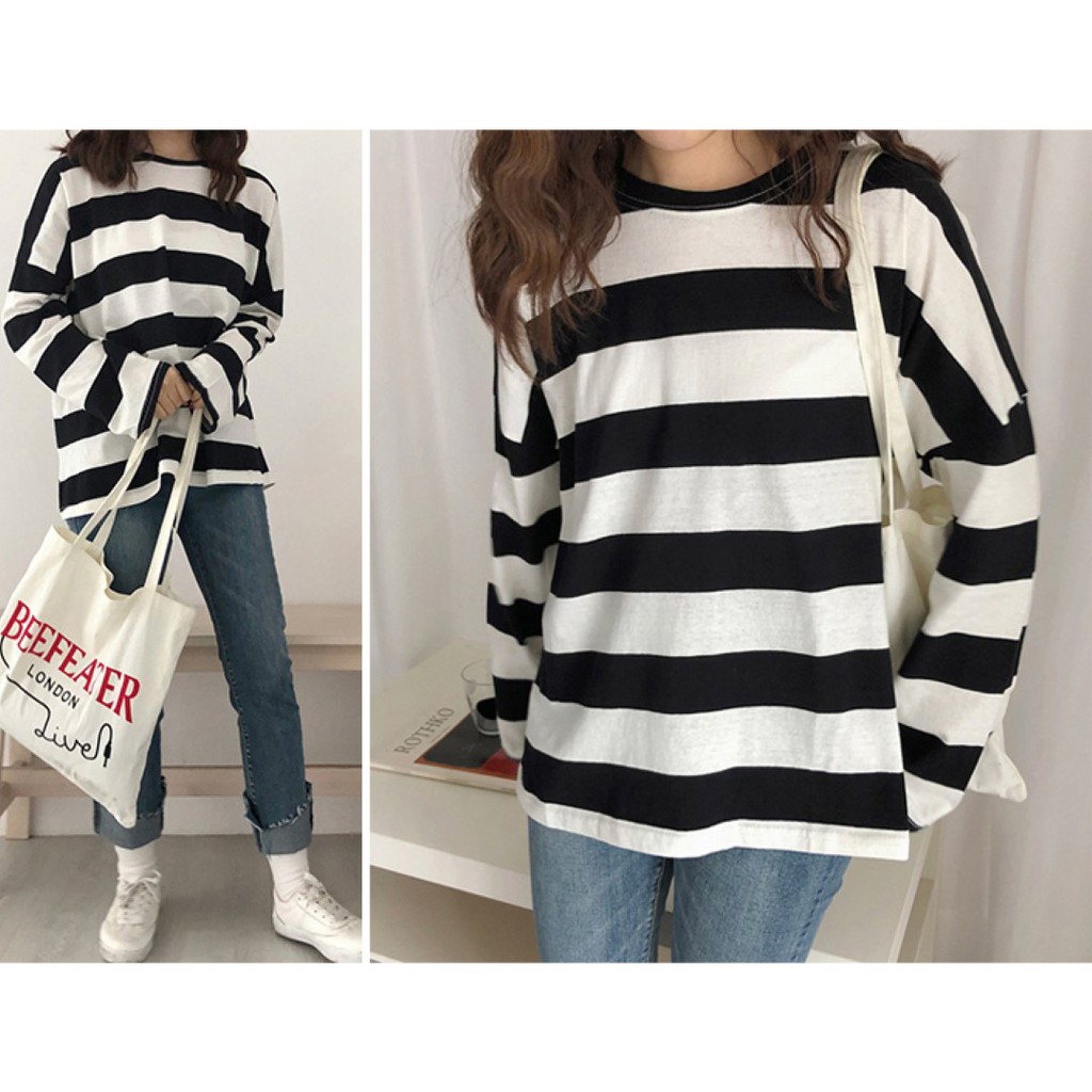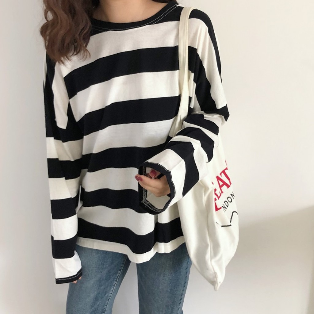🔥พร้อมส่งไทย ราคาถูก🔥เสื้อยืด แขนยาวทรงโอเวอร์ไซส์ ผ้าคอตตอน ใส่สบาย ลายทางสีพาสเทล แฟชั่น