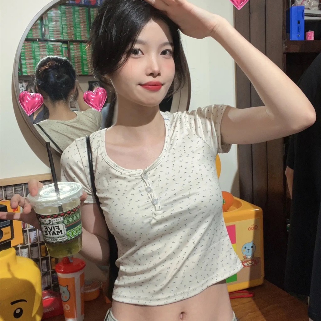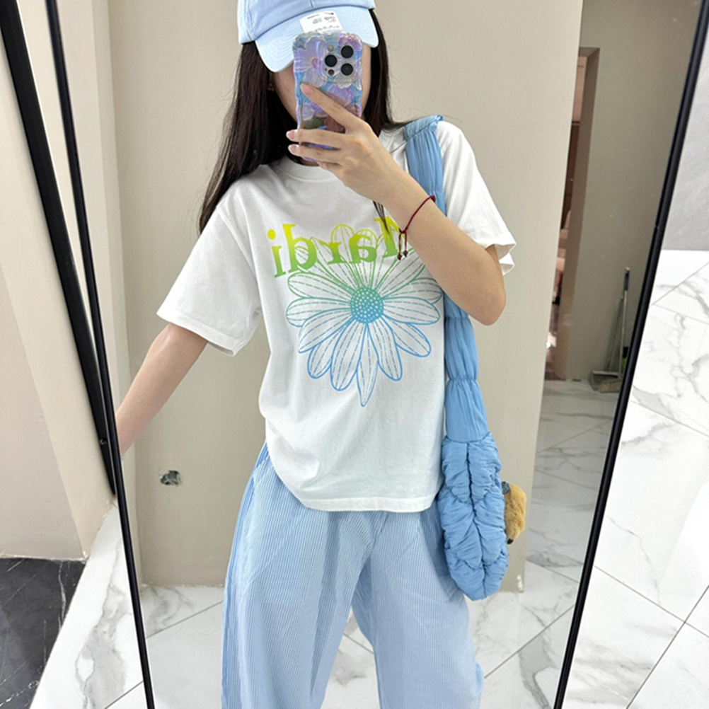 🔥พร้อมส่ง🔥 ใหม่ เสื้อยืดแขนสั้น ลายดอกไม้ สไตล์ฤดูร้อน#A9