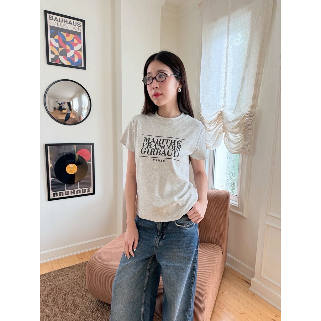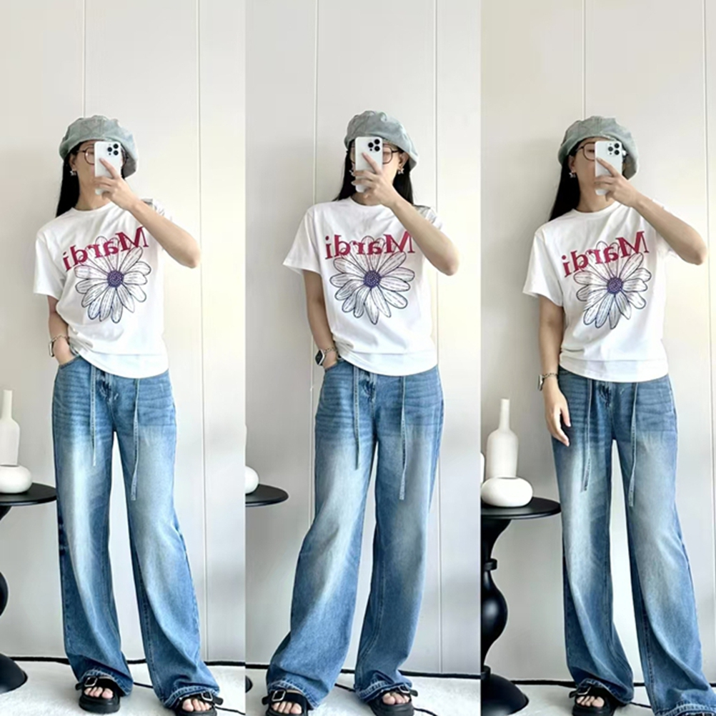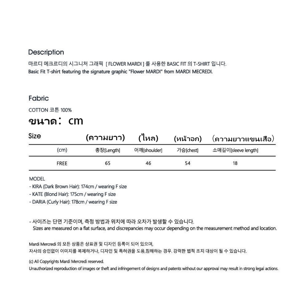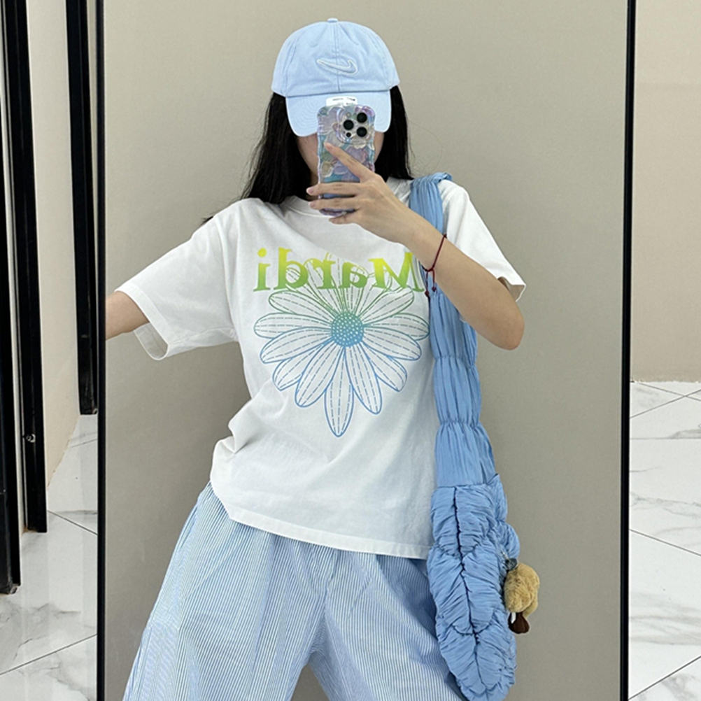 💛แท้/ พร้อมส่ง💛MARDI Mercredi Flower Gradation เสื้อยืด Cotton Round Neck Korea แท้ Casual Wear เสื้อยืด ฟรีไซซ์
