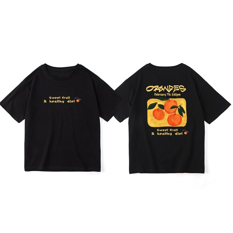 🚚【จัดส่งจากไทย】เสื้อยืดพิมพ์ลายสีส้มสไตล์อเมริกัน แขนสั้น คอกลม ผ้าเนื้อนุ่ม สวมใส่สบาย