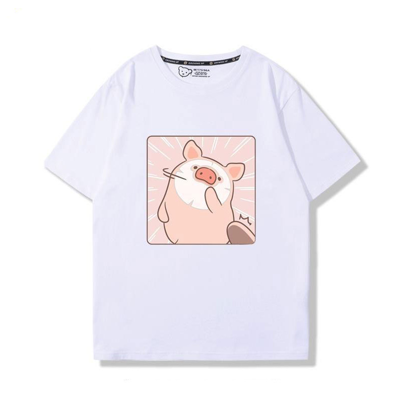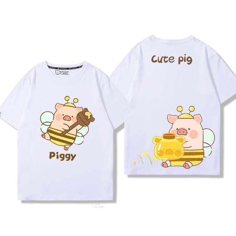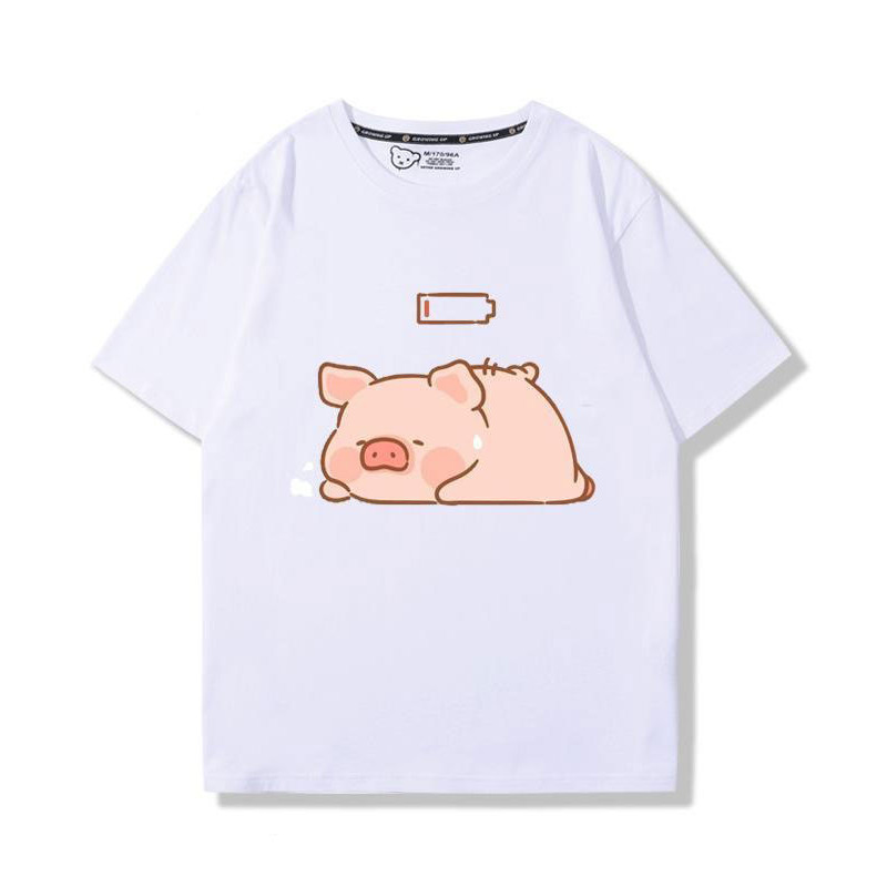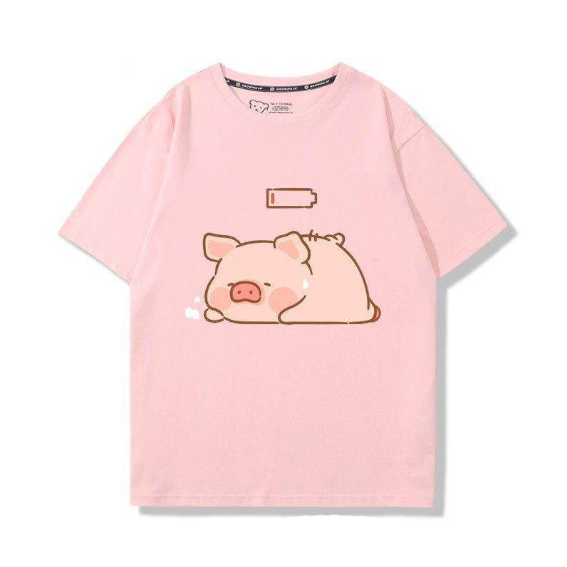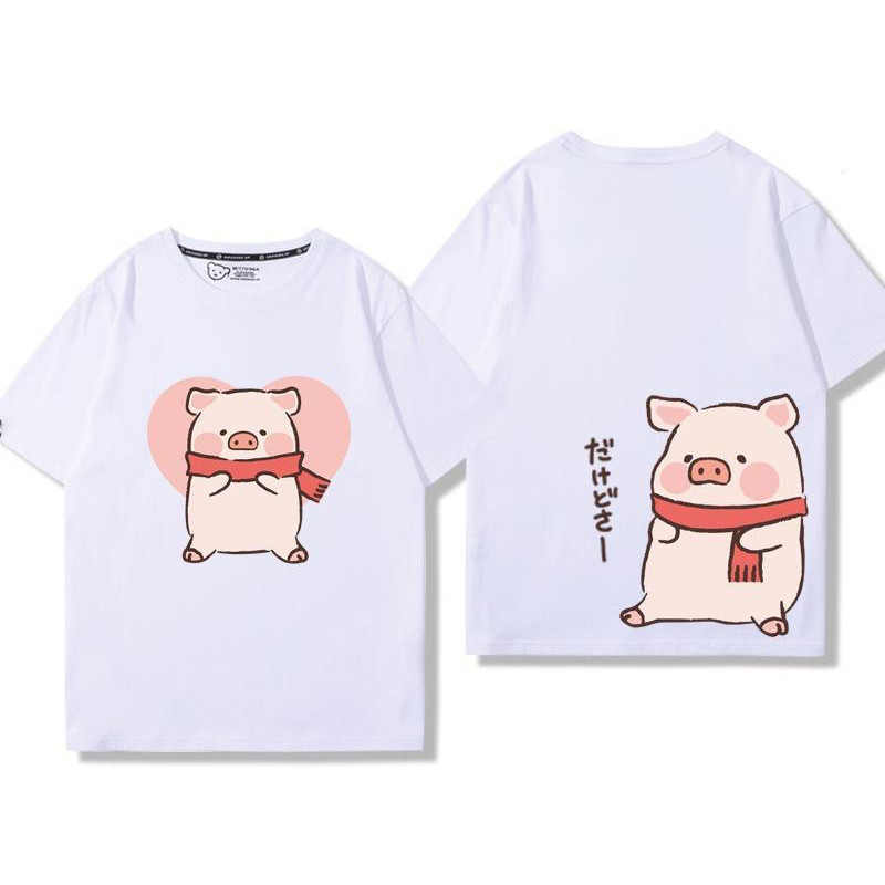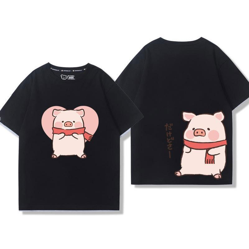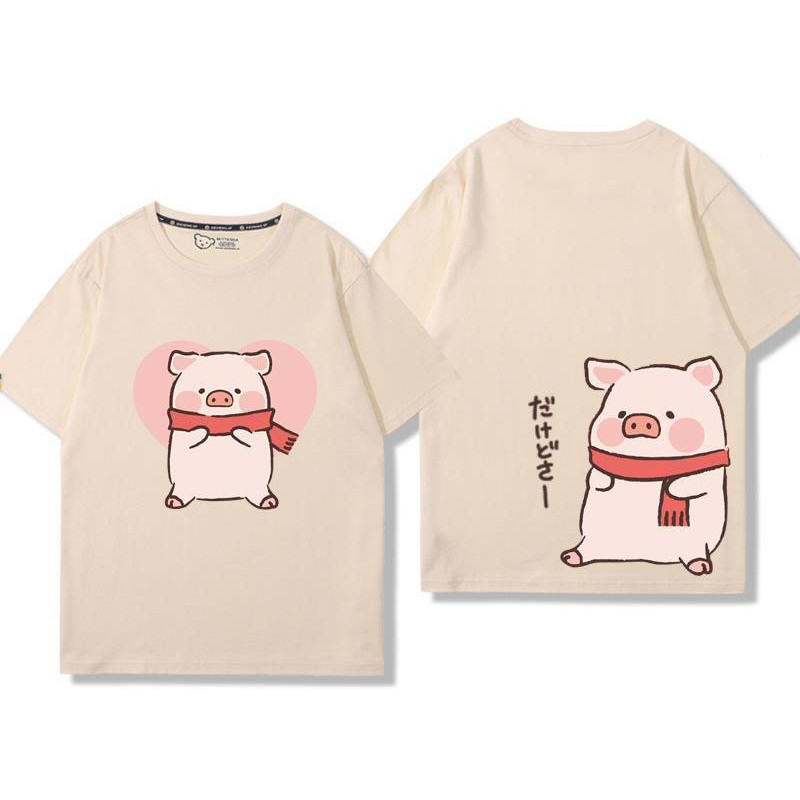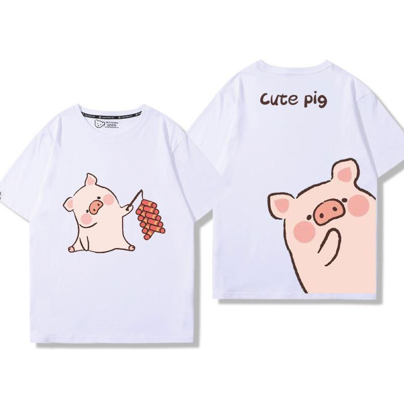 🚀พร้อมส่งจากกทม🚀 เสื้อยืดแขนสั้นพิมพ์ลายการ์ตูนคู่รักผ้าคอตตอนแท้ ใส่สบาย ลายหมูน่ารัก oversize Couple T-shirts