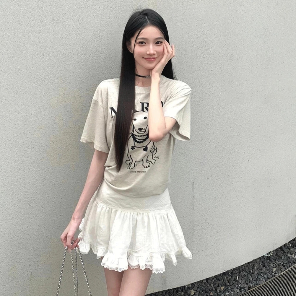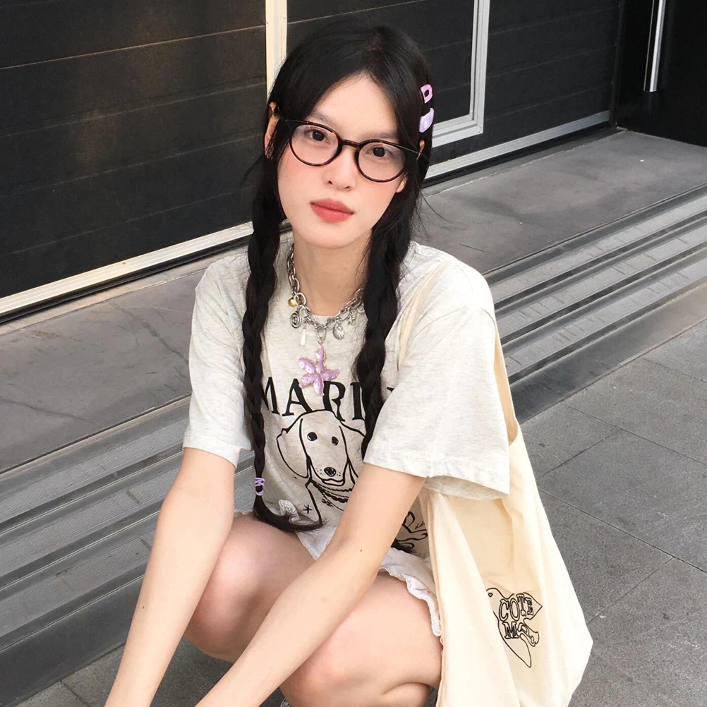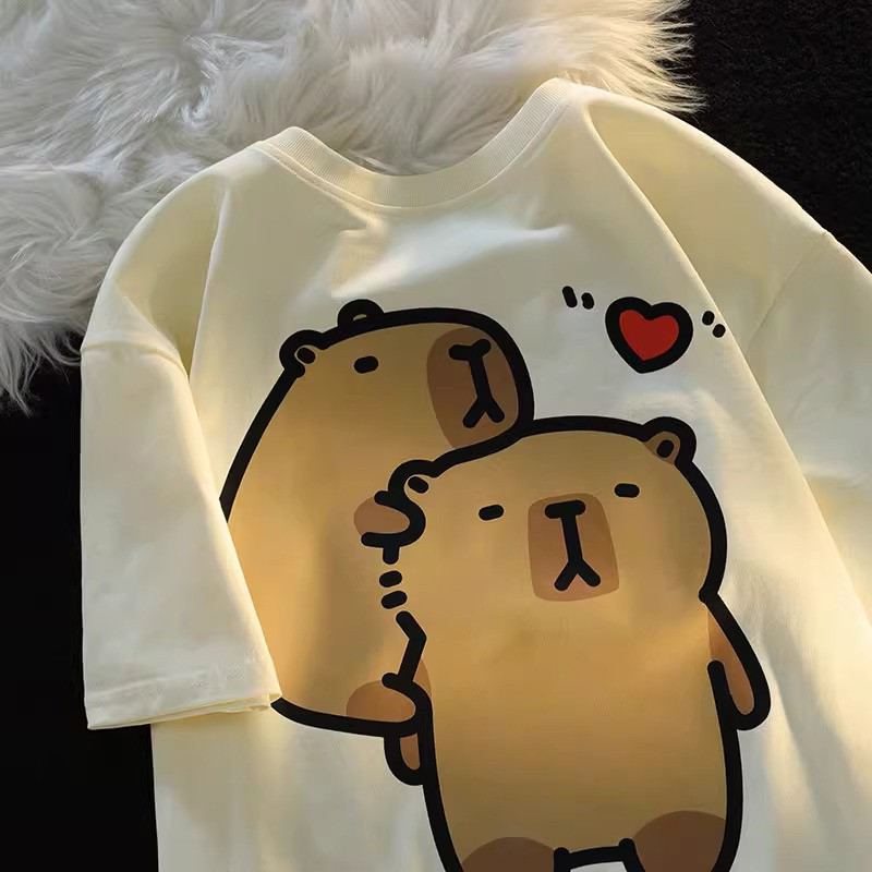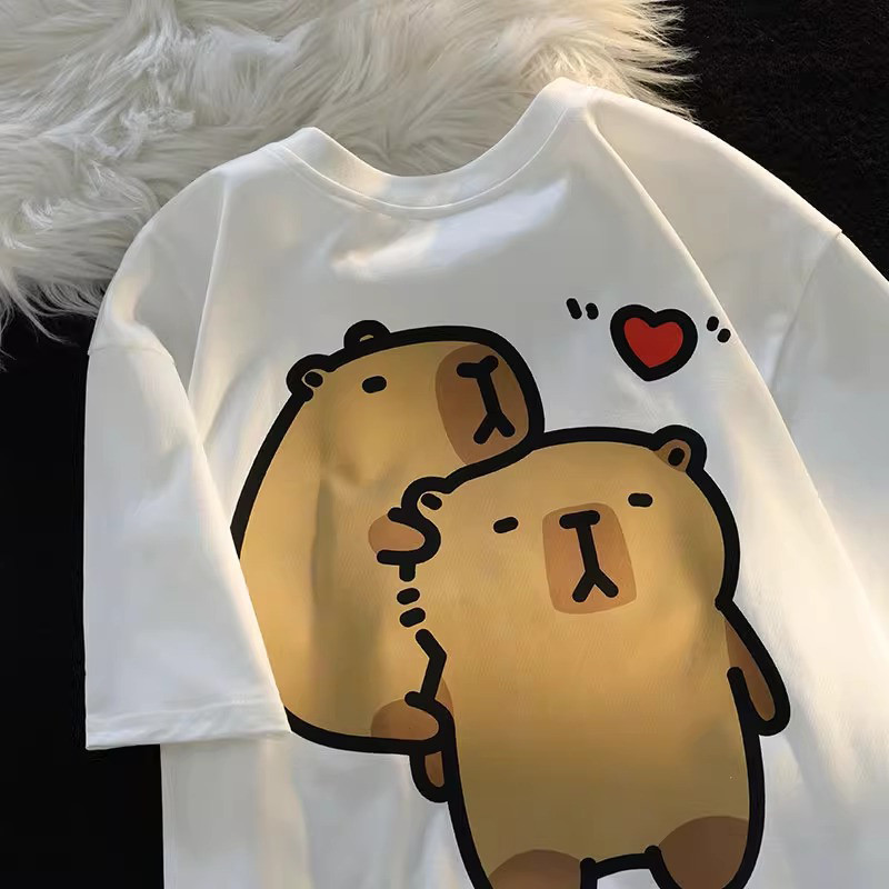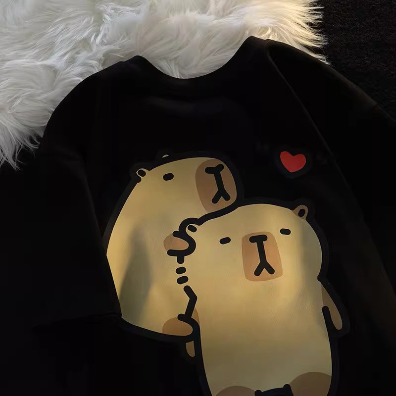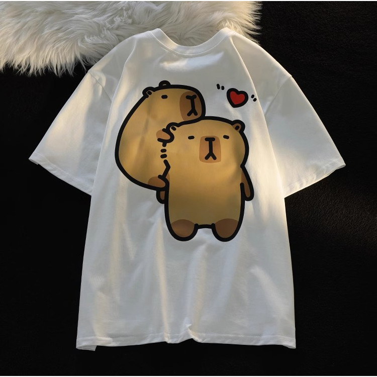 🚚【จัดส่งจากไทย】เสื้อยืดพิมพ์ลายการ์ตูนสไตล์วิทยาลัยสุดน่ารักสไตล์อเมริกัน คอกลม ผ้าเนื้อนุ่ม สวมใส่สบาย
