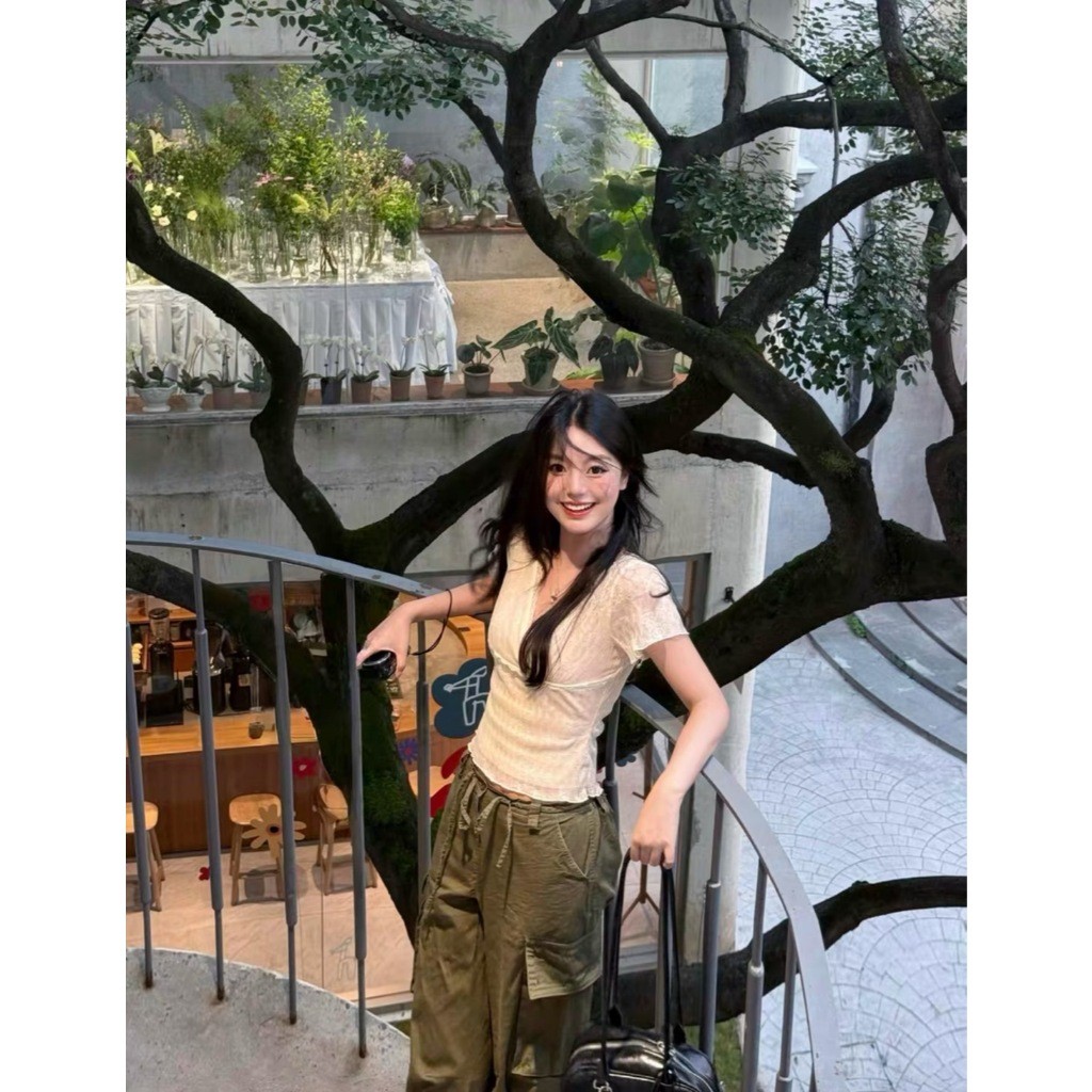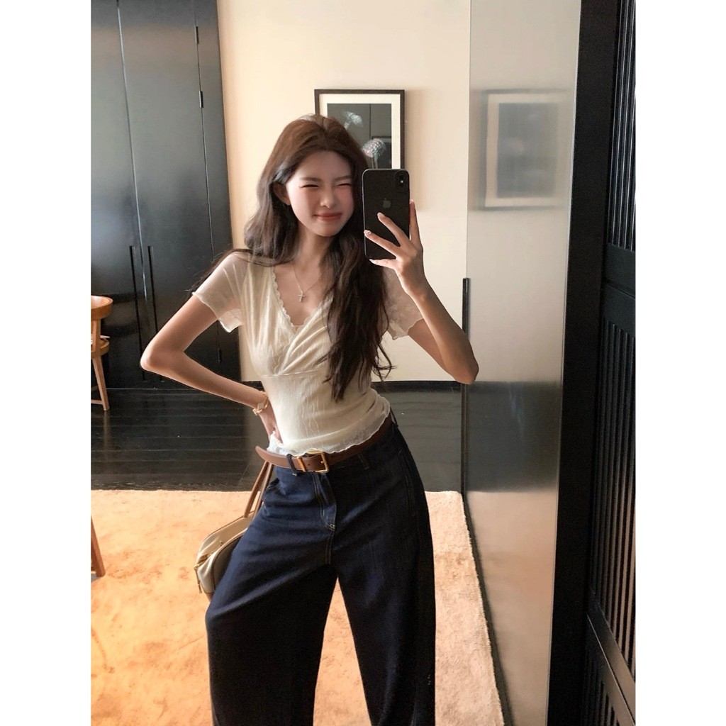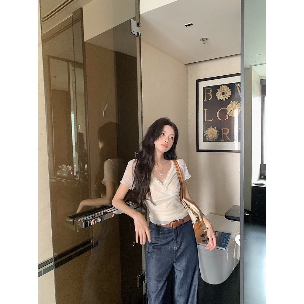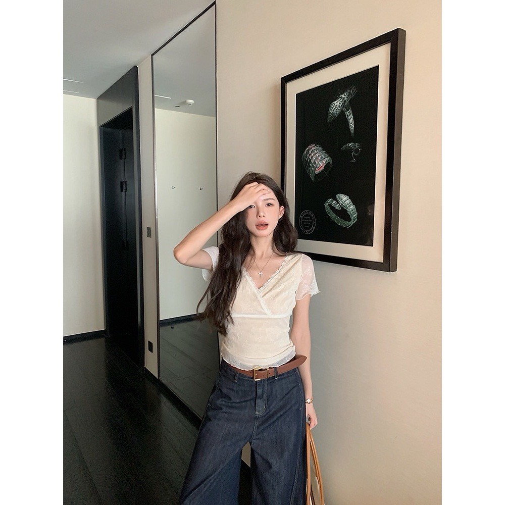 🤎 W6405 เสื้อแขนสั้น แต่งผ้าลูกไม้ทั้งตัว มีซับในสีครีม ผ้านิ่ม งานสวยเก๋มากๆค่า แฟชั่นเกาหลี TAG WG.WE 🤎 🤎