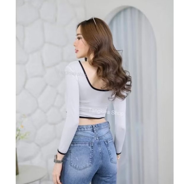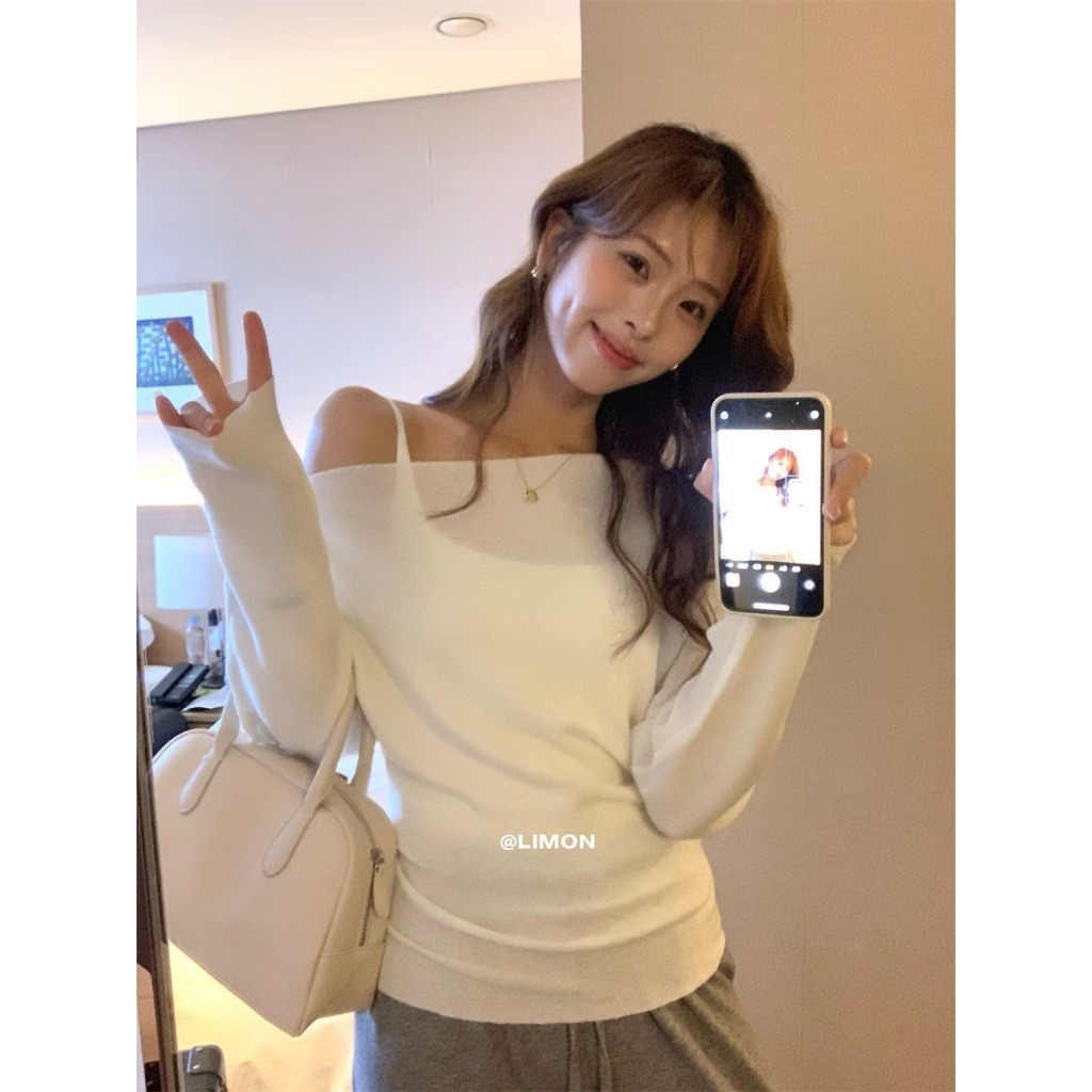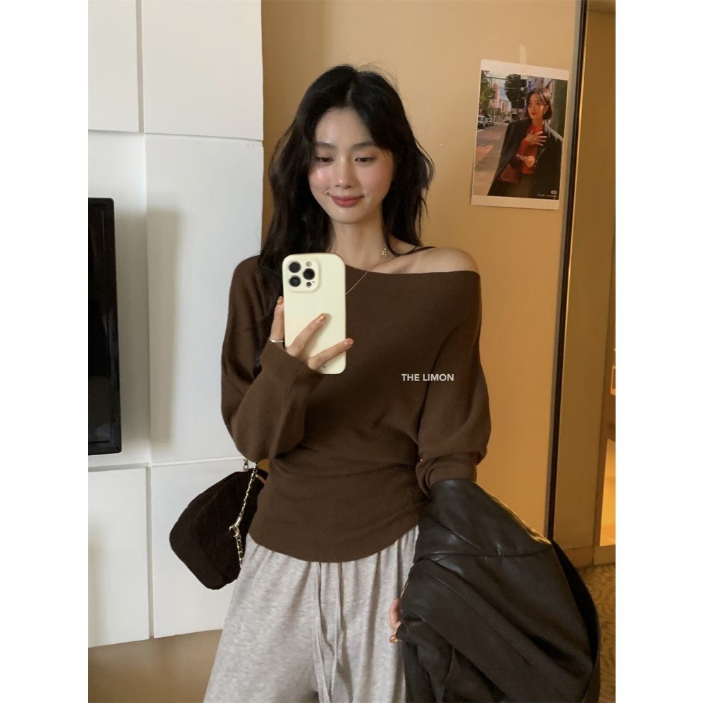 🧡🧵 🇰🇷 LM6836 เสื้อปาดไหล่แขนยาว ผ้าทอ เนื้อนิ่มใส่สบาย ทรงสวยมากๆค่า แฟชั่นเกาหลี TAG WG.WE 🧵🧡