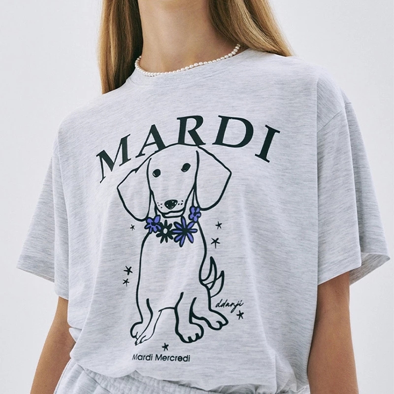🚀[แท้100%] เสื้อยืดลายดอกไม้ Mardi Mercredi DDANJI FLOWER ทรงหลวม ผ้าคอตตอน แฟชั่นเกาหลี ระบายอากาศดี พร้อมส่ง