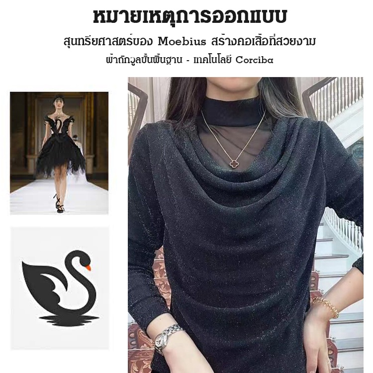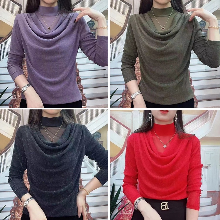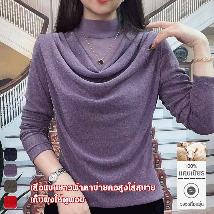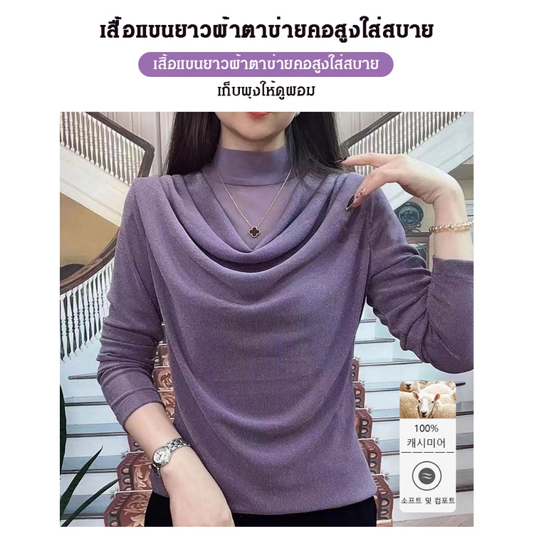【🔥🔥ขายดี】เสื้อเชิ้ตแขนยาวผู้หญิงฤดูใบไม้ผลิฤดูใบ คอเต่า ผ้าตาข่าย เสื้อเชิ้ตผ้าชีฟองทรงหลวมเรียบหรู