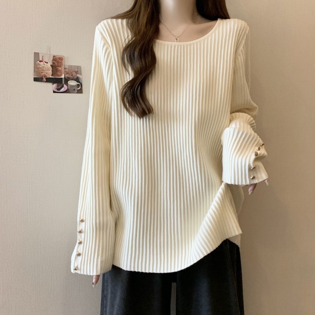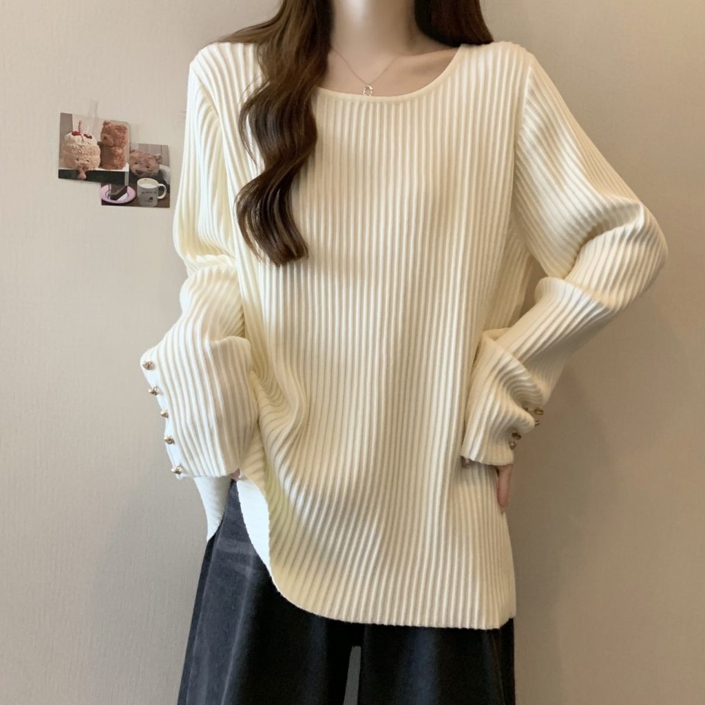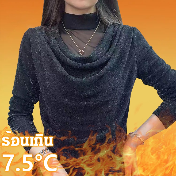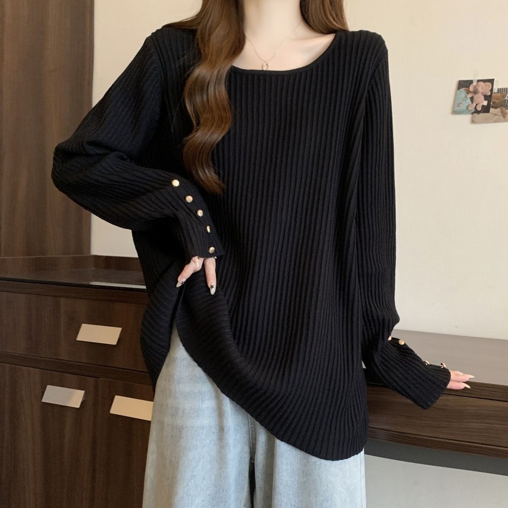 ❤น่ารัก น่ารัก อินเทรนด์❤M-4XL เสื้อยืดแขนยาวขนาดใหญ่หนา Pit Strip สแควร์คอ Bottoming เสื้อฤดูใบไม้ร่วงฤดูหนาวหลวม Slimmer ดูเสื้อยืดอบอุ่นใน