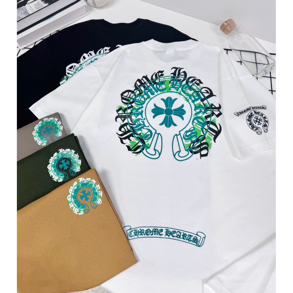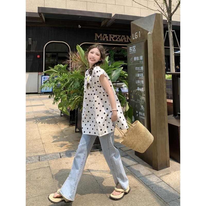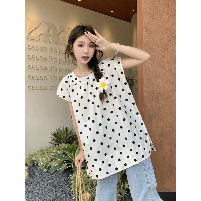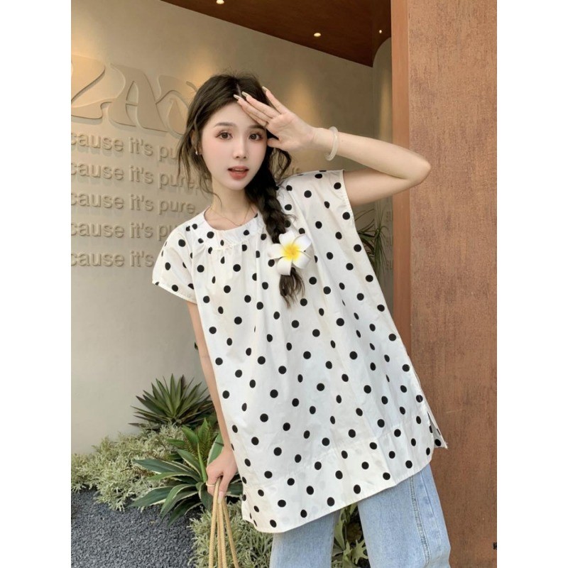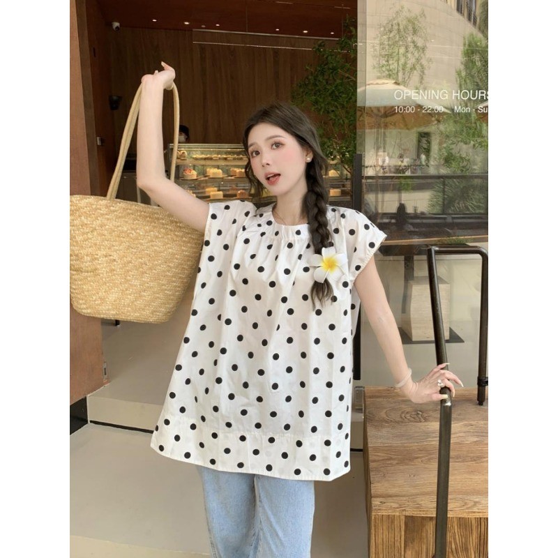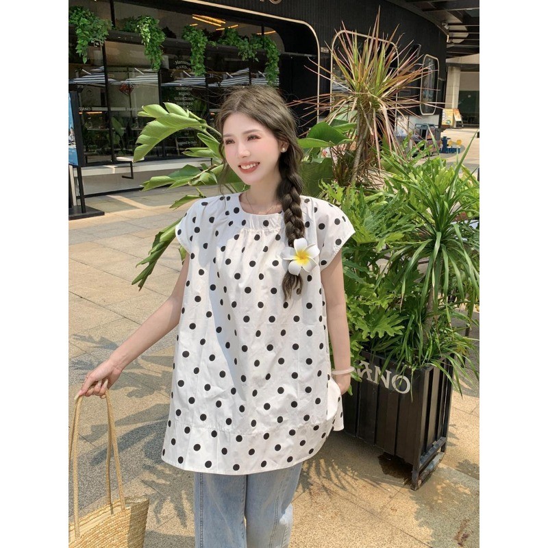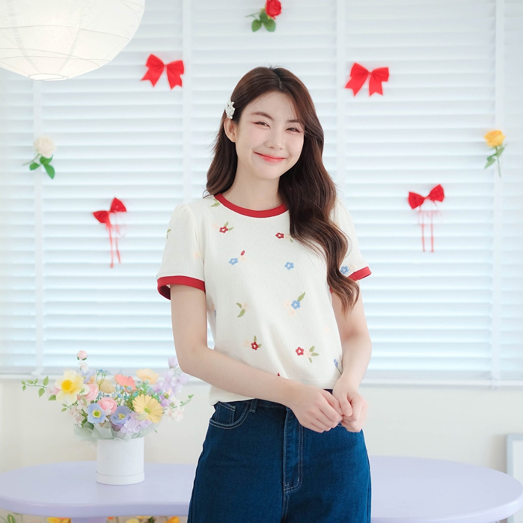 ⭐Fern Shop แขนสั้นพิมพ์ลายสีขาวไหล่บวกแบบฝรั่งเศส