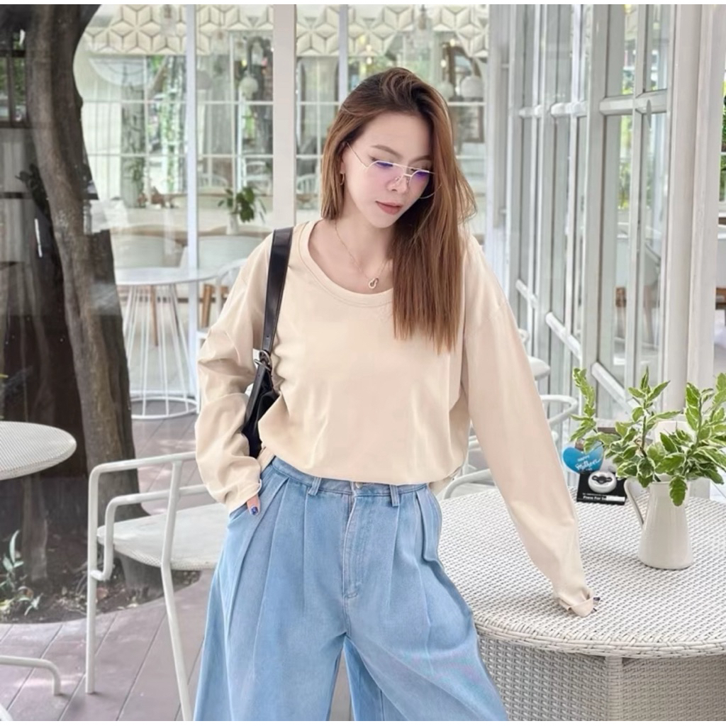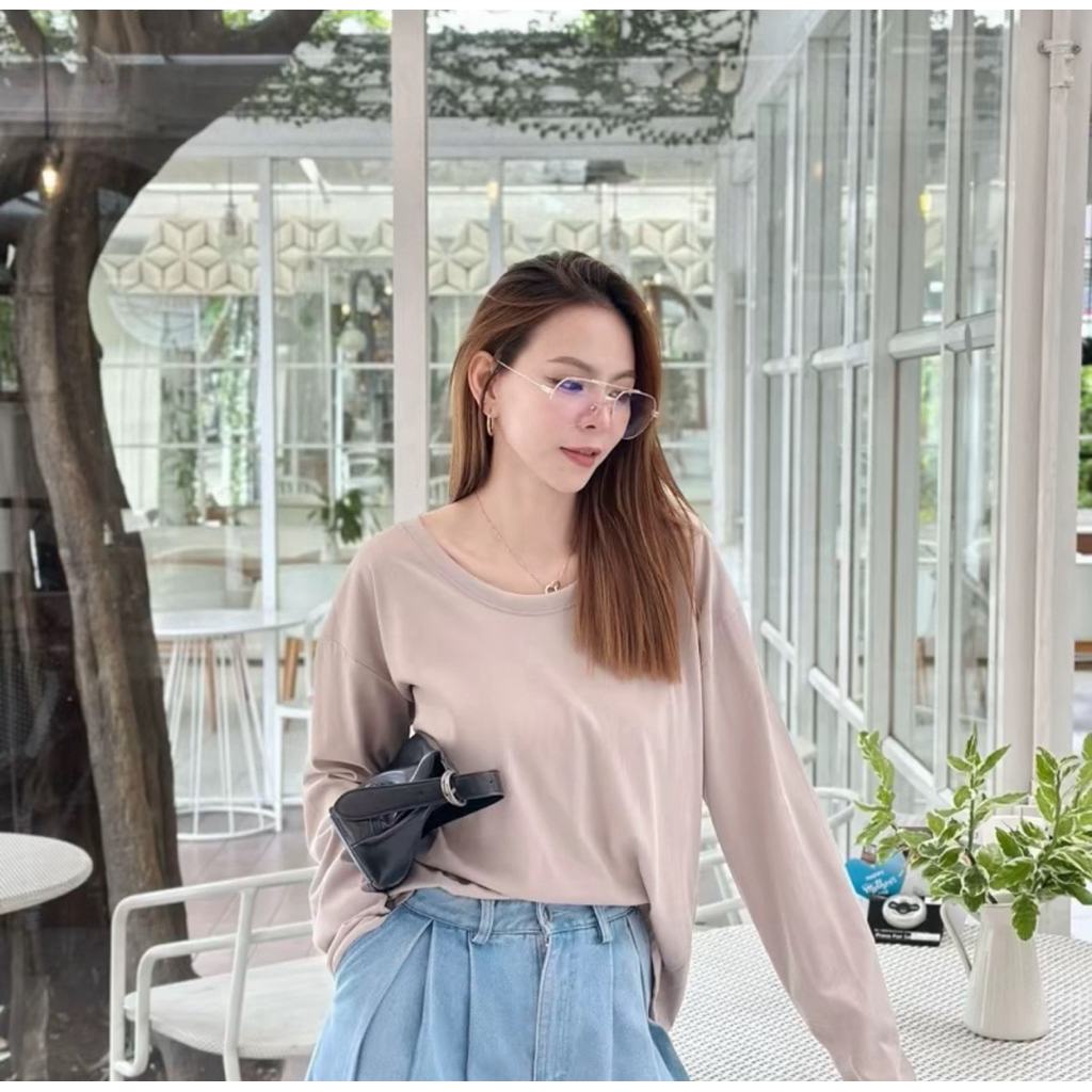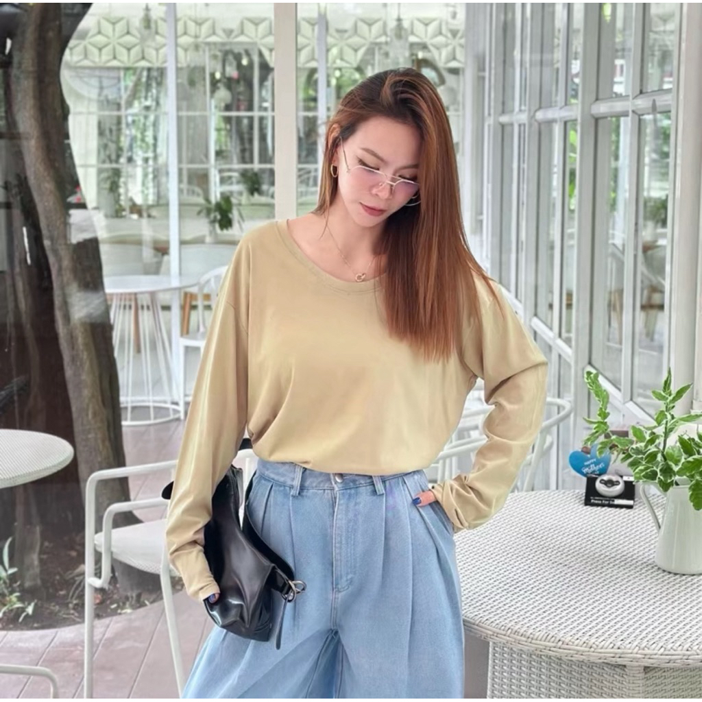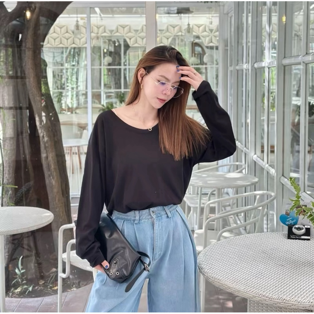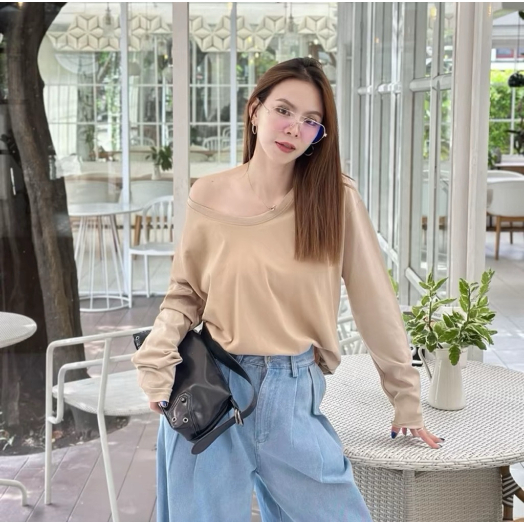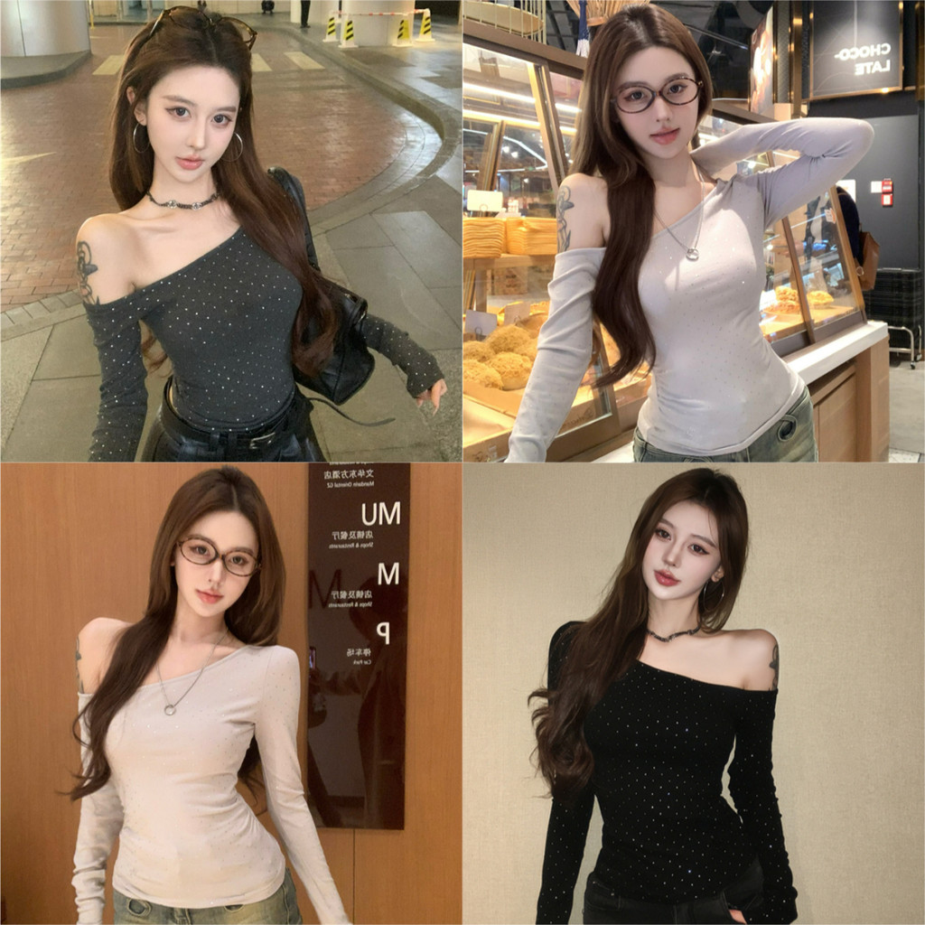 ⭐Soroh⭐เสื้อยืด แขนยาว สีพื้น เปิดไหล่ ลายจุด รัดรูป ผ้านิ่ม เสื้อผ้าสตรี สไตล์เกาหลี เเฟชั่น#FY2318