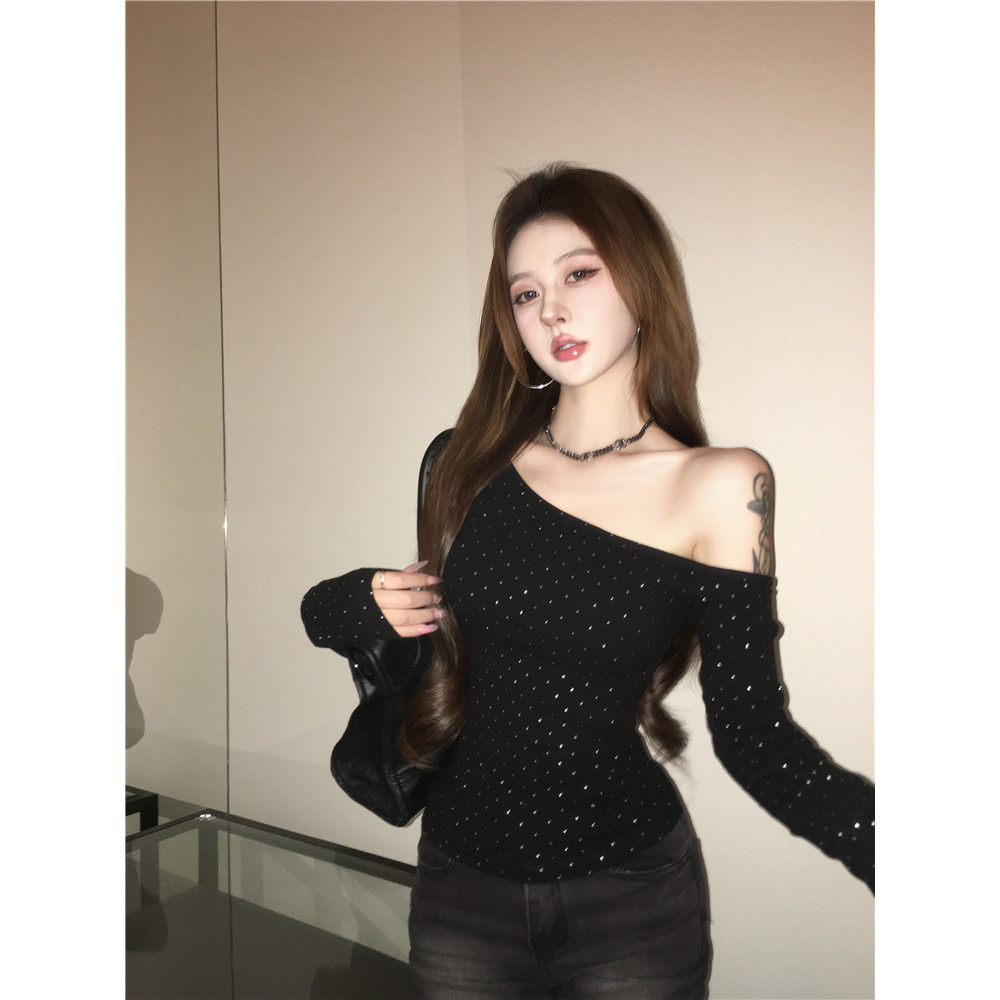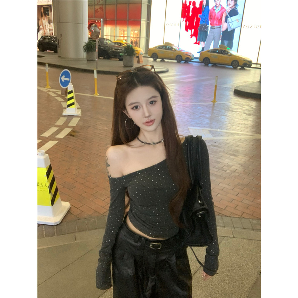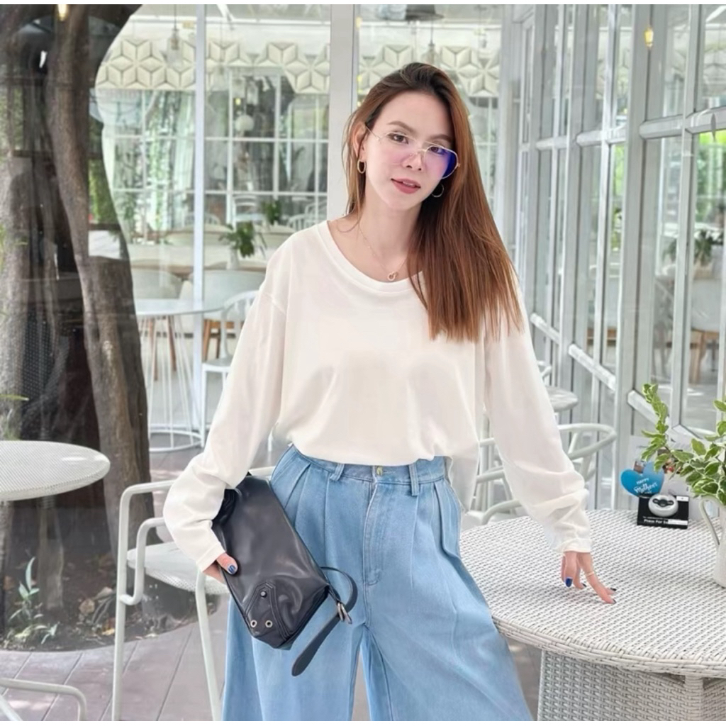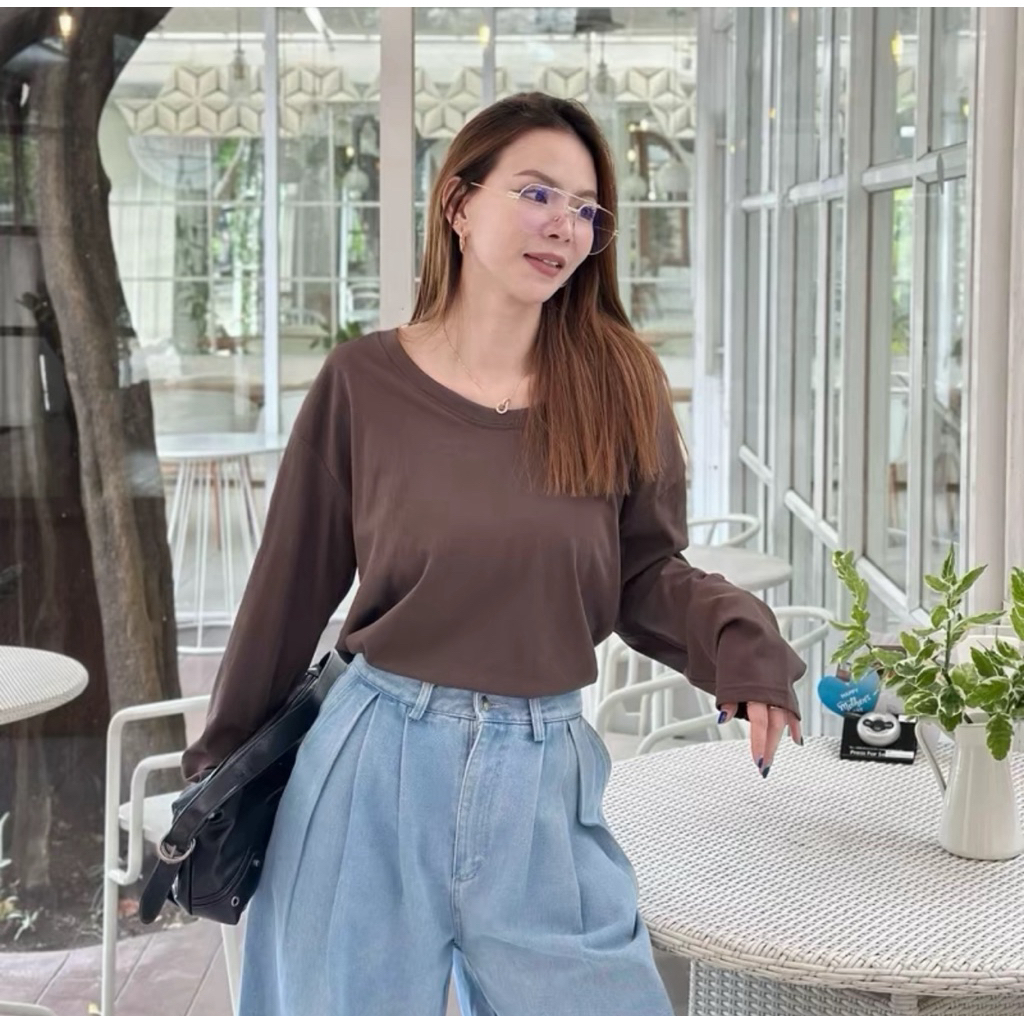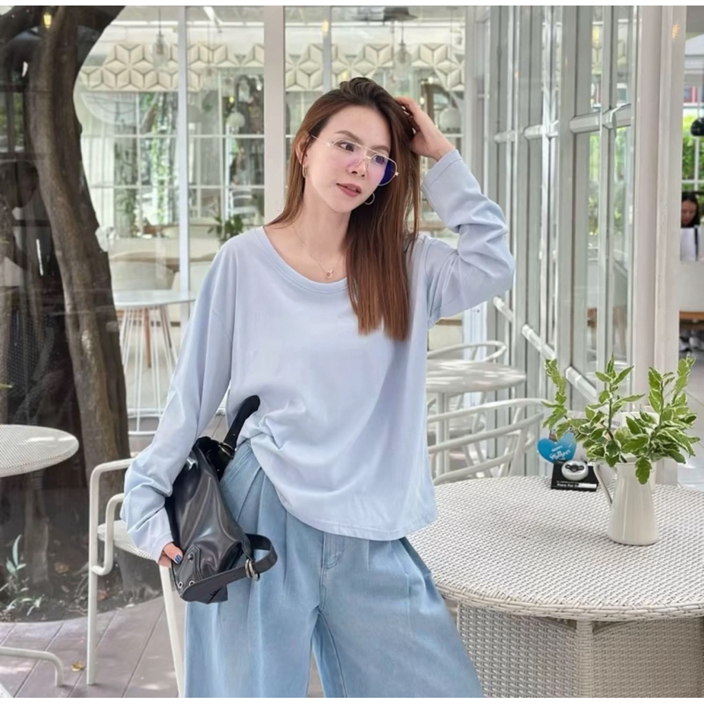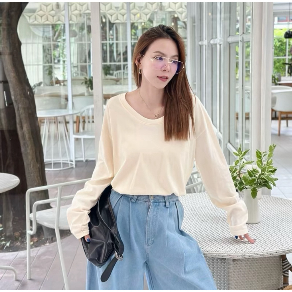 ⭐Soroh⭐เสื้อยืด แขนยาว สีพื้น เปิดไหล่ ลายจุด รัดรูป ผ้านิ่ม เสื้อผ้าสตรี สไตล์เกาหลี เเฟชั่น#FY2318