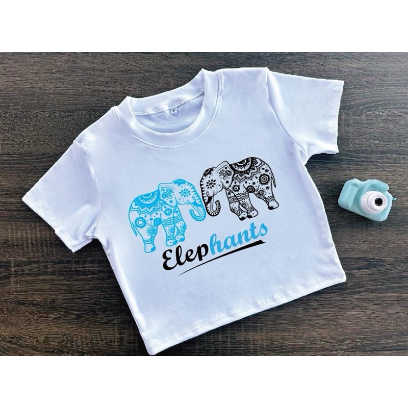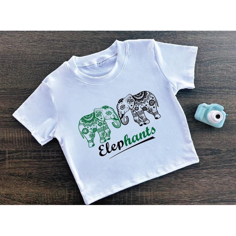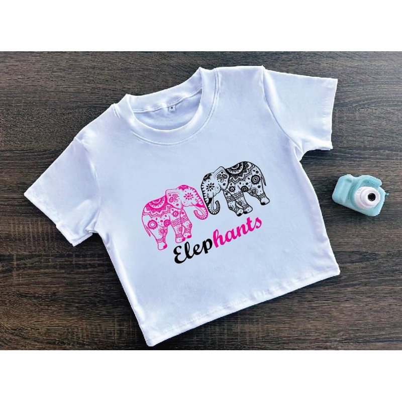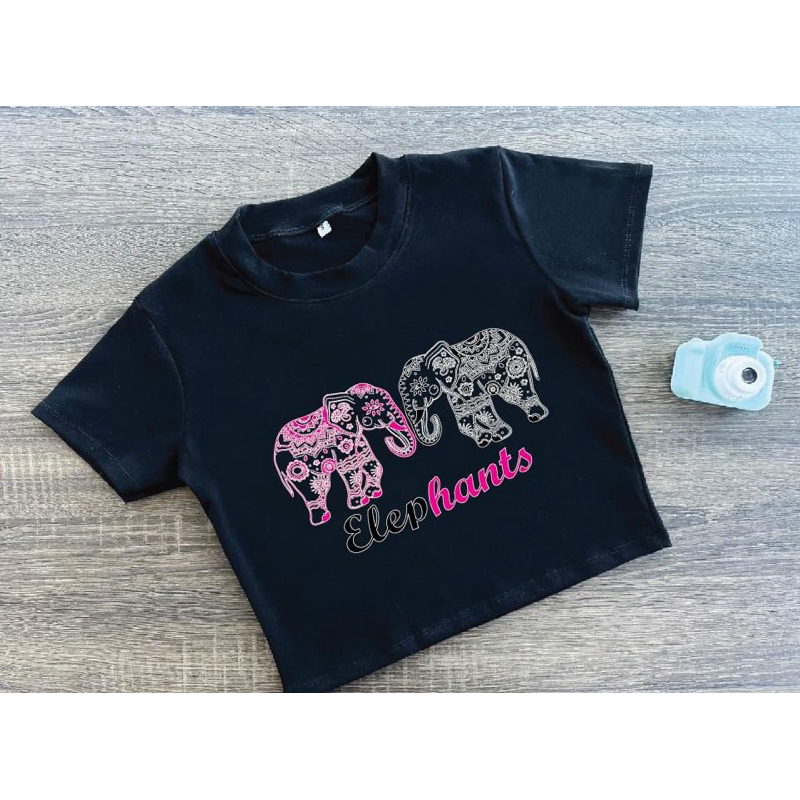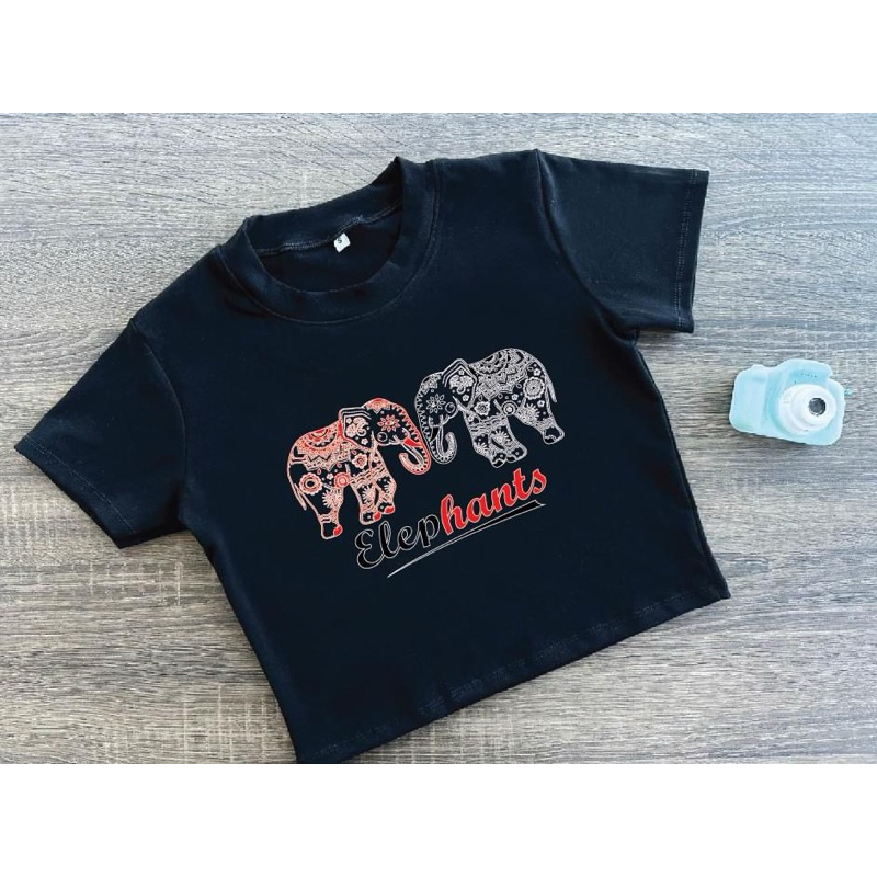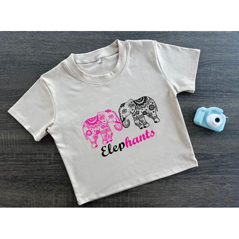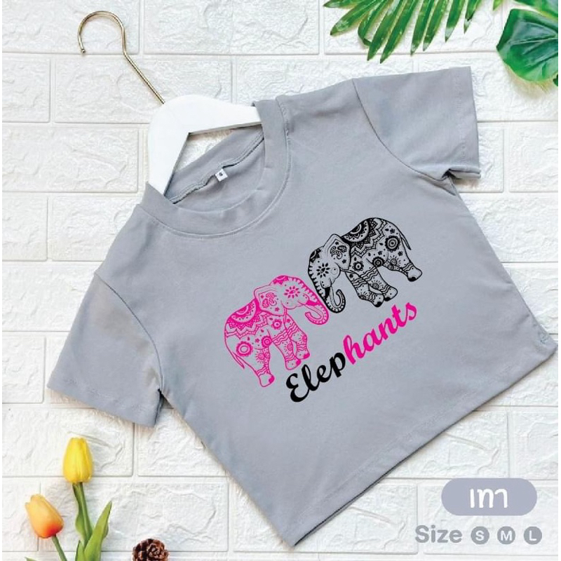 ⚡ร้านค้าส่งไว⚡ เสื้อครอป เสื้อสกรีนลายช้าง เสื้อยืด สีสันสดใสมาก ❤️🩵🩷🧡