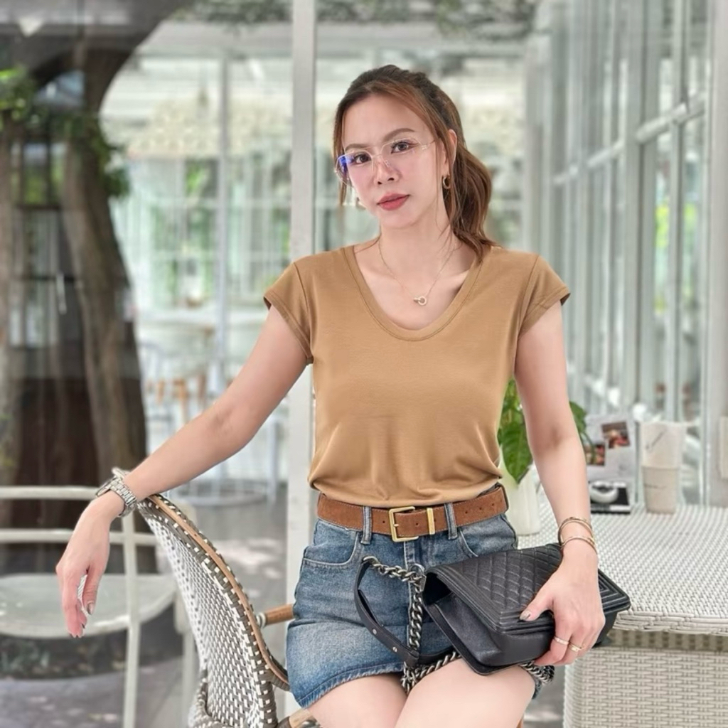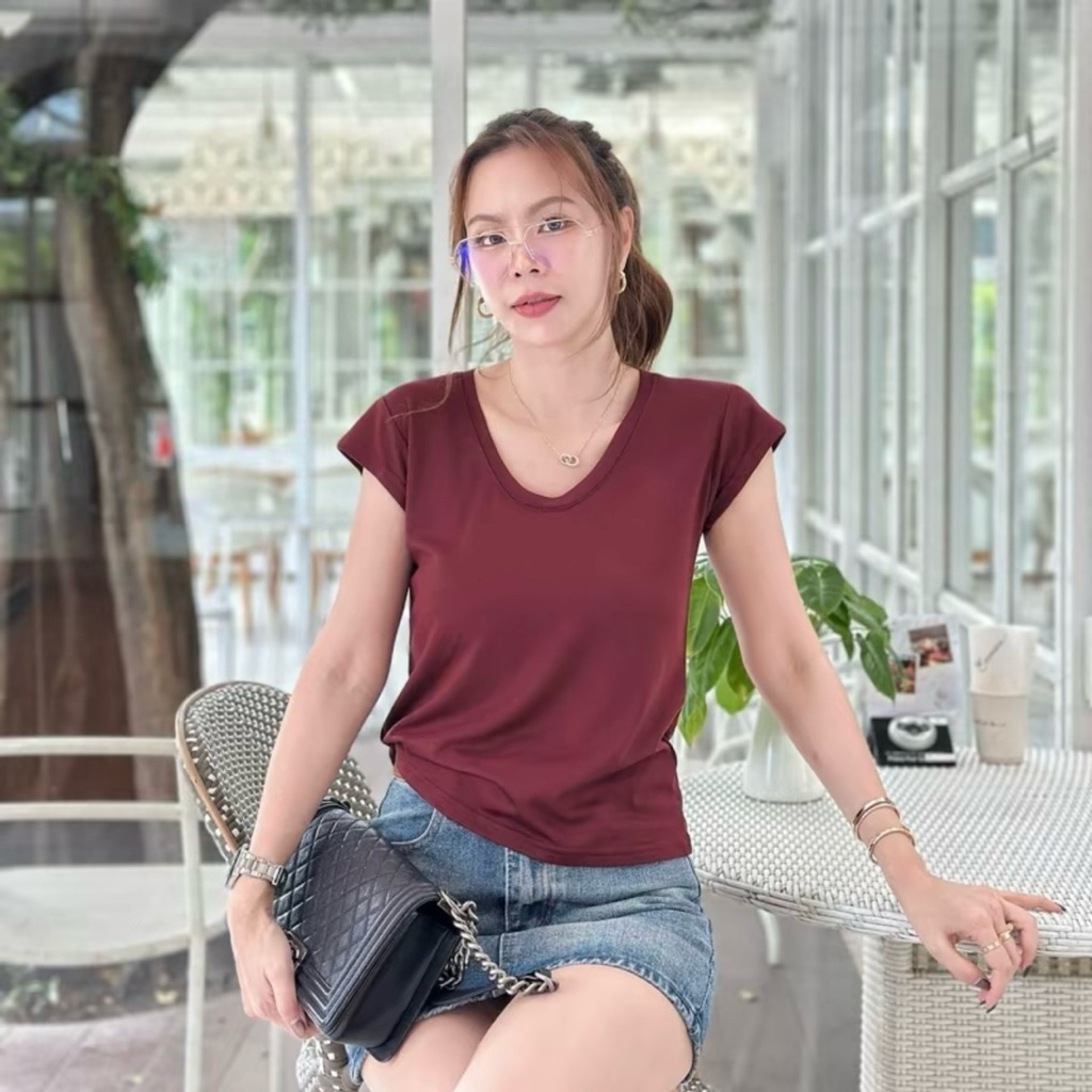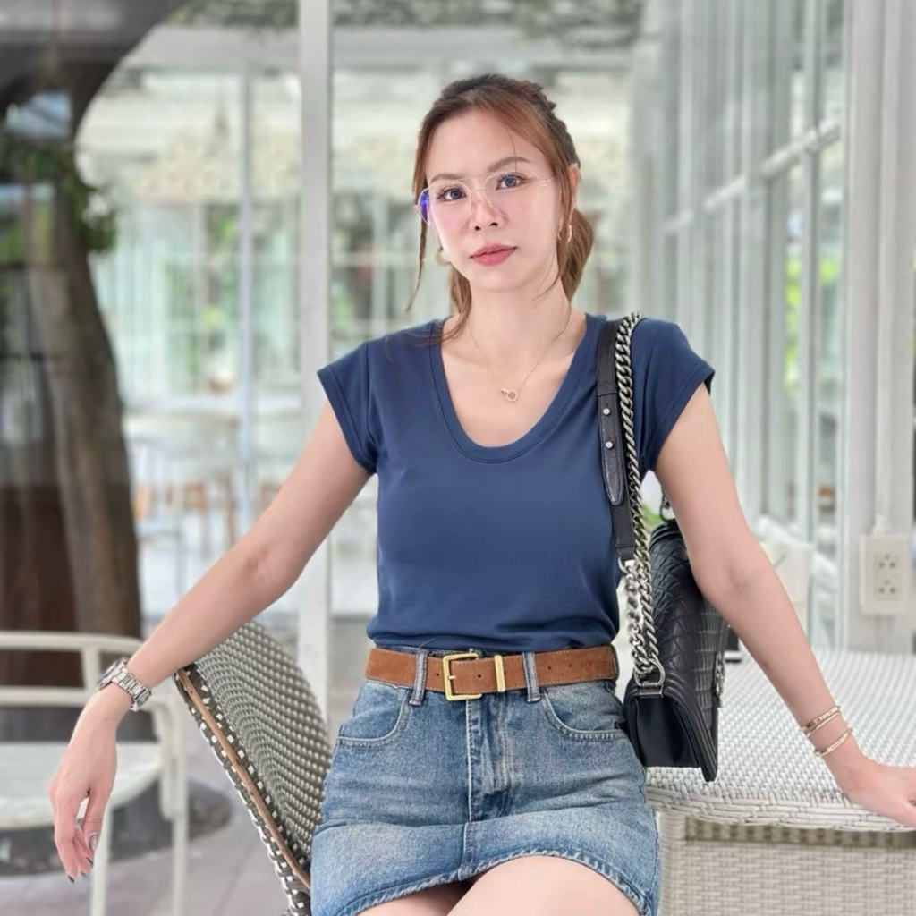 /TB/ เสื้อครอปสาวอวบ คอยู เบสิก ใส่ได้ตลอด #เสื้อผ้าไซส์ใหญ่ สาว อ้วน พลัสไซส์