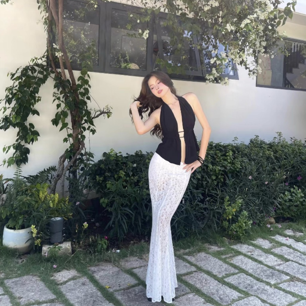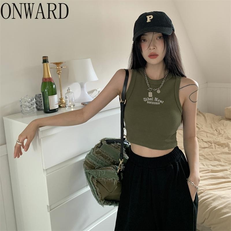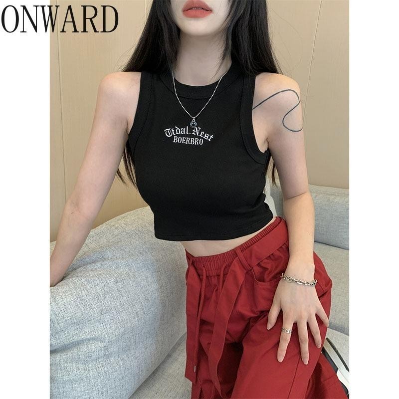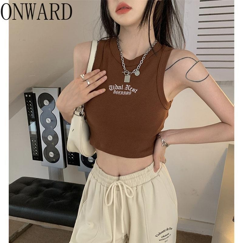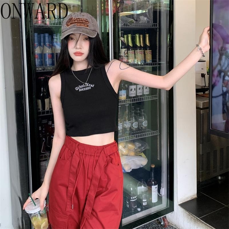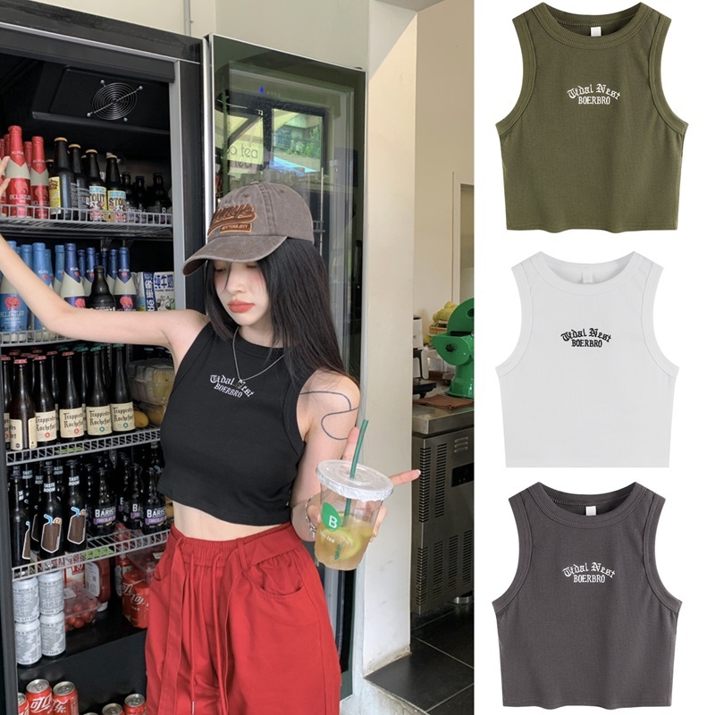 เอสเอส24 สาวร้อนสวมสายแขวนปักกีฬาสีดําและเสื้อกั๊กขนาดเล็กและหญิงสวมเสื้อแขนกุดฐานถักสั้น
