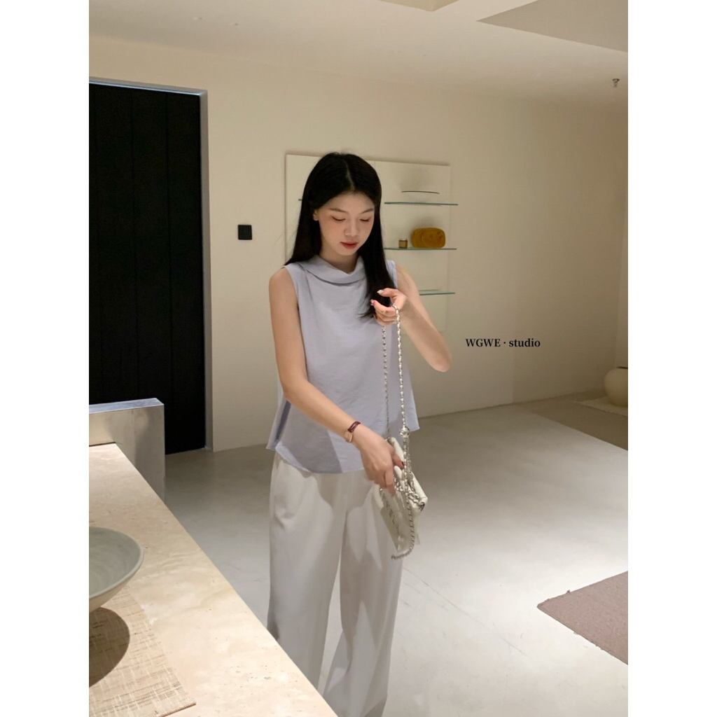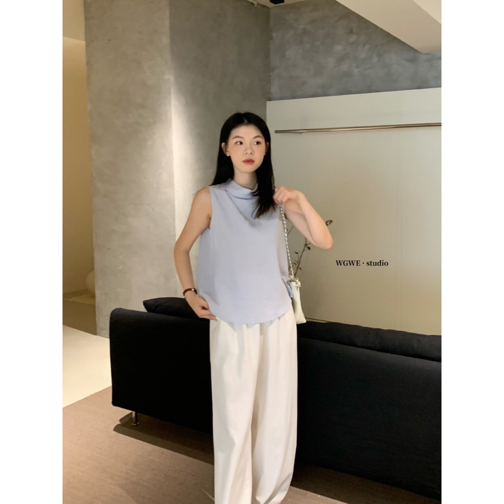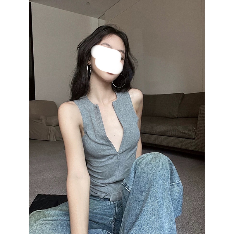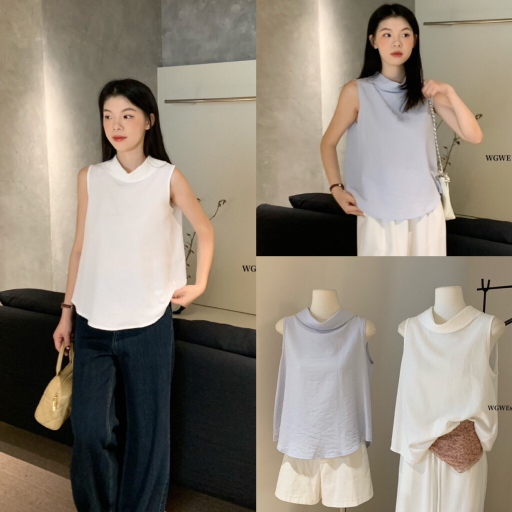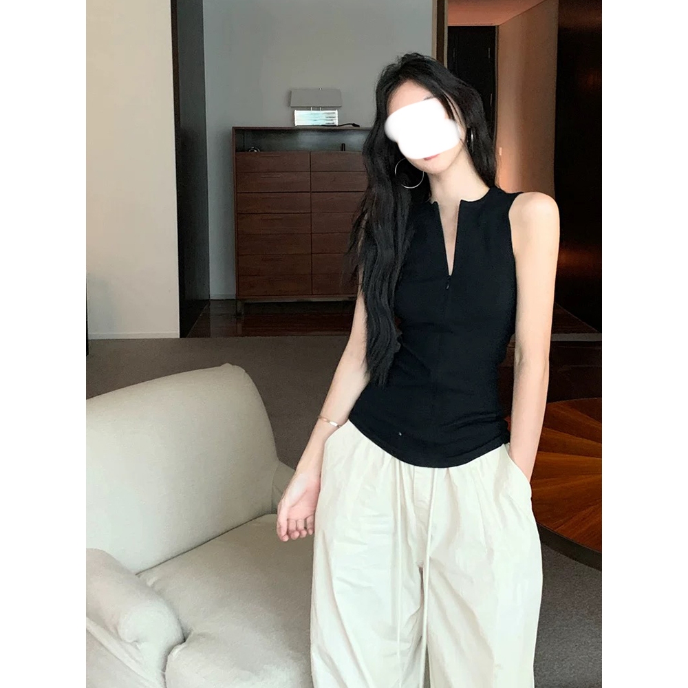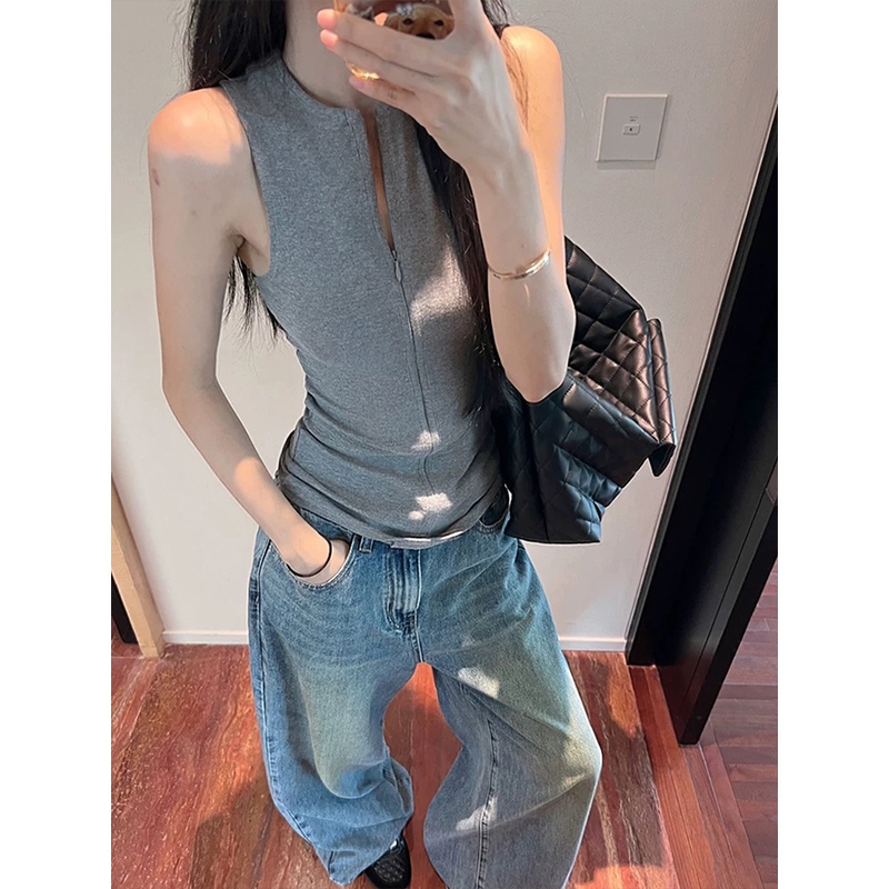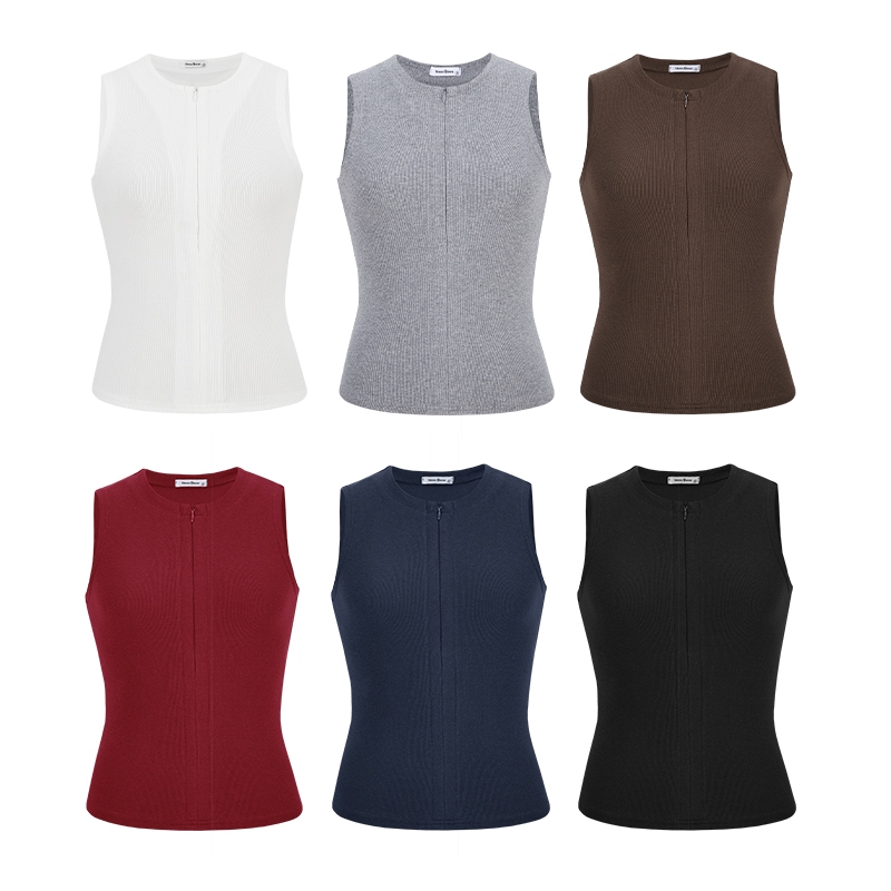 เสื้อแขนกุดสำหรับผู้หญิง สไตล์เรียบหรู ตัดเย็บกระชับ มีซิปรอบคอดีไซน์สวยงาม ทำจากผ้าฝ้าย 63122
