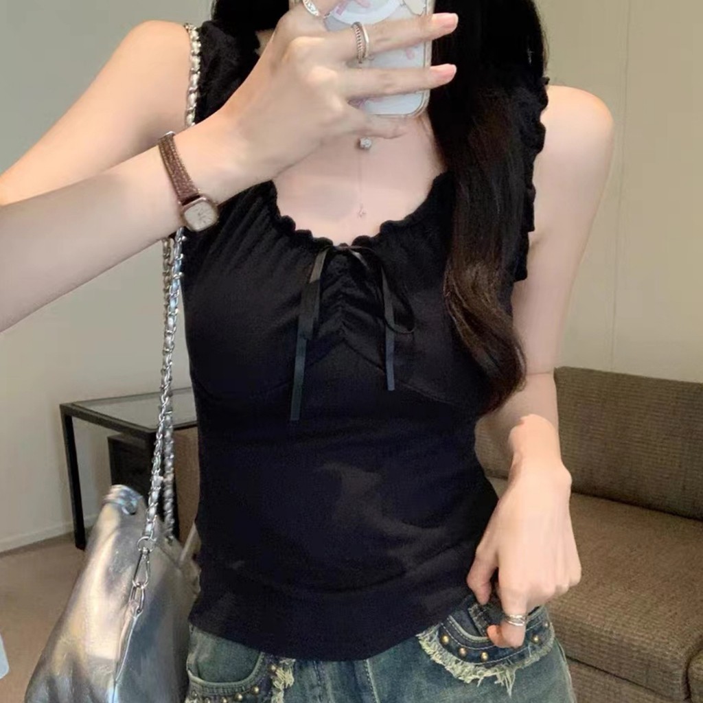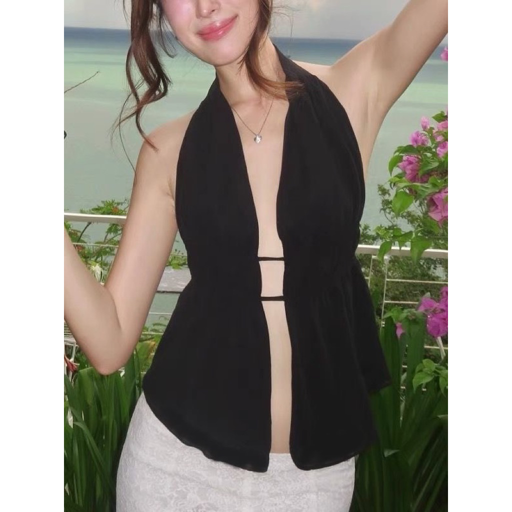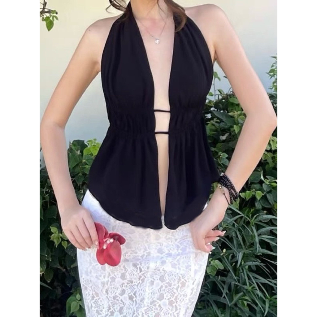 โมลาโซเมะ ผู้หญิงแฟชั่นใหม่สีทึบเชือกแขวนคอคอเสื้อกล้ามแขนกุด