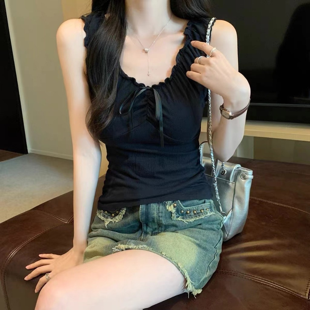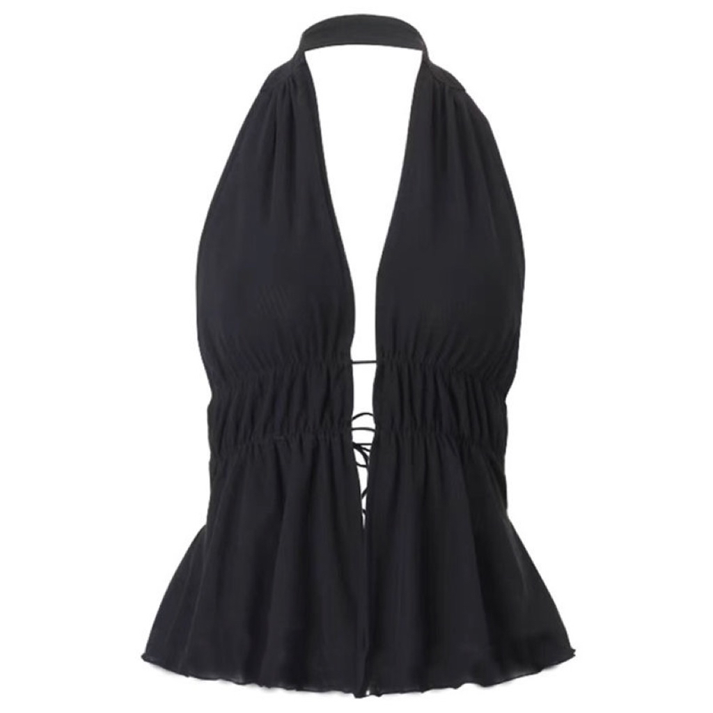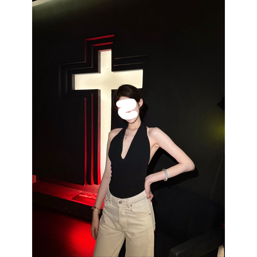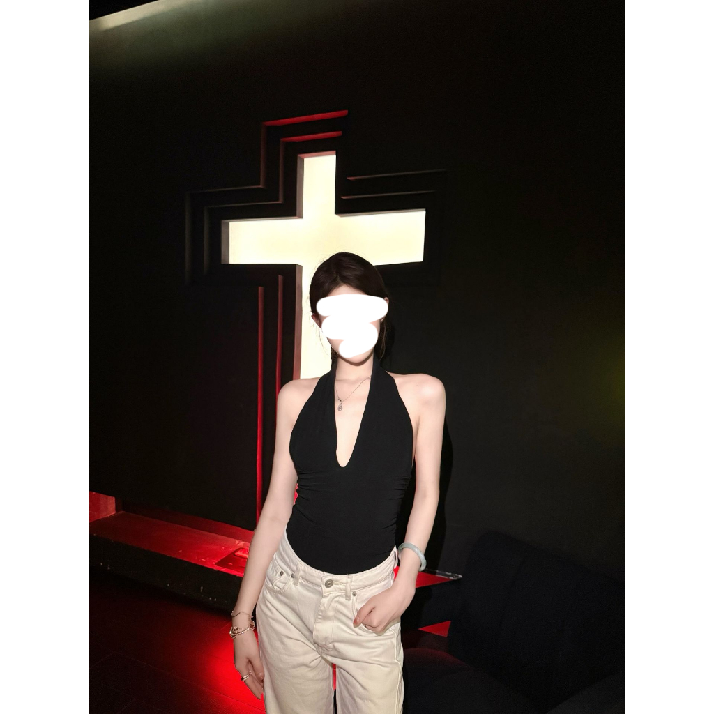 โมลาโซเมะ ผู้หญิงแฟชั่นใหม่สีทึบเชือกแขวนคอคอเสื้อกล้ามแขนกุด