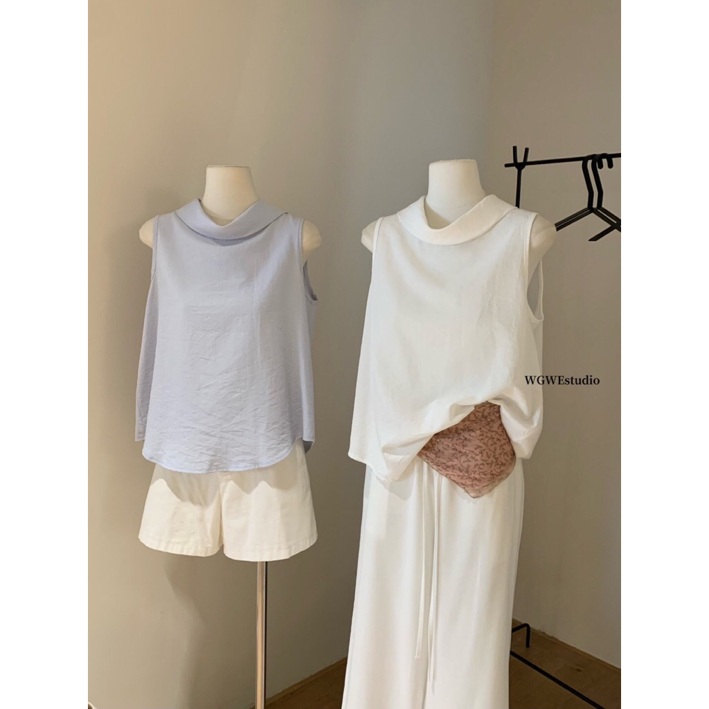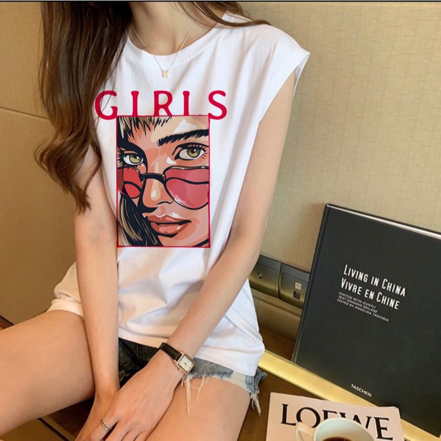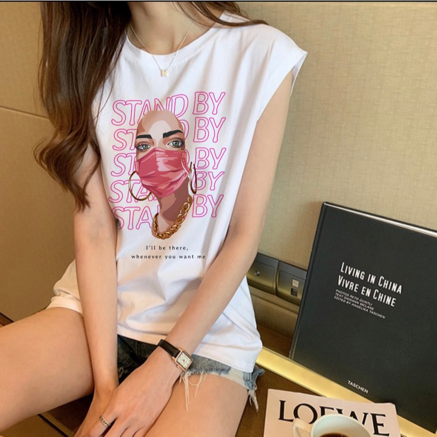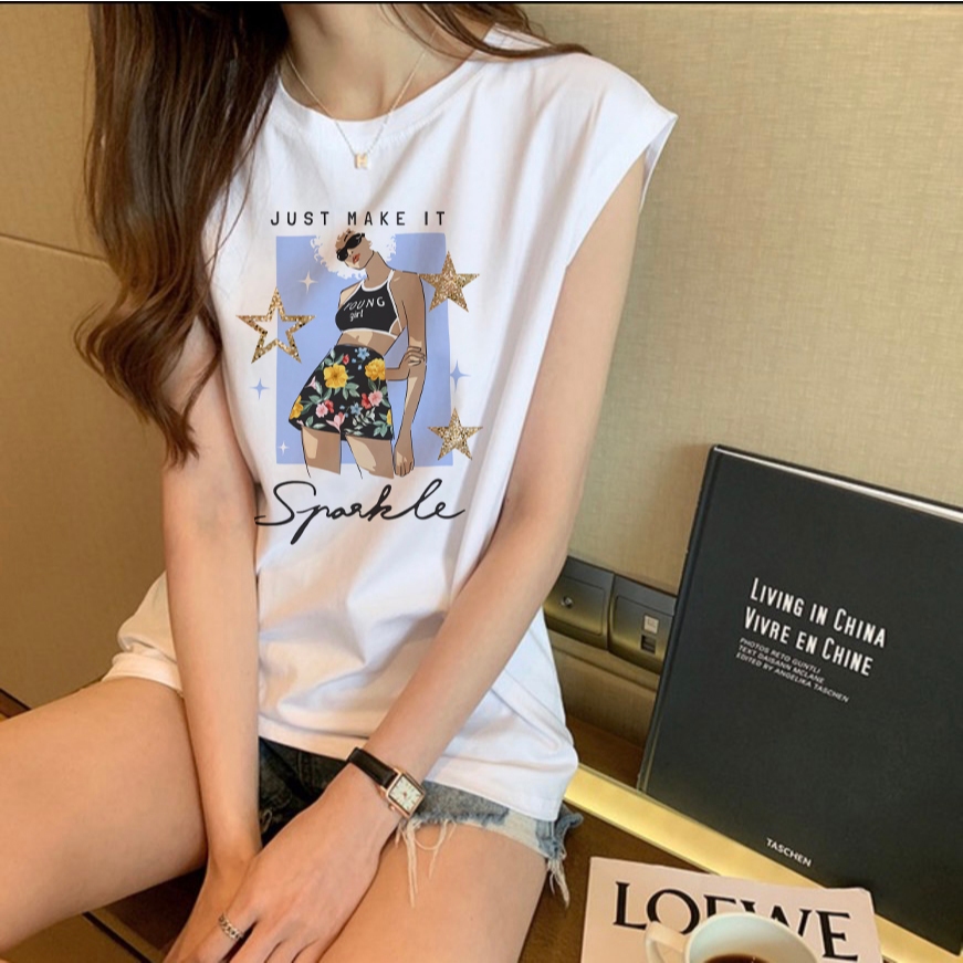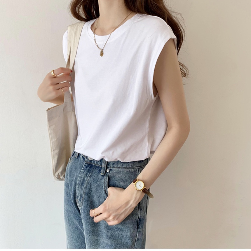 เสื้อแขนกุดสีขาวผู้หญิงหลวม ๆ ฤดูร้อนใหม่เสื้อกั๊กเสื้อยืด – SH6027