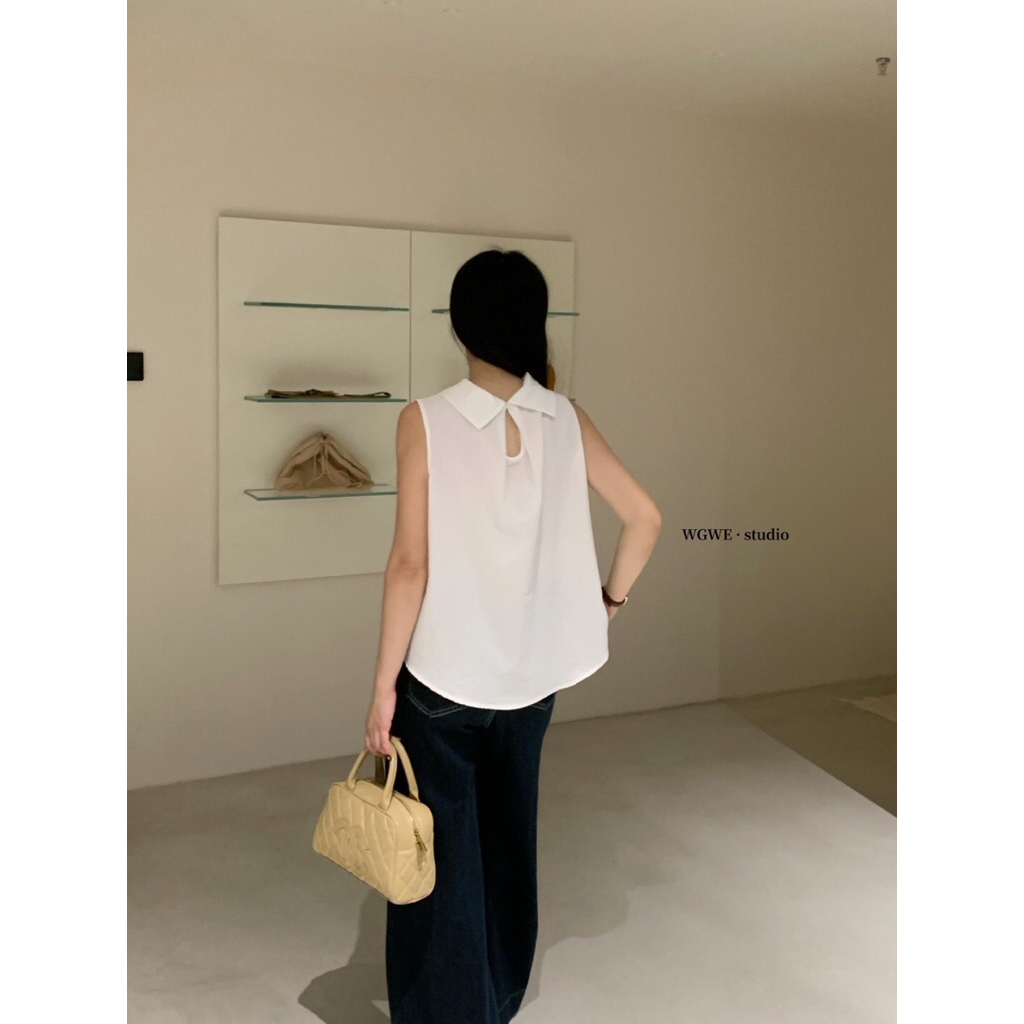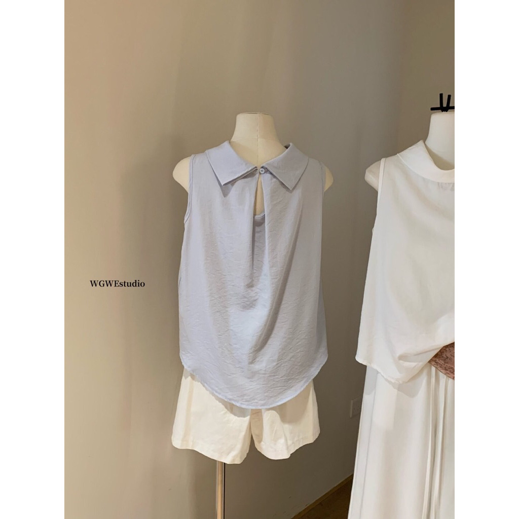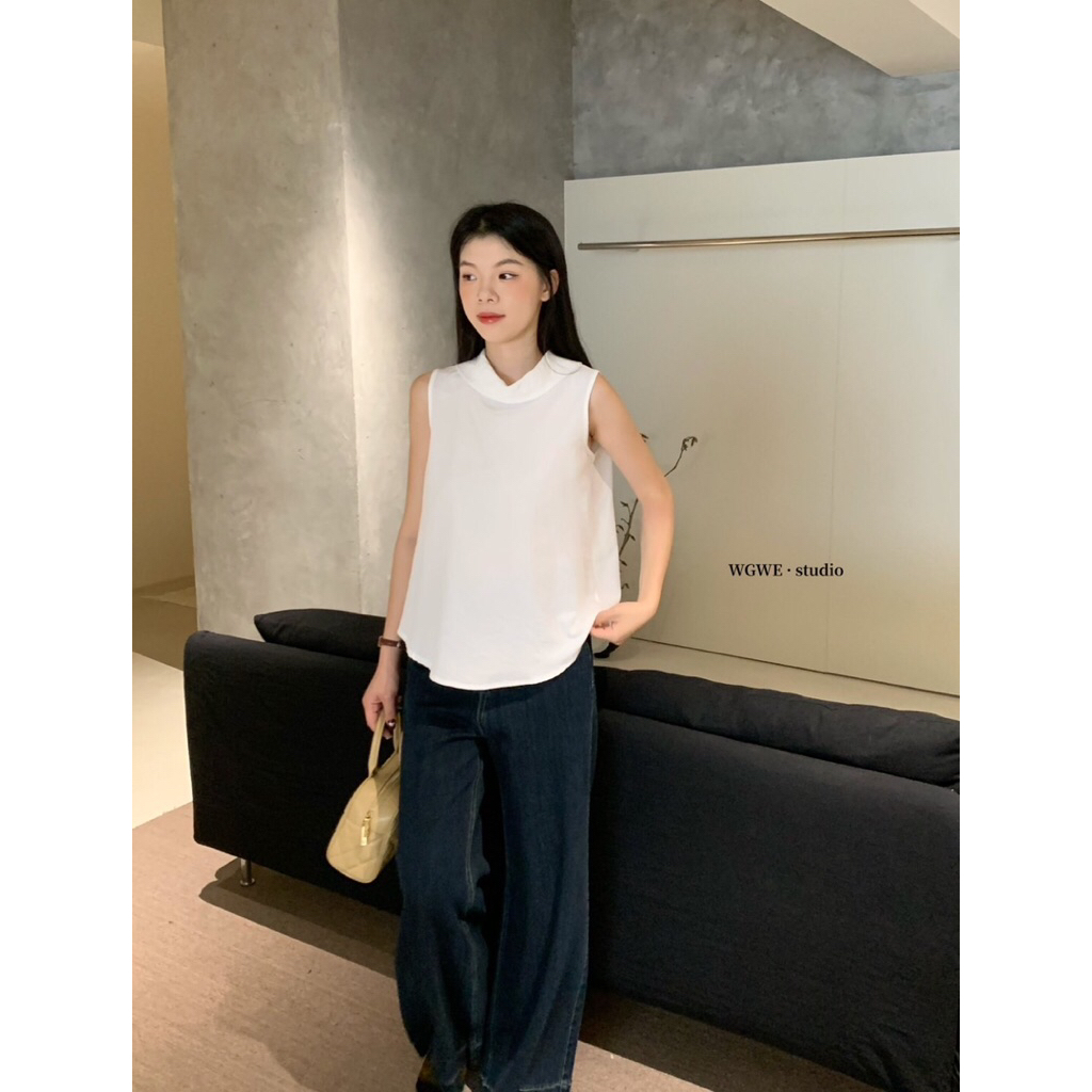 เสื้อแขนกุดสีขาวผู้หญิงหลวม ๆ ฤดูร้อนใหม่เสื้อกั๊กเสื้อยืด – SH6027