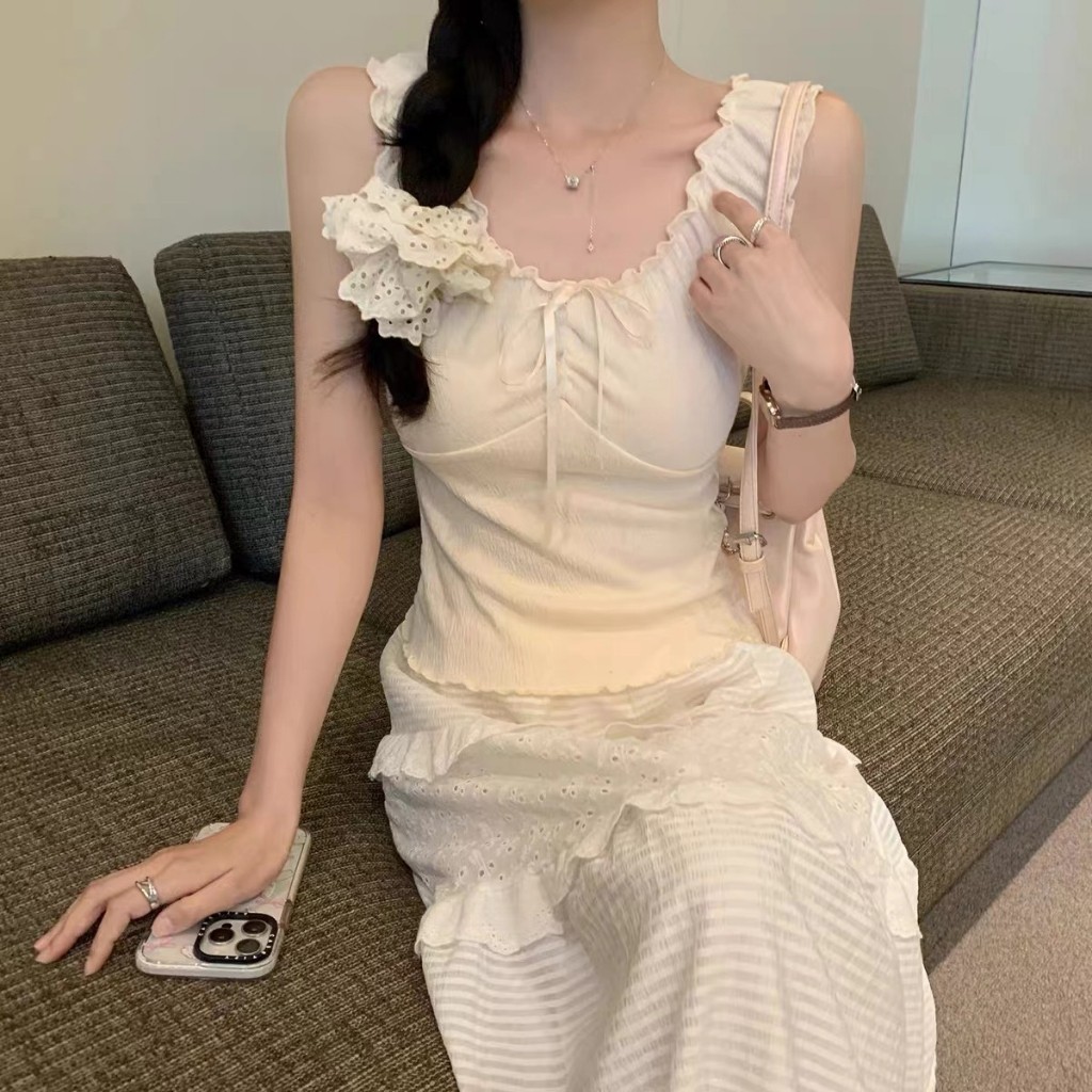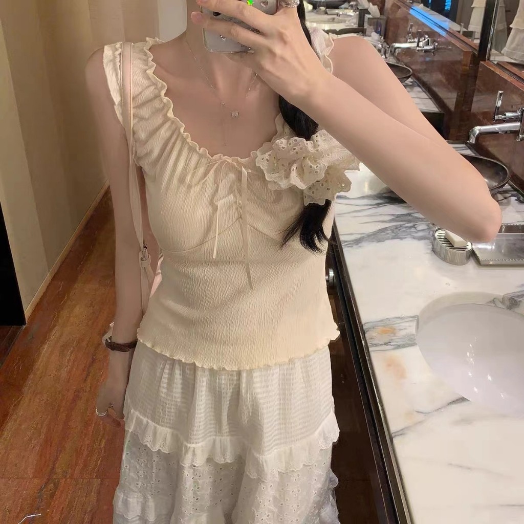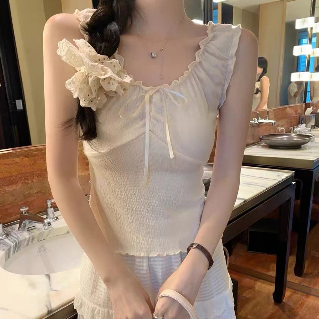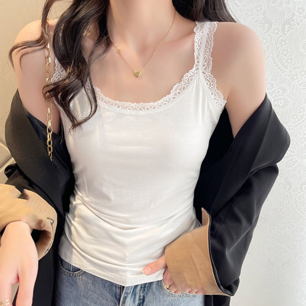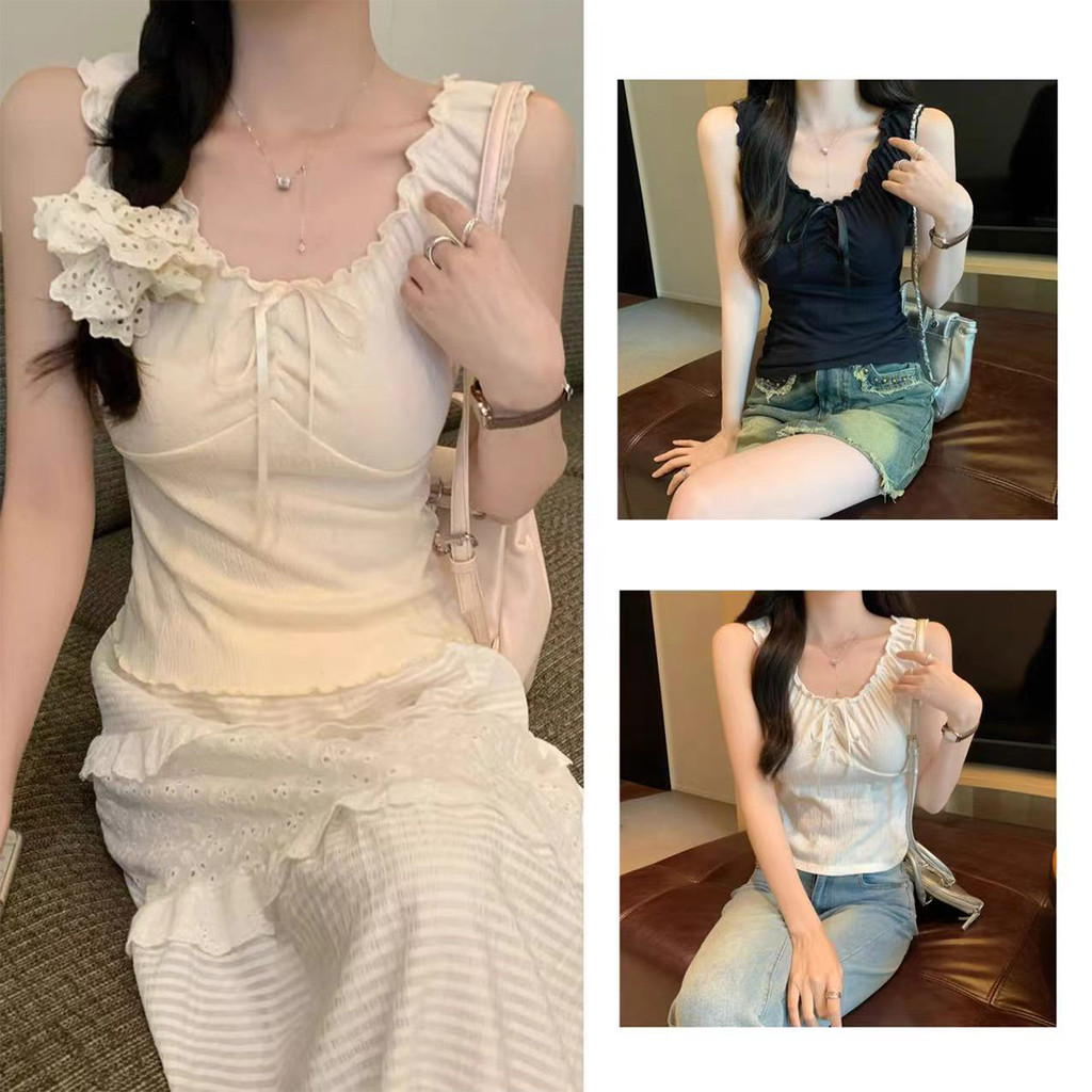 เอเดเดเด ผู้หญิงลูกไม้ยกทรงคอ ยู แขนกุดบางลูกไม้พืชยอดนิยม, เสื้อกั๊กลําลองสลิมฟิตที่เรียบง่ายสาวหวานเสื้อกล้ามสาว