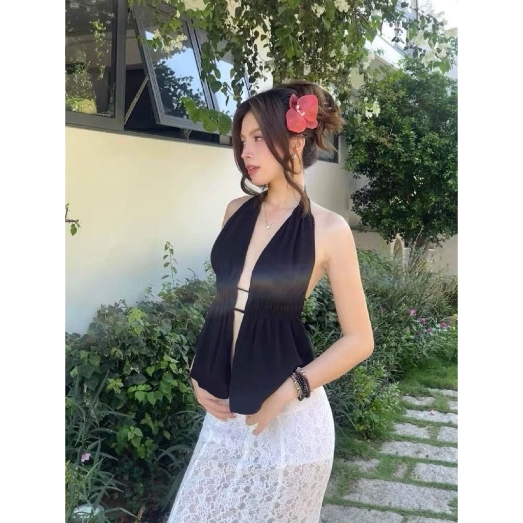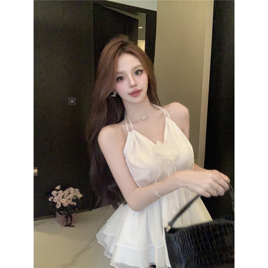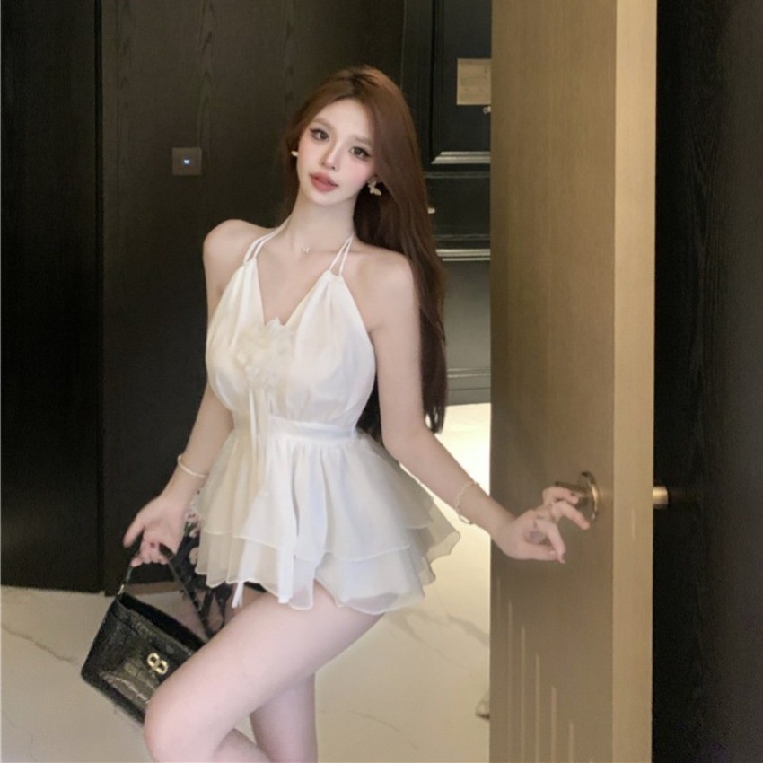 แฟชั่นเซ็กซี่ชีฟองดอกไม้ Halter Camisole ผู้หญิง