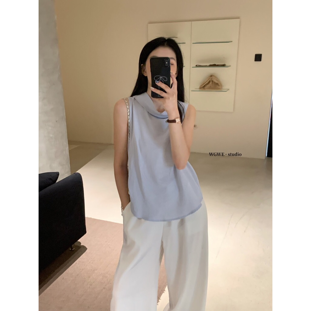 ใหม่ เสื้อกล้าม ผ้าชีฟอง แขนกุด ทรงหลวม สีพื้น แฟชั่นสําหรับผู้หญิง